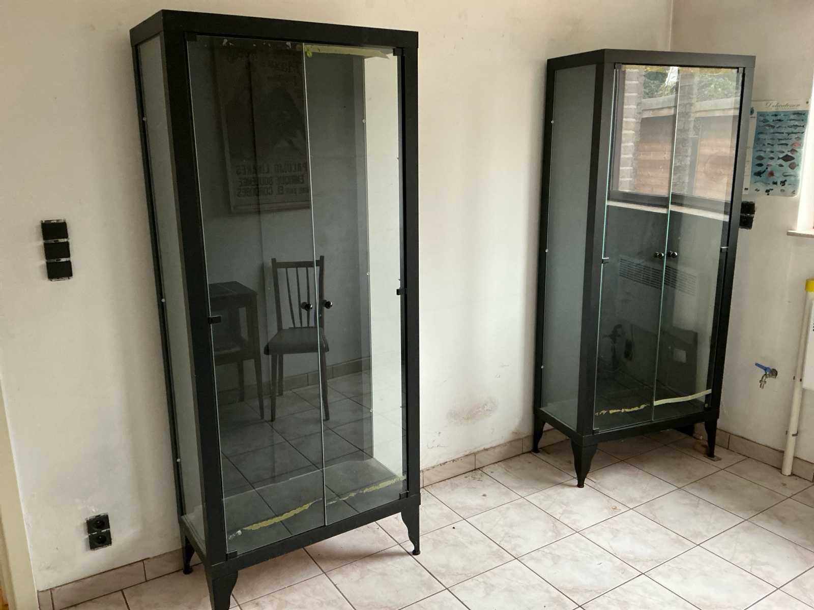 2 vitrinekasten zonder schade. Met glazen leggers. 1m80 hoog. No