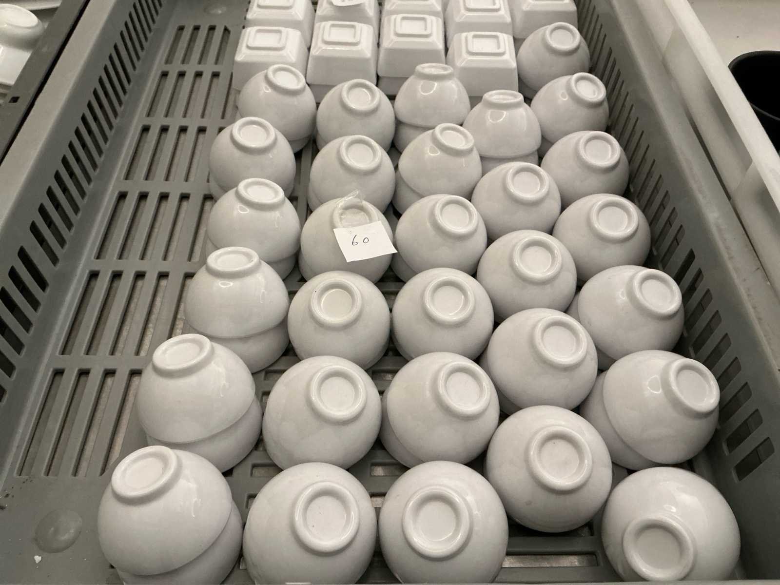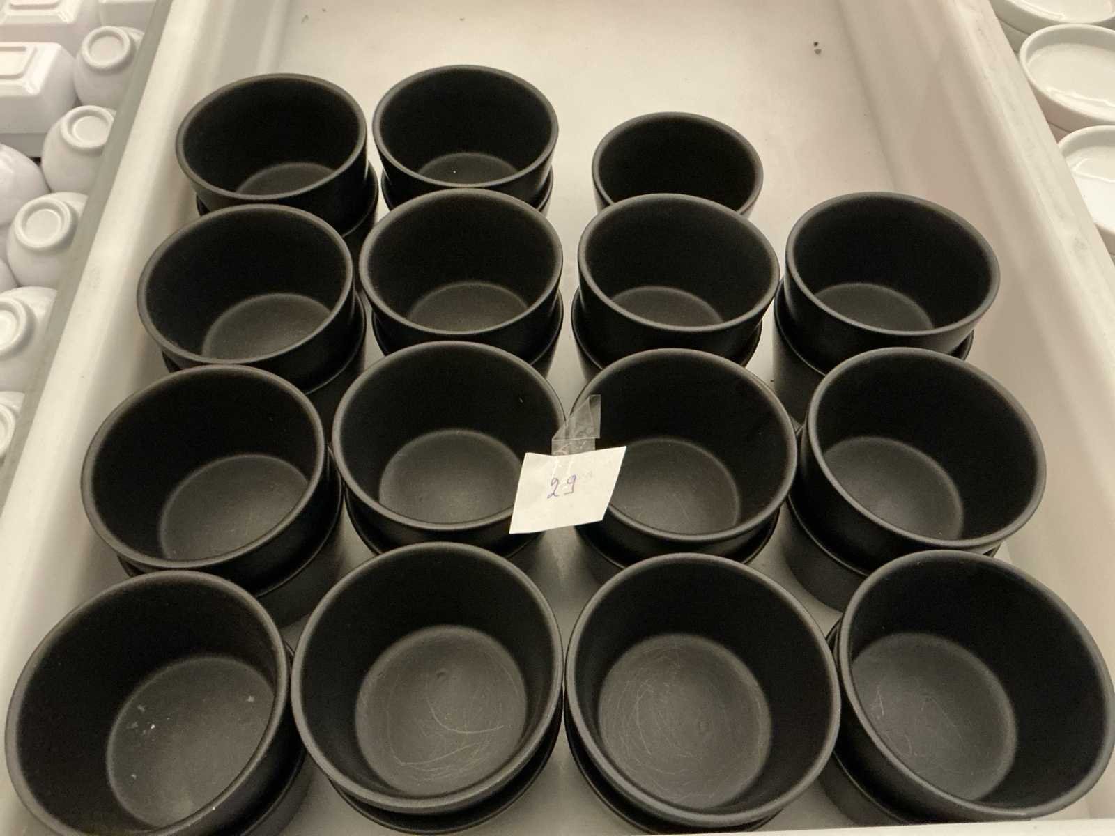 Lot receptie schaaltjes en potjes. Aantallen zie foto’s. Met bakken. No