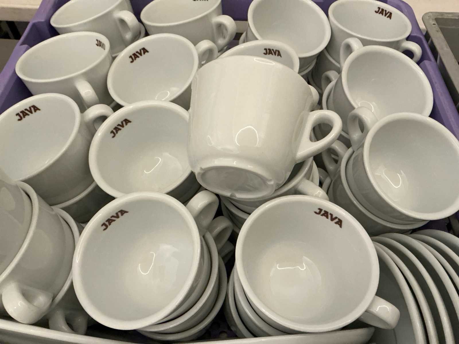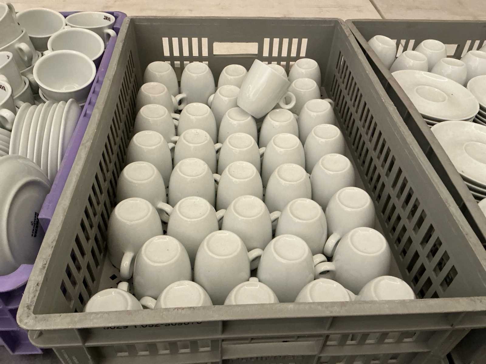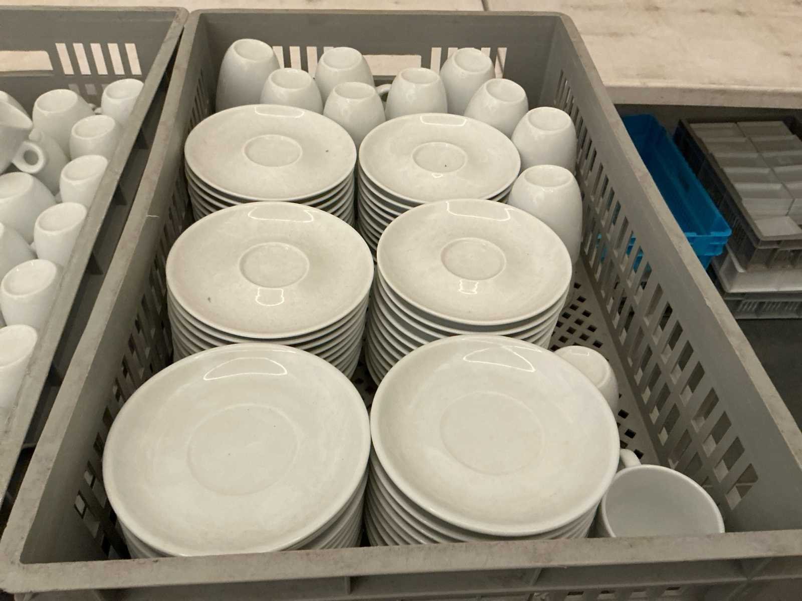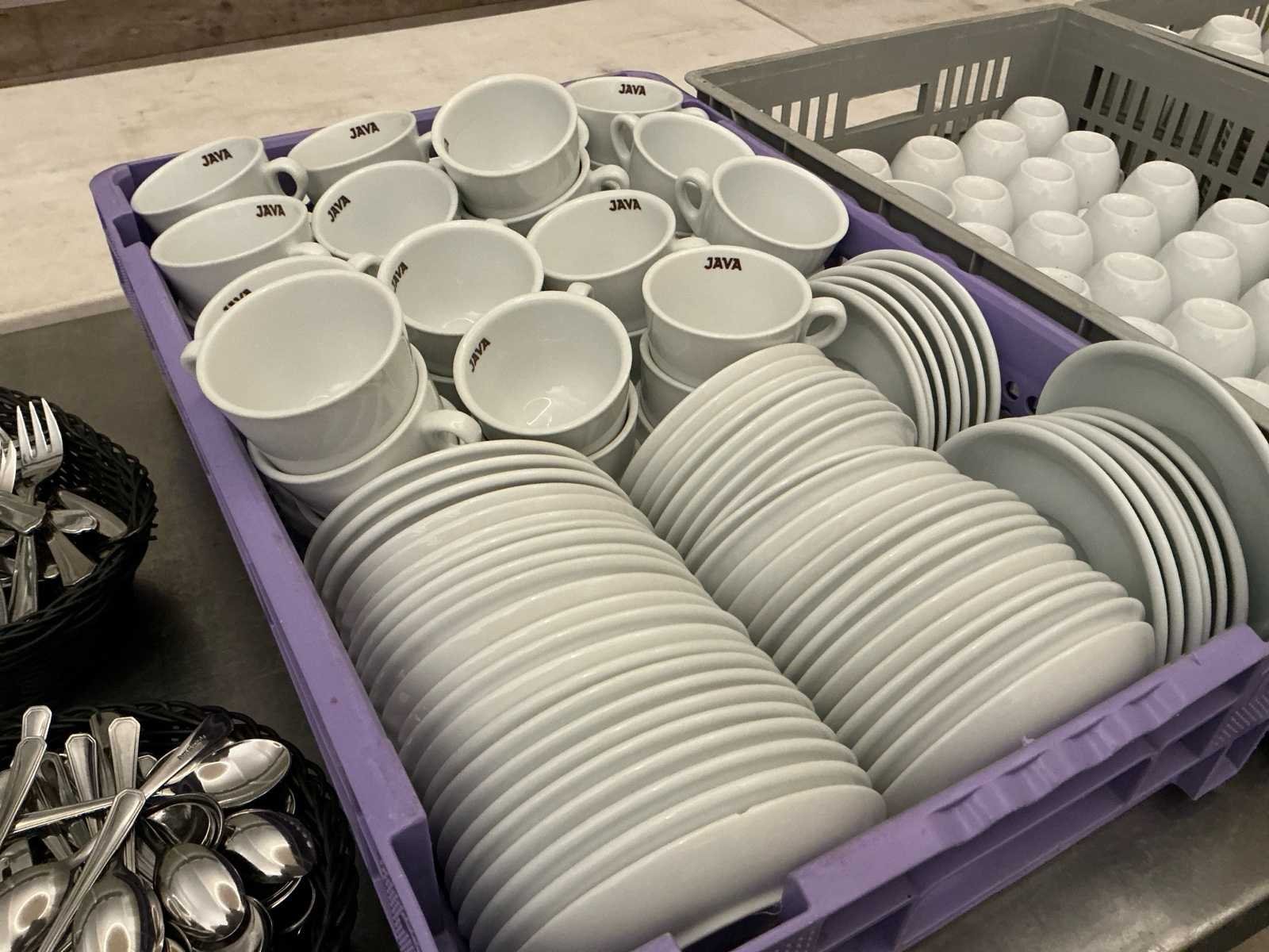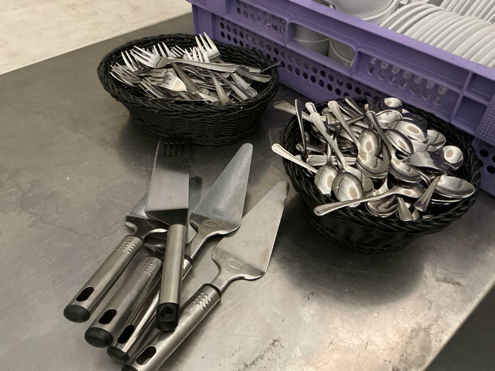 Lot tassen, bordjes, kannen, lepels, vorken, taartscheppen