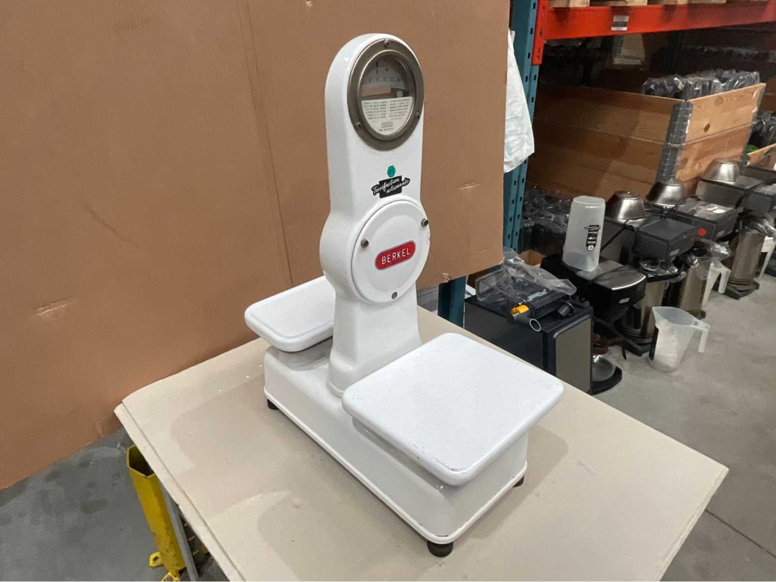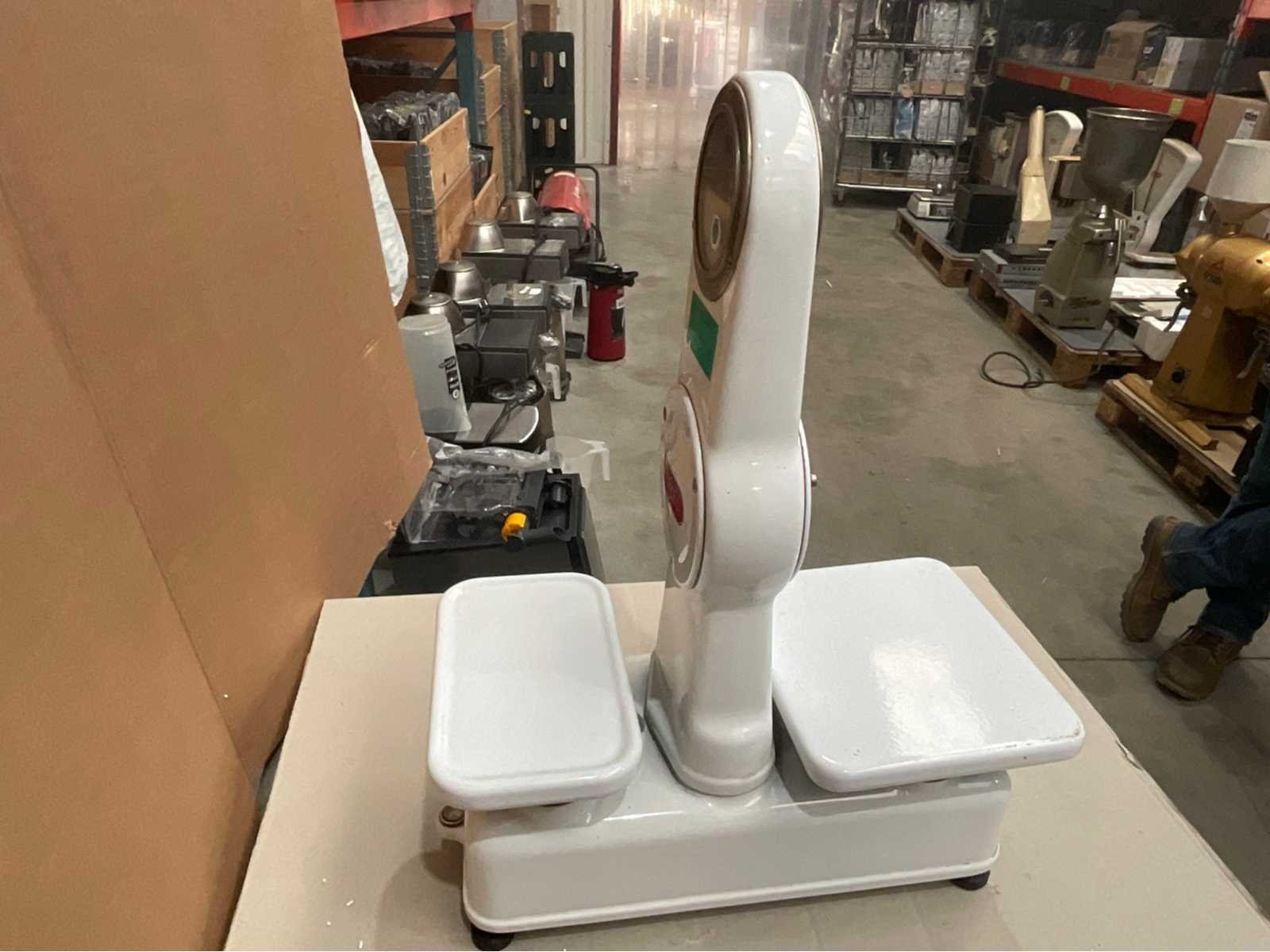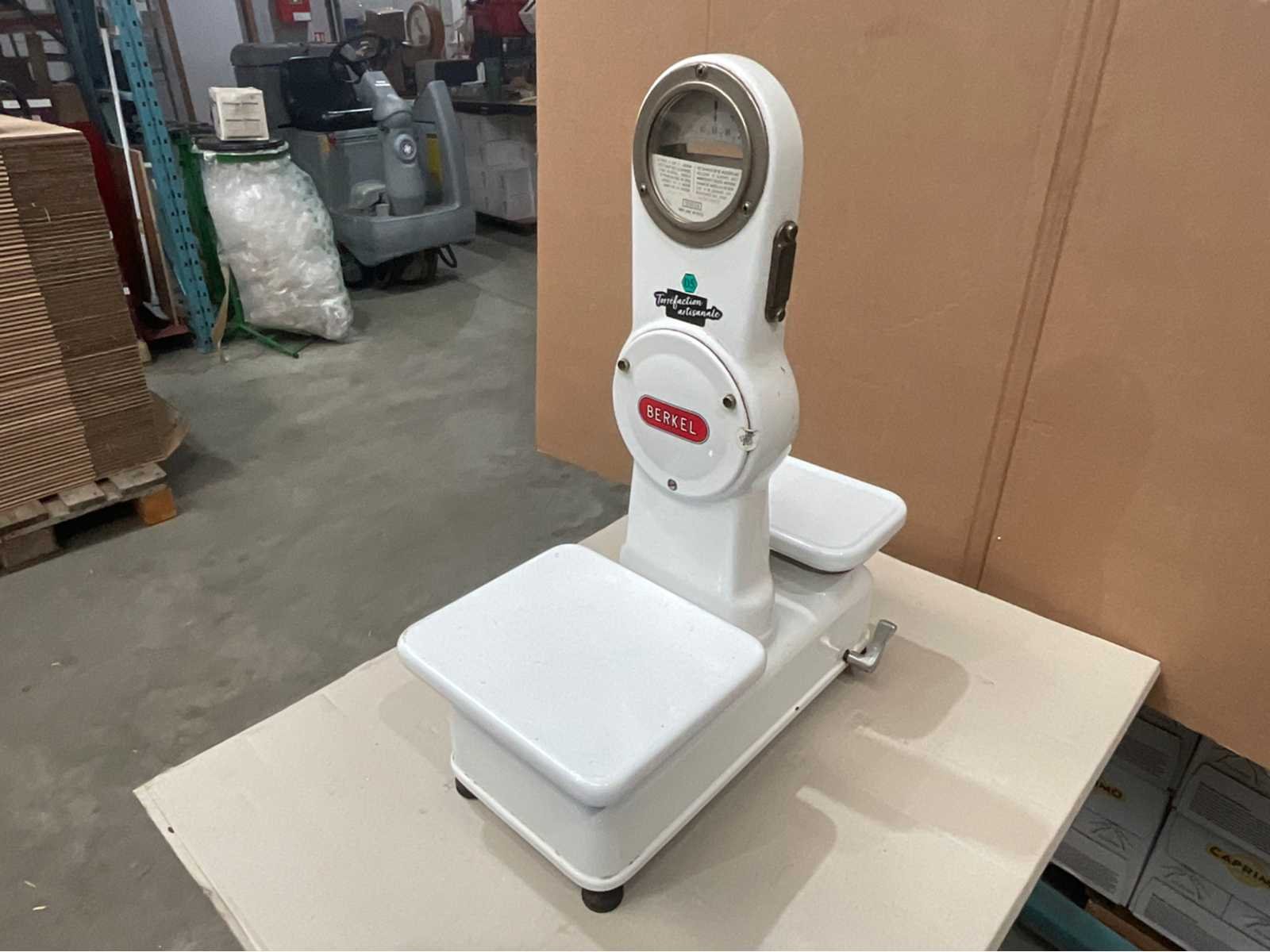 BERKEL professionele mechanische schaal, dubbelplaatmodel, gedateerd 1965. Wit geëmailleerd metalen apparaat met analoge wijzerplaat. Maximale capaciteit 5 kg. Serienummer: 109026. De weegschaal vertoont sporen van normaal gebruik, maar is over het algemeen in goede cosmetische staat. Geschikt object voor decoratie, verzameling of restauratie. Kenmerken Merk: BERKEL Type: Dubbele Plaat Mechanische Schaal Capaciteit: 5 kg Weergave: Analoog draaischijf Jaar: 1965 Serienummer: 109026 Materiaal: Wit emailmetaal Non Merk: Berkel Type: Balance mécanique double plateau Vintage Bouwjaar: 1965 Serienummer: 109026 Weegbereik max: 5000g