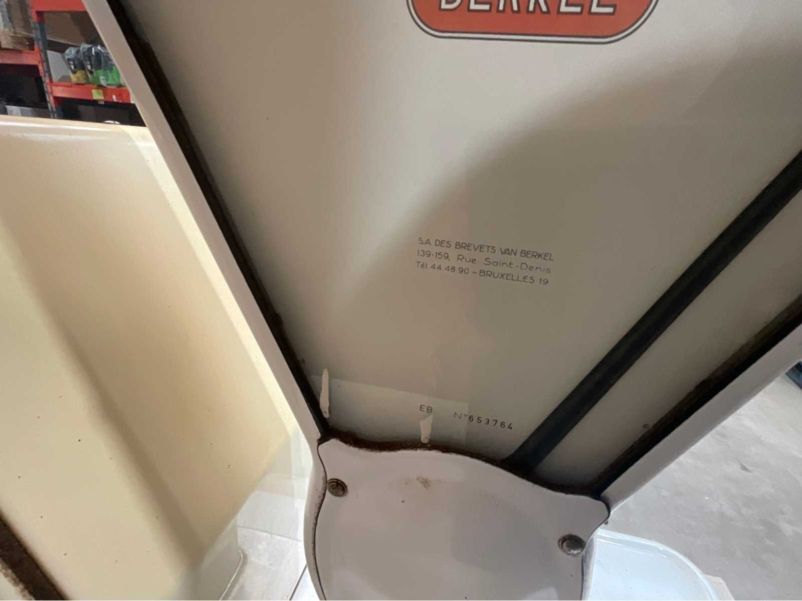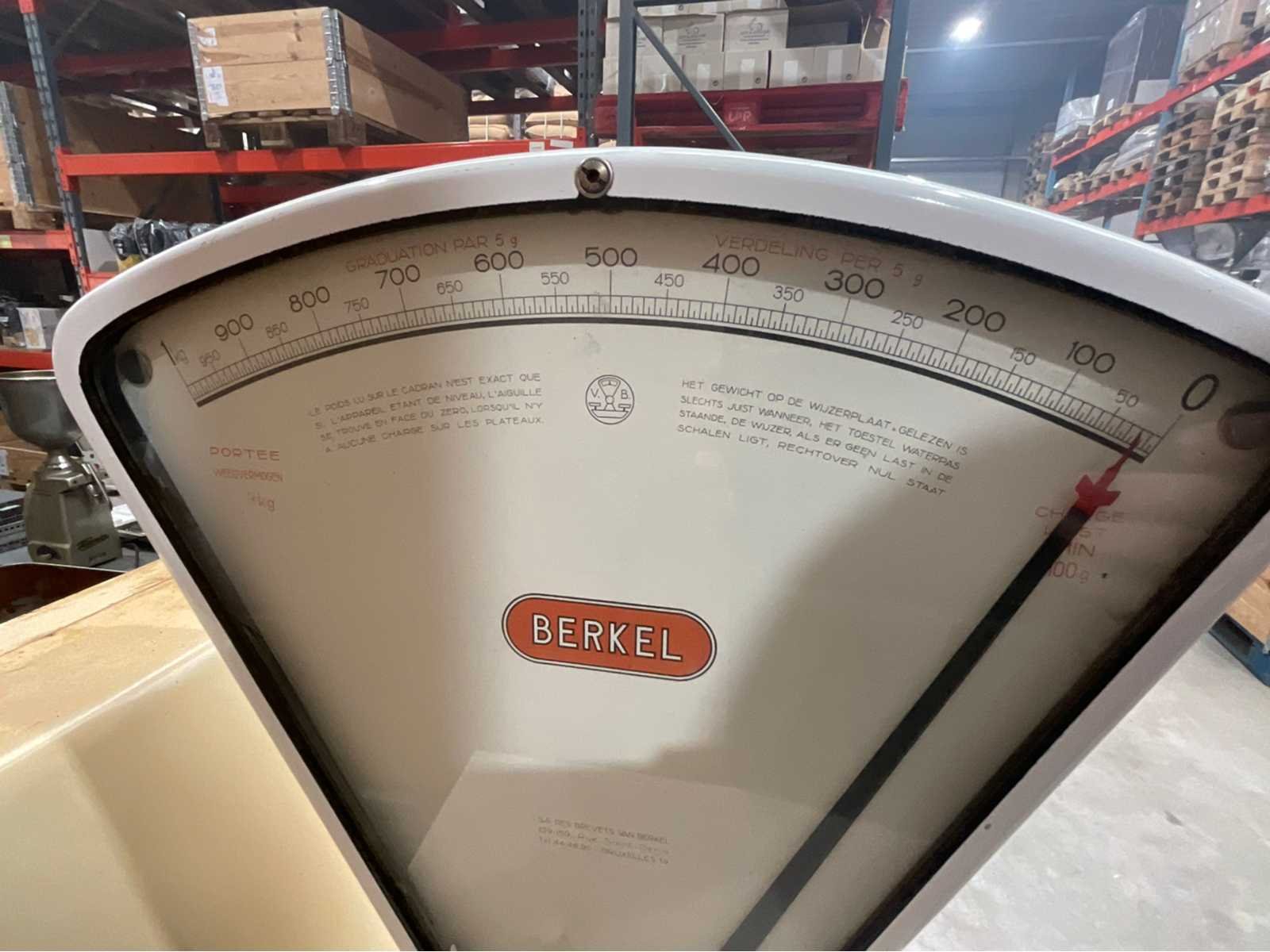 BERKEL professionele mechanische weegschaal, gemaakt in België (SA des Brevets van Berkel, Brussel), uitgerust met een laterale doseerhopper voor het vullen van droge producten (bloem, bonen, gemalen koffie, griesmeel, enz.). Oud, stevig, volledig metalen model. Nauwkeurige graduatie per 5 g en een aangekondigd bereik van ongeveer 1 kg. Ideaal voor verzamelaars, winkeldecoratie, vintage bakkerij/supermarkt of catering. Kenmerken: Merk: BERKEL Wijde wijzerplaat vooraflezing Capaciteit: ±1 kg (graduatie per 5 g) Metalen distributietoor, onderste uitlaatpijp Nummer: EB nr 653764 Materiaal: geschilderd metaal + roestvrijstalen elementen Productie: België Non Merk: Berkel Type: Balance mécanique Vintage Serienummer: EB No 653764 Weegbereik max: 1000g Afleesnauwkeurigheid: 5g