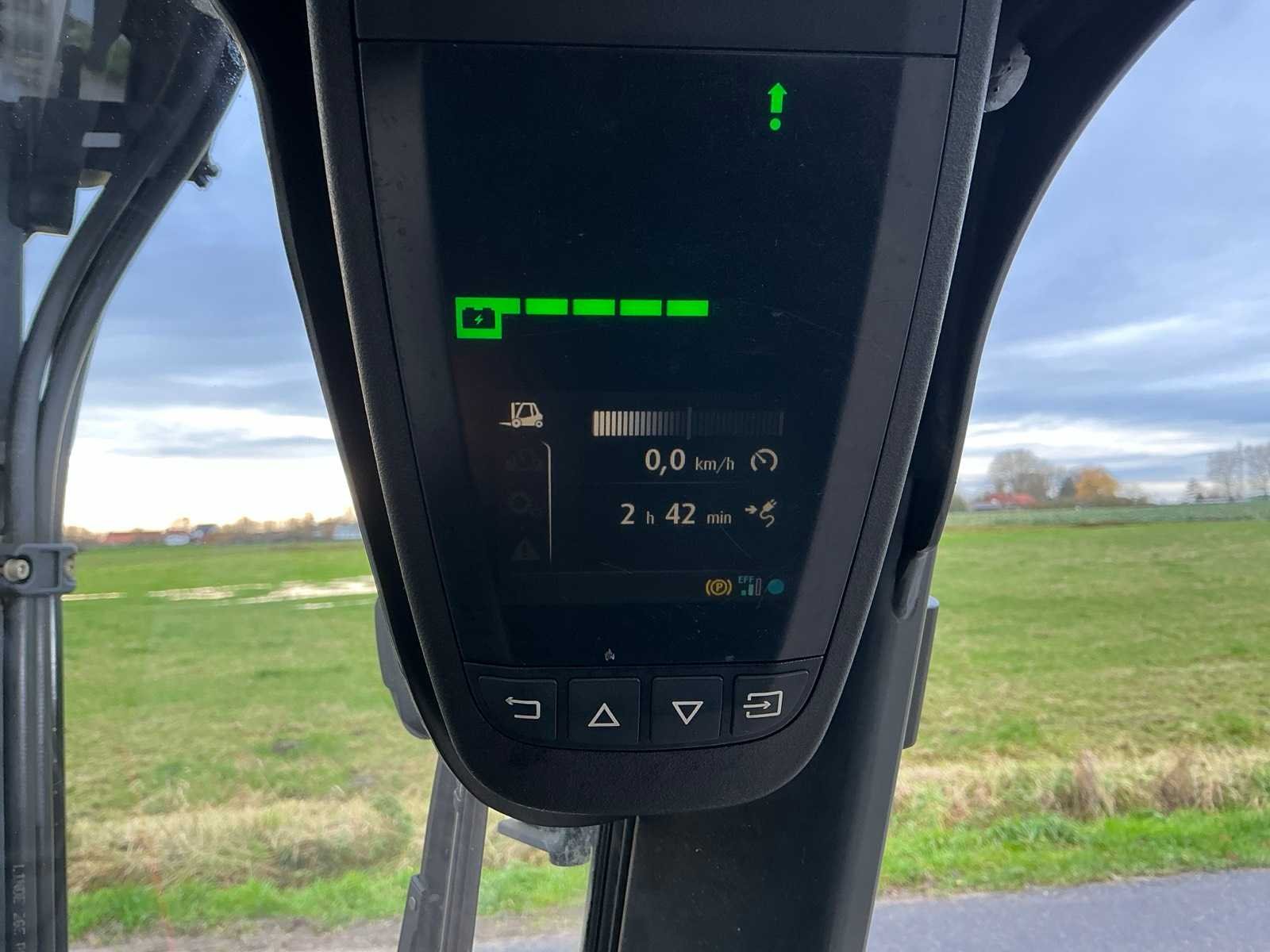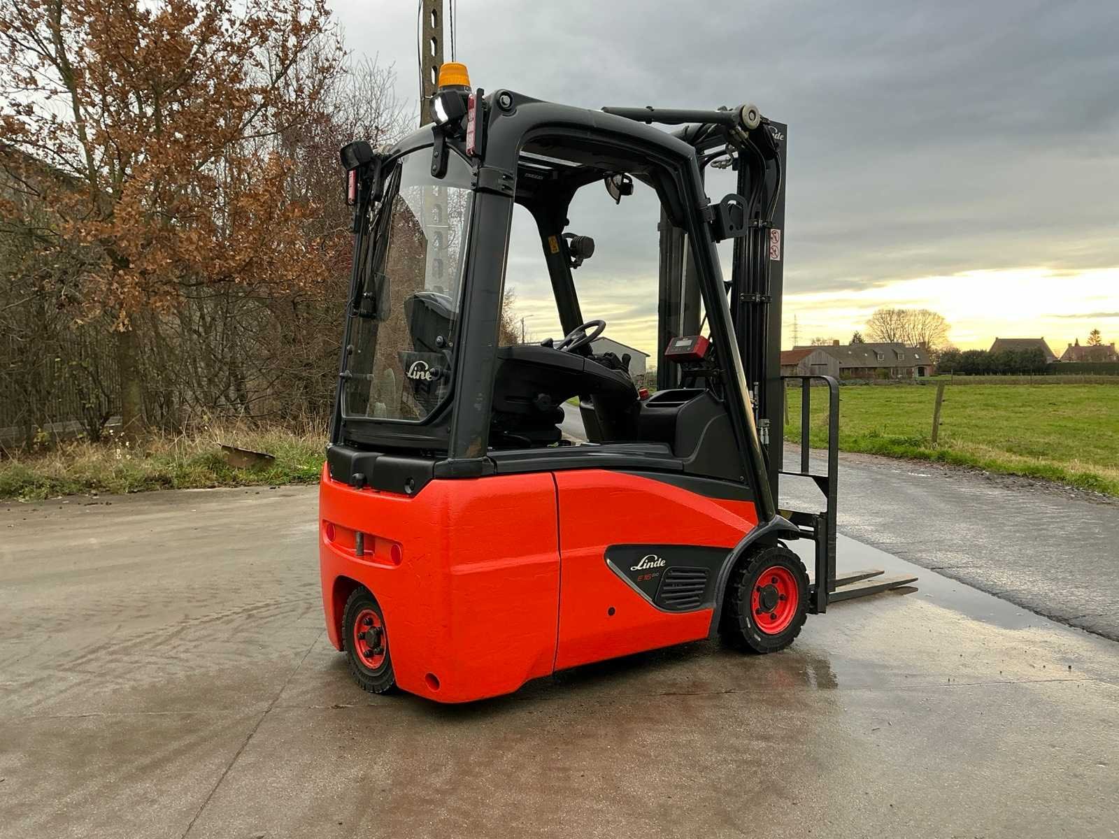 Geijkt RAVAS RCS weegsysteem , led werklichten voor en achter , blue spot , flash light , geveerde stoel No Merk: Linde Type: E16C-02 Bouwjaar: 2018 Serienummer: H2X386J00264 Brandstof: Elektrisch Mast: Triple Soort band: Volrubber banden Aantal wielen: 4 Afgelezen urenstand: 0 Side-shift: true Triple mast: true Eigen gewicht: 3500kg Hefvermogen: 1600kg Lepellengte: 1100mm Min. hefhoogte: 0mm Max. hefhoogte: 4620mm Totale afmeting L: 2000mm Totale afmeting Breedte: 1100mm Totale afmeting Hoogte: 2100mm