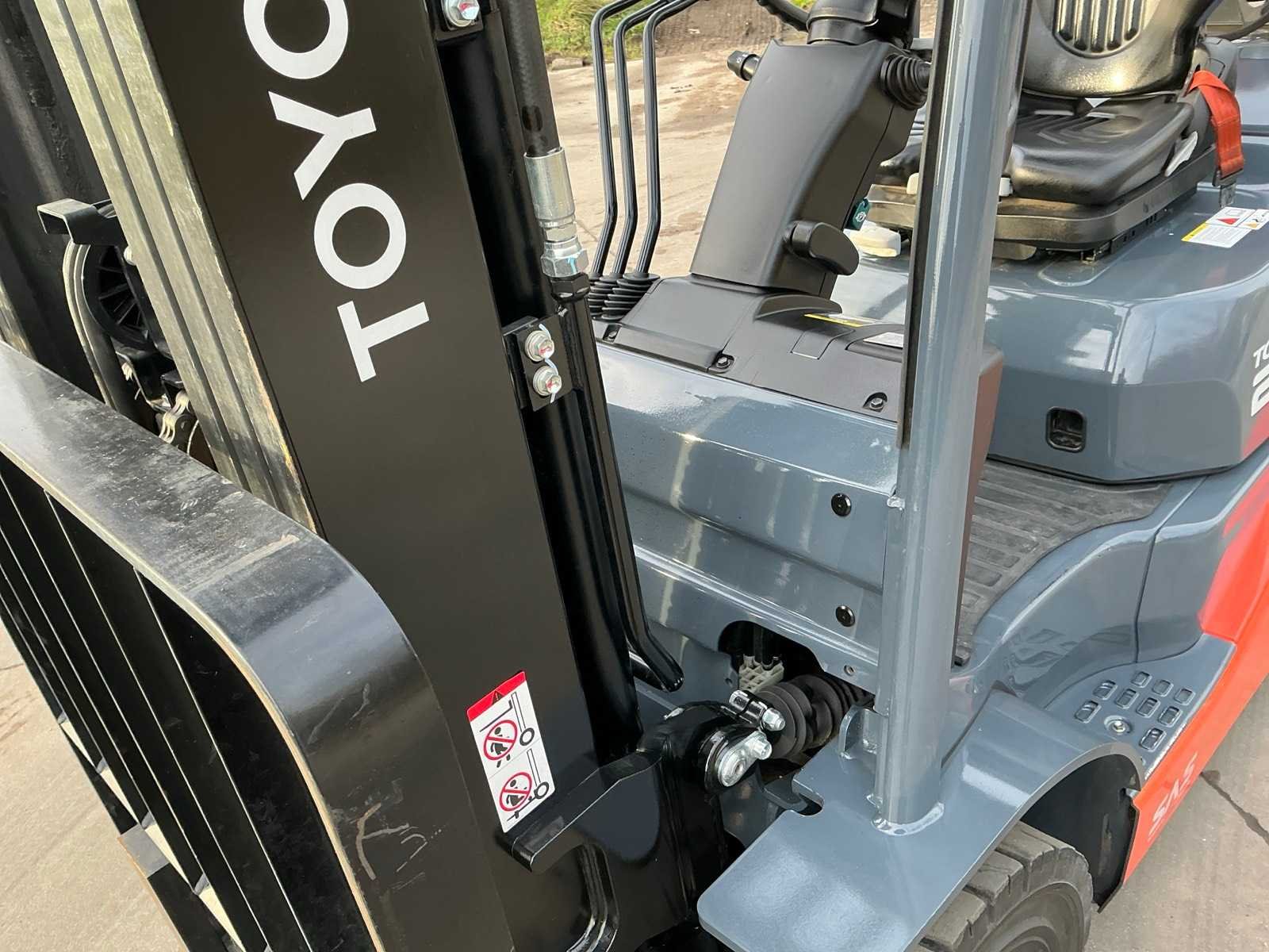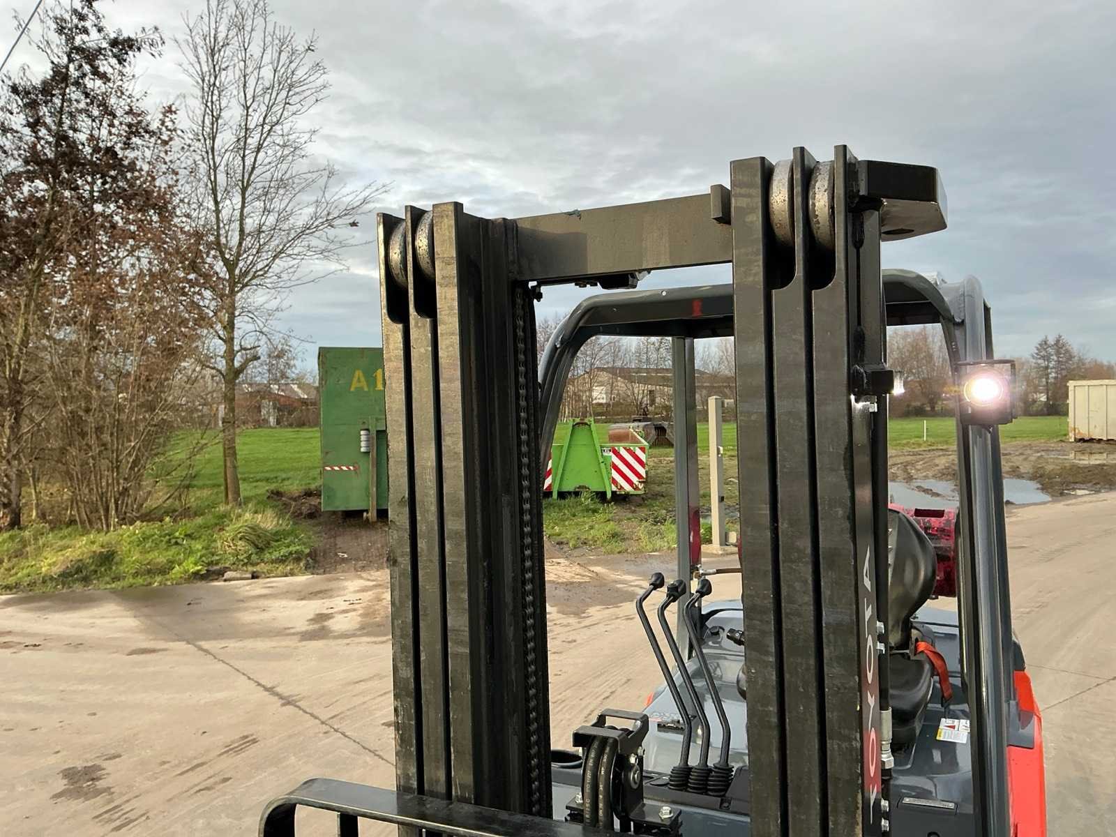 Demo machine , enkel verfschade achterkant Nee Merk: Toyota Type: 22-FGF20 Bouwjaar: 2024 Serienummer: 86327 Brandstof: LPG Mast: Triple Soort band: Volrubber banden Aantal wielen: 4 Afgelezen urenstand: 250 Side-shift: true Triple mast: true Eigen gewicht: 3570kg Hefvermogen: 2000kg Lepellengte: 1200mm Min. hefhoogte: 0mm Max. hefhoogte: 4700mm Hefhoogte: 4700mm Vol rubber banden: true Totale afmeting L: 2200mm Totale afmeting Breedte: 1100mm Totale afmeting Hoogte: 2100mm