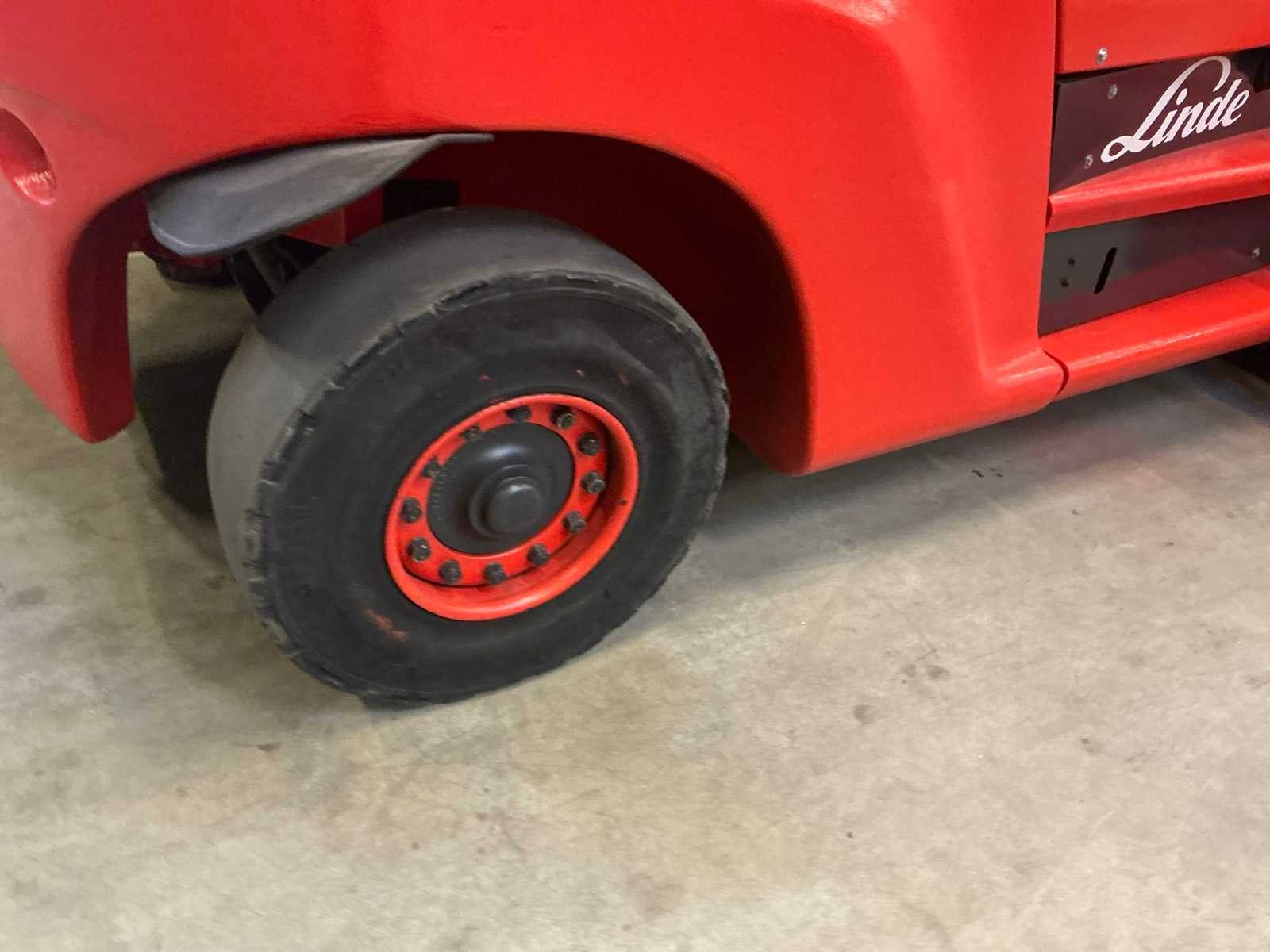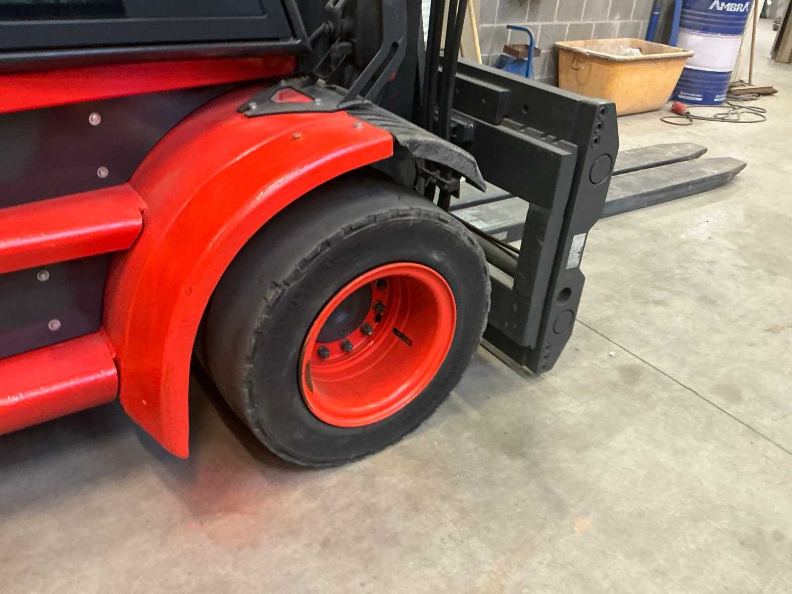 Voorzien van verlenglepels Nee Merk: Linde Type: H80D-01/900 Bouwjaar: 2012 Serienummer: H2X396C00580 Brandstof: Diesel Mast: Duplex Soort band: Volrubber banden Aantal wielen: 4 Afgelezen urenstand: 15535 Free-lift: true Hydraulisch verstelbare lepels: true Duplex mast: true Eigen gewicht: 13810kg Hefvermogen: 8000kg Lepellengte: 2420mm Hefhoogte: 3950mm Vol rubber banden: true Totale afmeting Breedte: 2200mm Diesel: true