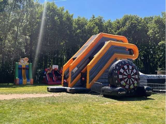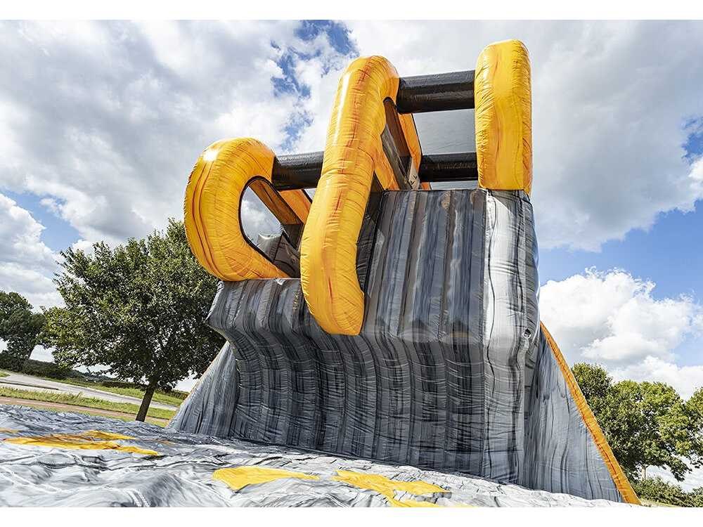 Voor de echte dare-devils: springen van grote hoogte! Daag jouw klanten uit met deze spectaculaire Base Jump Pro: een klimhelling met twee verschillende hoogtes: 4 en 6 meter. Ben je eenmaal boven? Dan moet je nog naar beneden.. wie durft de hoogste sprong aan een vrije val te maken van ruim 6 meter? De extra dikke valmat zorgt voor een veilige ondergrond. Voel je de adrenaline al? Simpel op te zetten en compleet geleverd Zet de Base Jump Pro eenvoudig binnen 20 minuten op. Deze inflatable bestaat uit twee delen en is daardoor eenvoudig te transporteren. We leveren het kussen inclusief blowers, verankeringsmateriaal, een transportzak en een duidelijke handleiding. Zo heb je alles compleet voor een mooie beleving. No Merk: JB INFLATEBLE Model: ATTRACTIE Kleur: GRIJS/ZWART/GEEL Gewicht: 350kg Lengte: 1000cm Breedte: 720cm Hoogte: 800cm