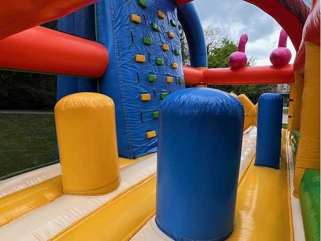 Een spectaculaire attractie van 40m. Bestaat uit 4 delen, hindernissen, glijbaan, klimtoren en jumpingballs. De hindernisbaan is in goede staat en bevat 4 blowers. Je kan de delen ook verhuren in stuken van 9m, 18m, 27m, 40m, ... verschillende combinaties mogelijk. Op de fotos van je de verschillende delen zien en verschillende combinaties. 2 jaar oud en in goede staat, kan nog jaren mee. Nieuwprijs was 24.000euro excl btw. Zeer mooi en populair Thema flamingo / beach No Merk: SKY Inflatble Model: ATTRACTIE Gewicht: 500kg Lengte: 4000cm Breedte: 400cm Hoogte: 500cm