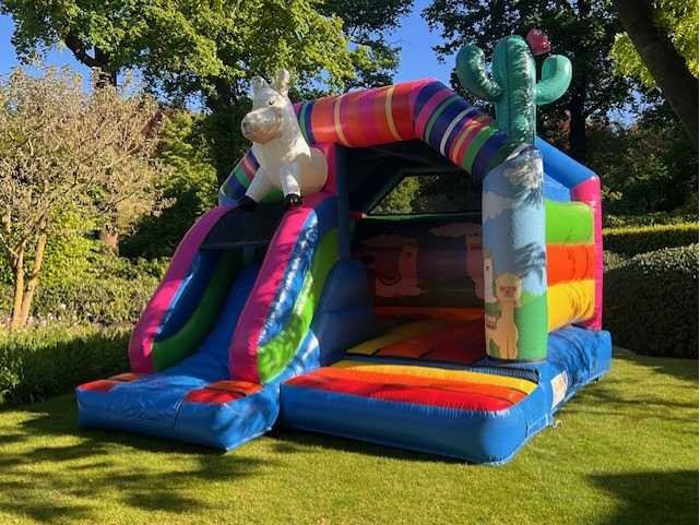 Zeer goede staat. Overdekt met een glijbaan. De opblaasbare Slide Combo Springkastelen zijn niet voor niks zo geliefd. Deze opblaasbare attracties voor kinderen staan garant voor urenlang vermaak. Springen is al leuk, maar als je dan ook nog van de glijbaan kunt roetsjen dan is dat natuurlijk helemaal geweldig. Incl 1 blower No Merk: Boing Model: Springkasteel Gewicht: 100kg Lengte: 500cm Breedte: 400cm Hoogte: 400cm