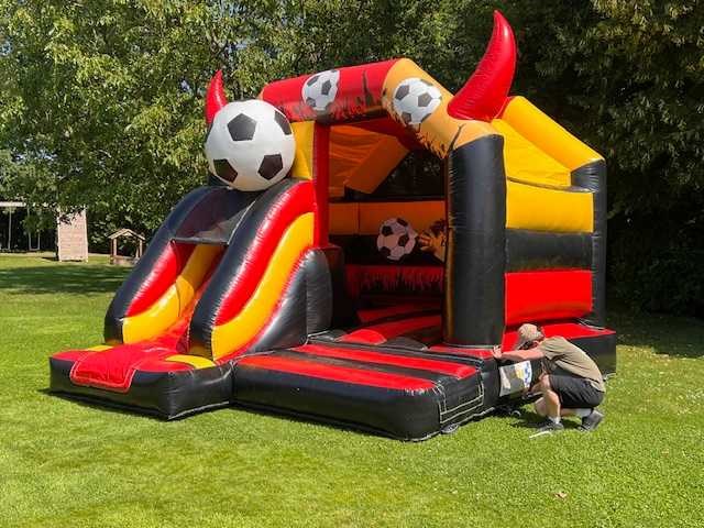 Super leuk springkasteel met glijbaan, in nieuw staat! 1 jaar oud!!! Maatwerk Wil jij een springkasteel met glijbaan kopen in een superleuk thema?Dit Slide Combo Voetbal Springkasteel is de ultieme attractie bij elk EK-, WK- en Champions League feestje, maar ook tijdens sportdagen en feestjes springen kinderen een gat in de lucht als ze dit springkasteel zien. Koop je deze Slide Combo, dan schiet je zeker in de roos! Incl 1 blower No Merk: Boing Model: Springkasteel Gewicht: 110kg Lengte: 400cm Breedte: 500cm Hoogte: 400cm