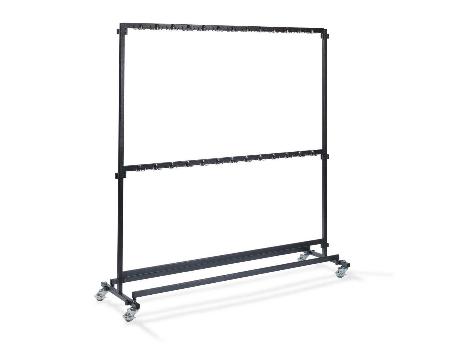 Vestiare rek voorzien van haakjes en leggers voor kapstokken. Combo van beide systemen zoals op de foto. 2 steunen met wieltjes 2 leggers met haakjes 3 leggers voor kledinghangers No Lengte: 200 Materiaal: Metaal