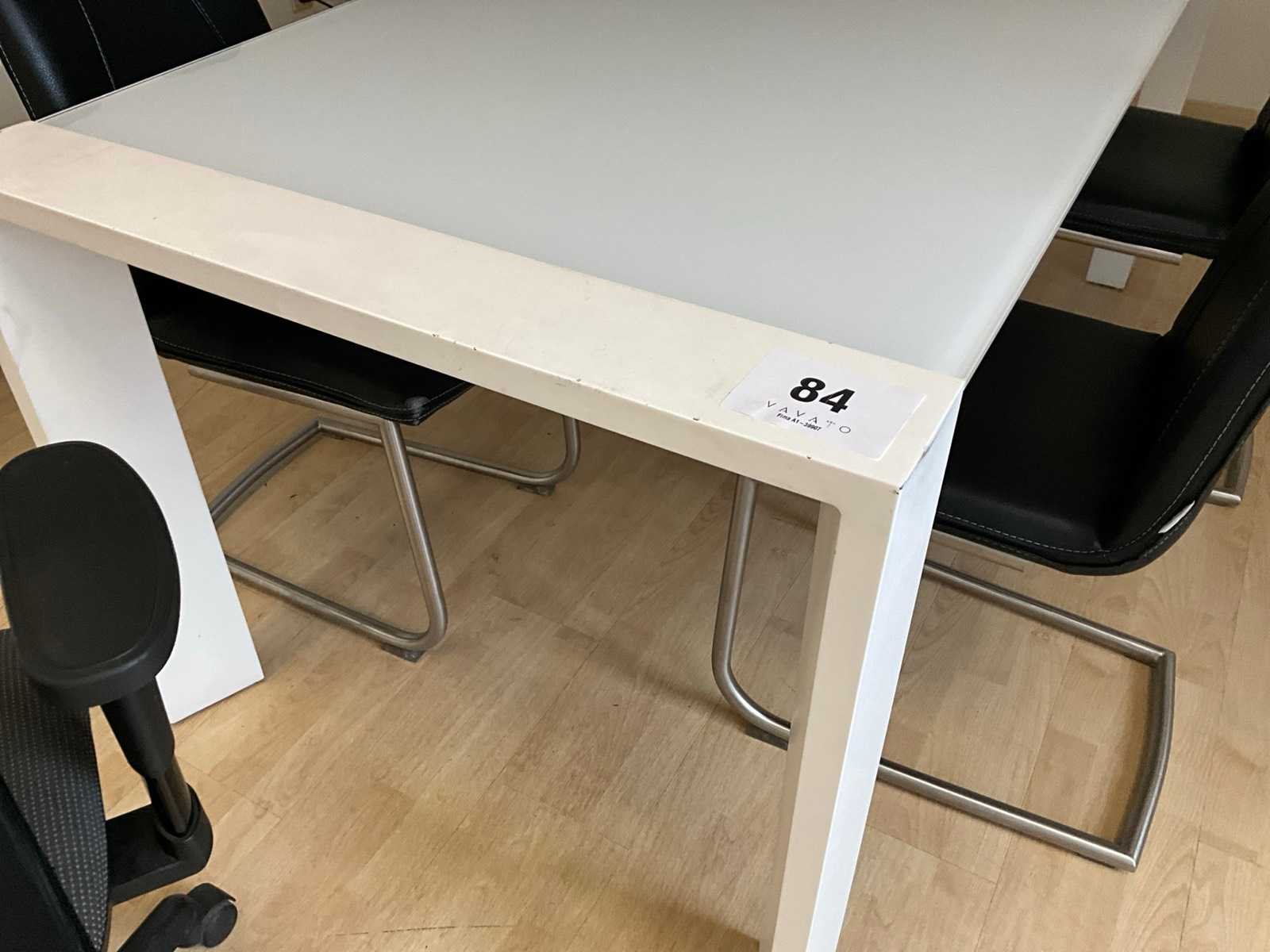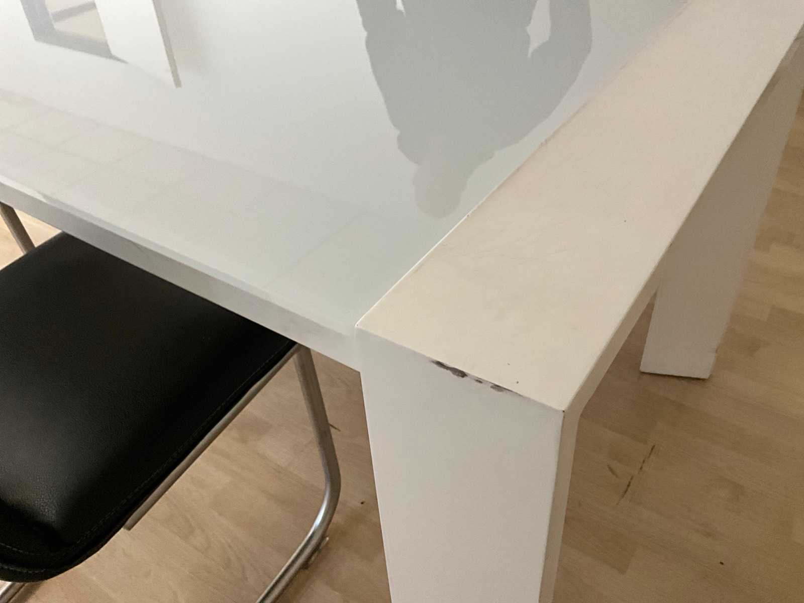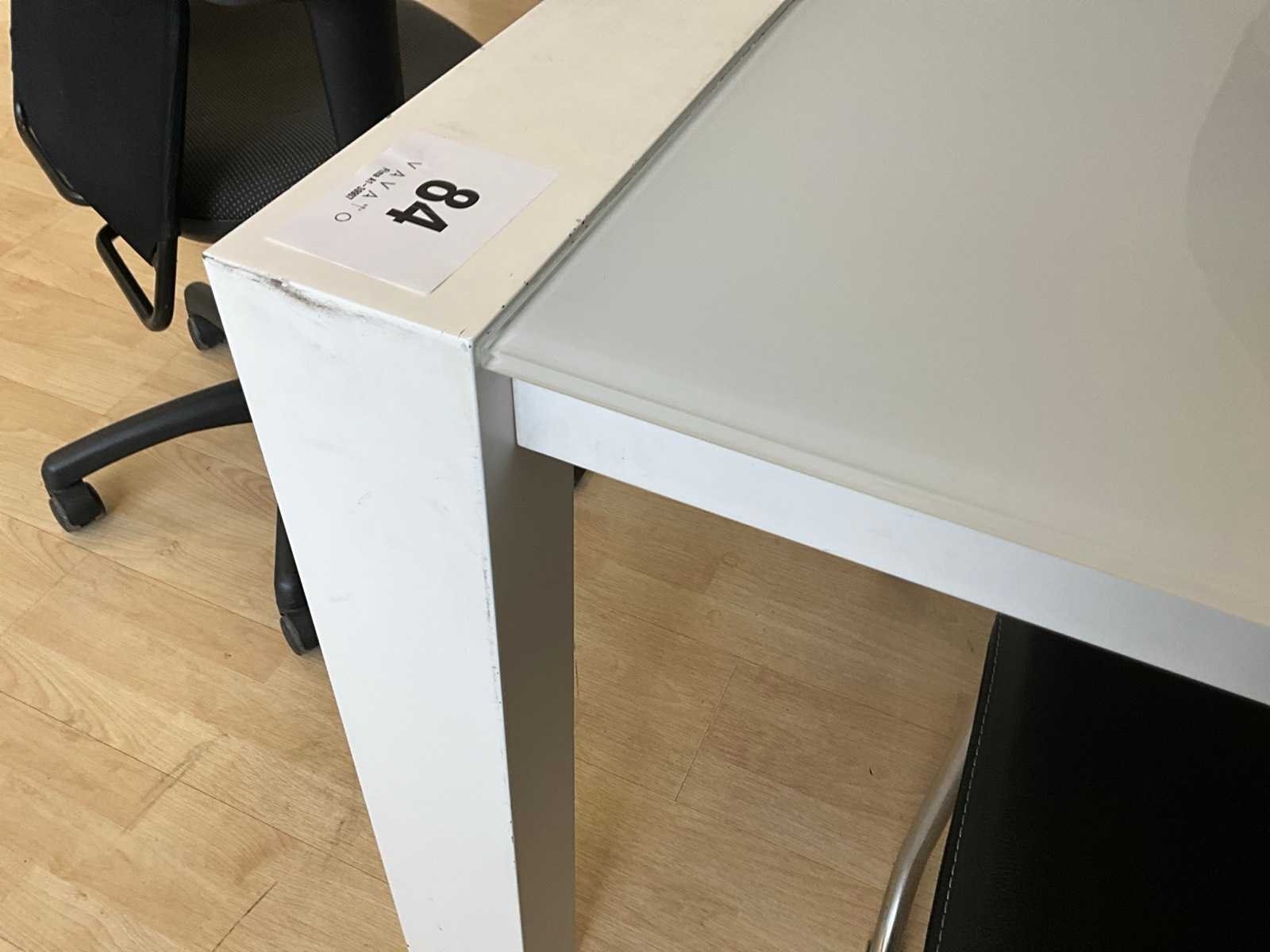 Waaronder tafel met glazen blad, afmetingen 190x90x77cm, 4x Xooon stoel, 1x bureastoel, 1x rolluikkast 120x43x100cm Nee