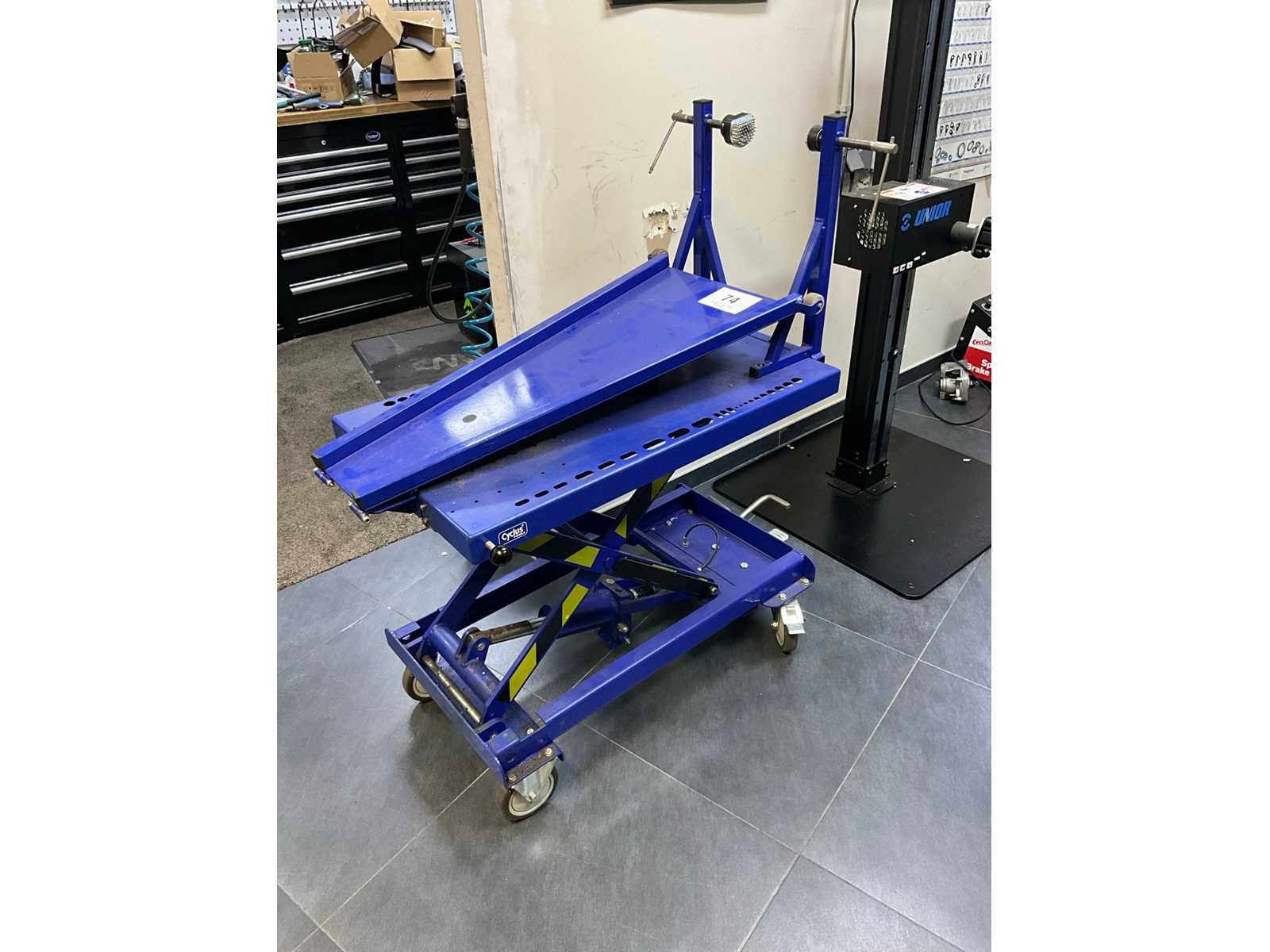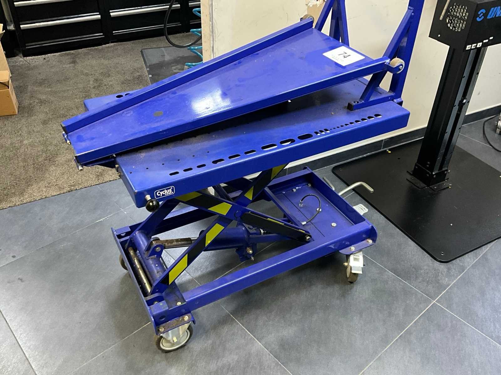 Hydraulisch No Merk: Cyclus Type: Verrijdbare Schaarhefbrug: true Capaciteit.: 100kg Totale afmeting L: 1000mm Totale afmeting Breedte: 550mm Totale afmeting Hoogte: 1150mm
