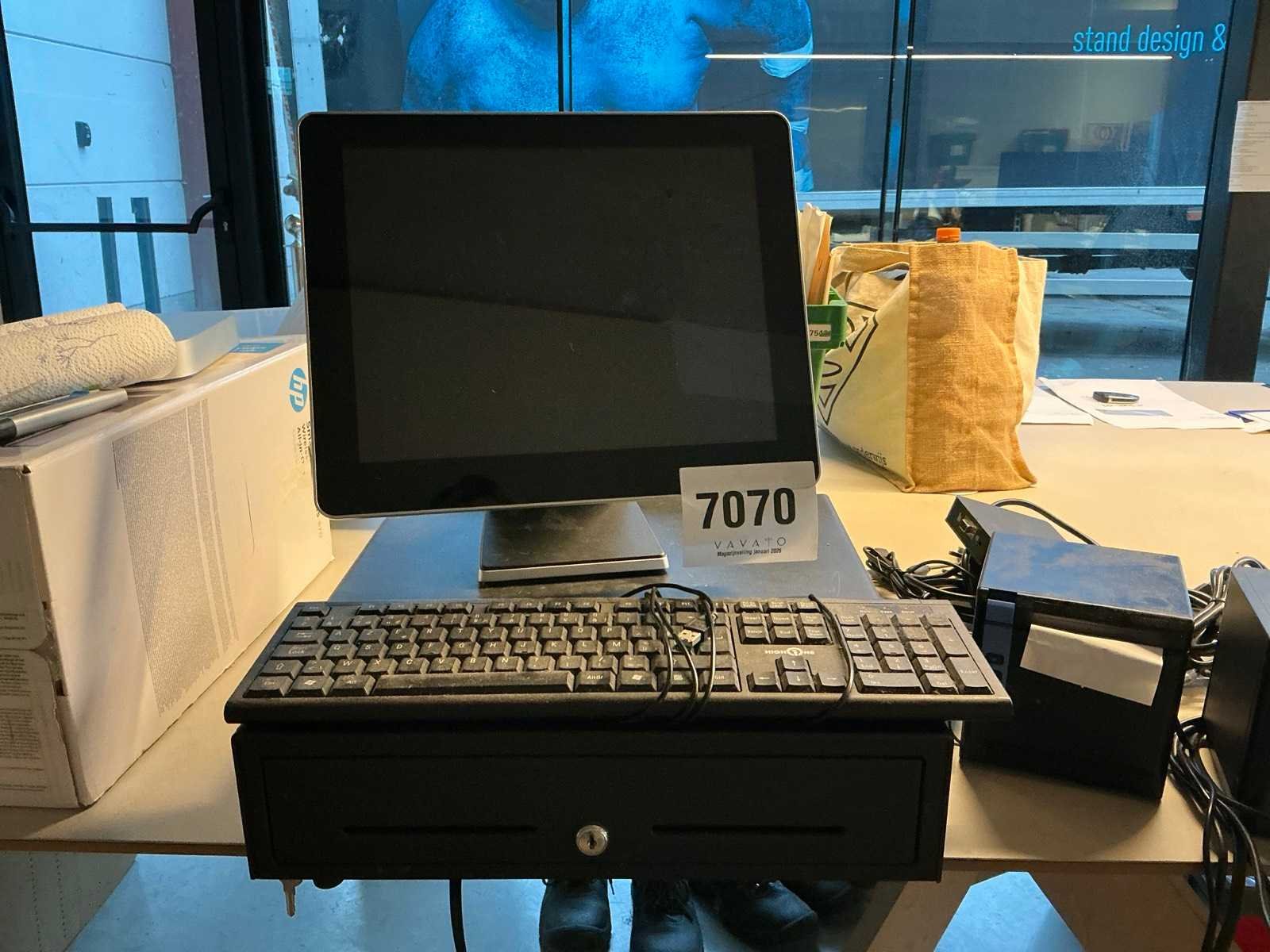 Voorzien van 2 diverse ticketprinters waaronder 1 x SEKURIET T890H, metalen geldlade, slotvast, enig toebehoren en toetsenbord HIGHONE No Merk: SEKURIET Type: PP-9645C Serienummer: PP9645C012210226 Touchscreen: true Kassa lade: true