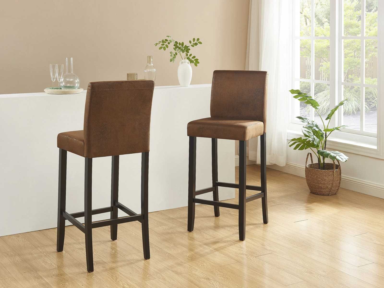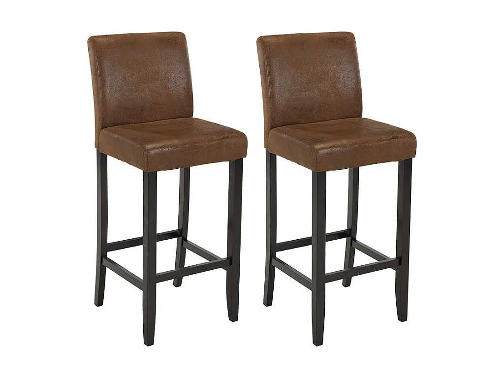 Set van 2 barkrukken - microfiber oud leren uiterlijk - donkerhouten poten