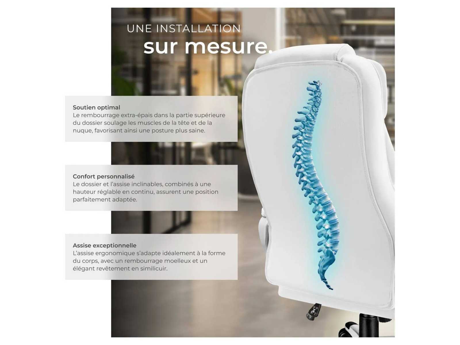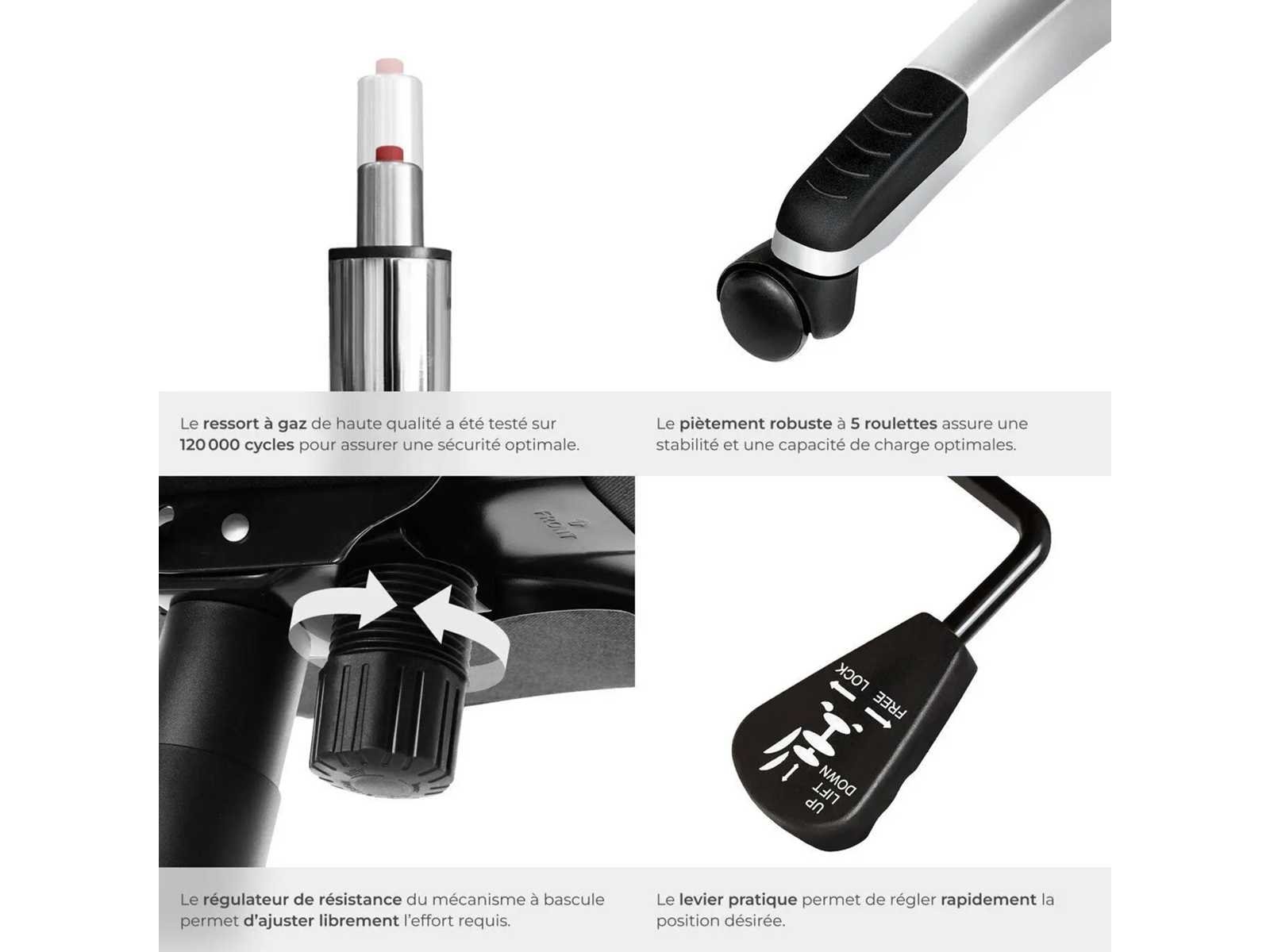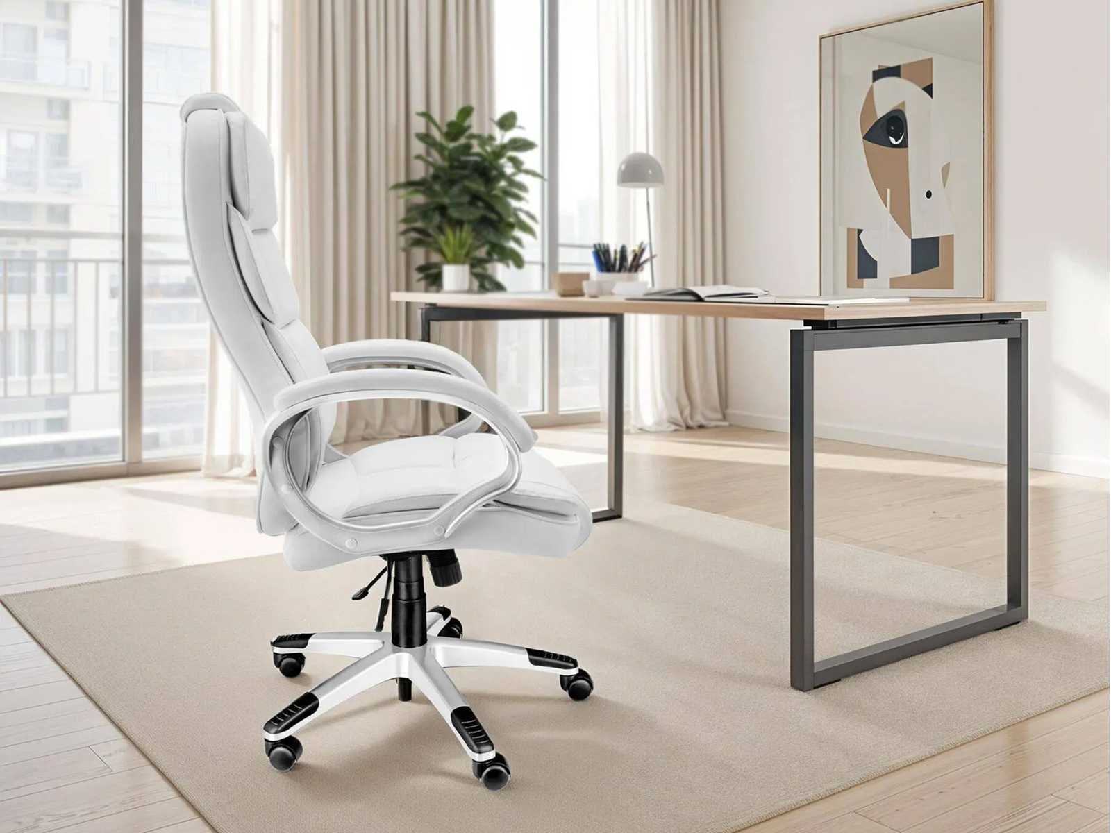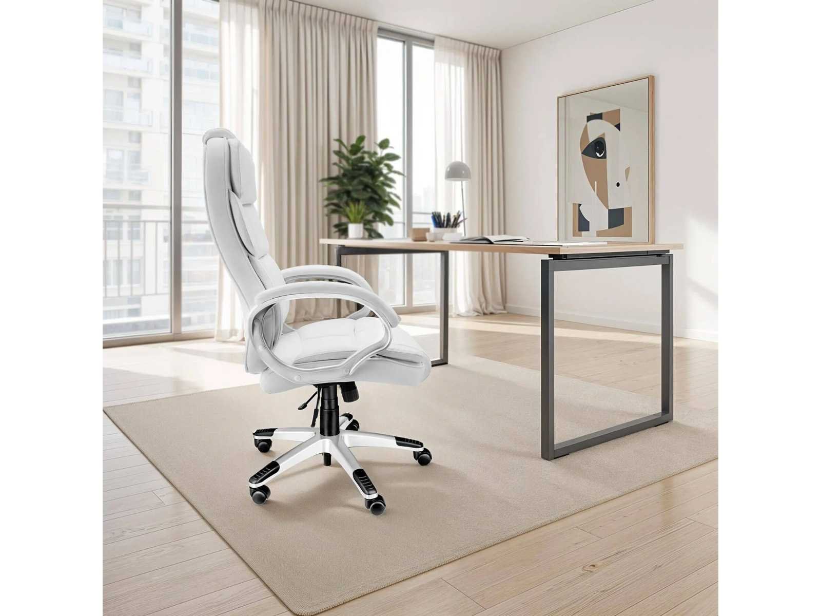 Afmetingen directiestoel (BxDxH): ca. 70 x 71 x 115 - 123 cm Zitoppervlak (Grootte x V): ongeveer 55 x 52 cm Zithoogte: ca. 47 - 55 cm Rugsteunhoogte: ca. 73 cm Armleuningen (BxD): ca. 8 x 44 cm Binnenafstand tussen armleuningen: ca. 54 cm Hoogte van armleuningen boven de vloer: ca. 68,5 - 76,5 cm Kruisbeen (LxW): ongeveer 67 x 67 cm Wielen (Øx w): ca. 5 x 5 cm Dikte van de vulling: van 8 tot 12 cm Maximaal ondersteund gewicht: 120 kg Gewicht: ca. 17,8 kg Materialen: polyurethaan, polyvinylchloride, polyamide Non