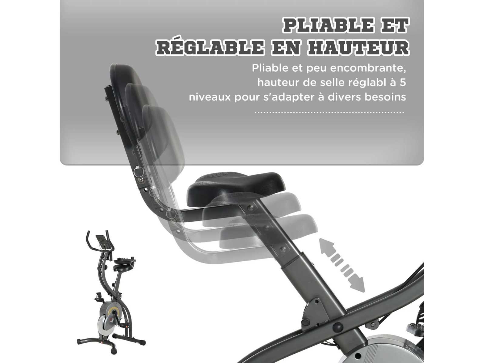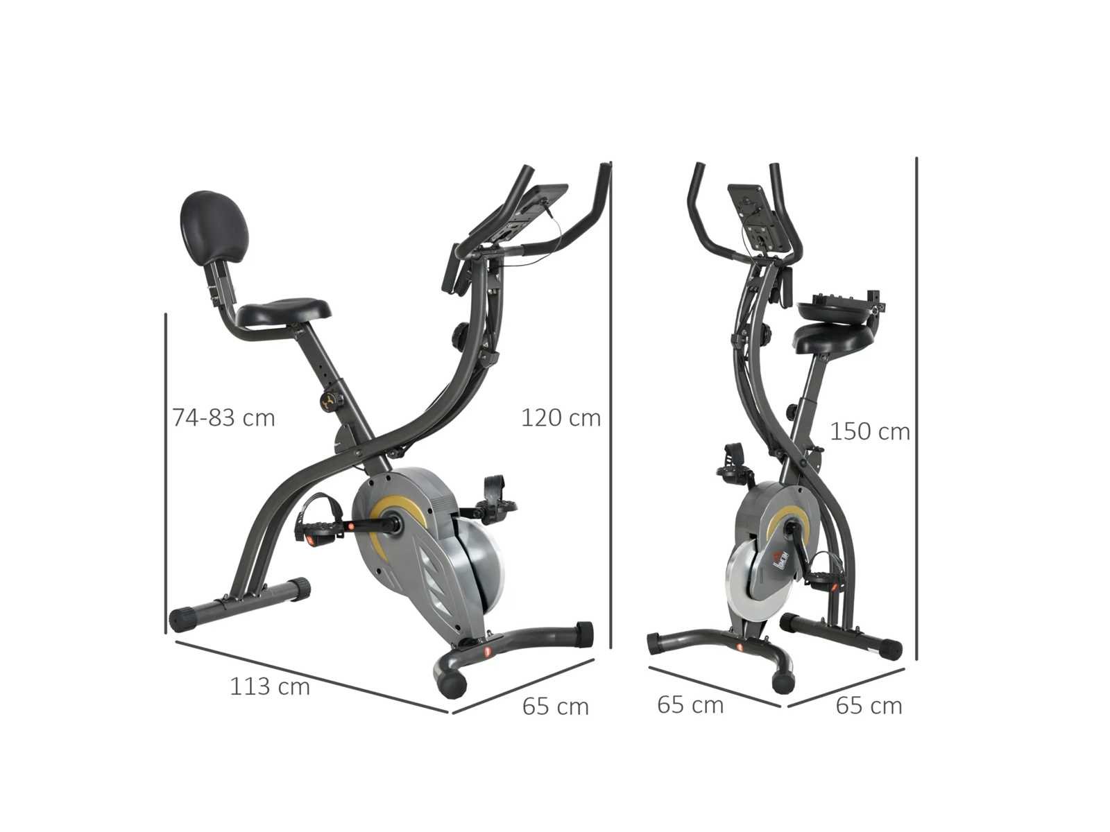 Specificaties: - Kleuren: grijs, zwart - Belangrijkste materialen: staal, ABS -Zon. totaal: 113L x 65B x 120H cm -Zon. opgevouwen: 65L x 65B x 150H cm -Zon. Zadel: 29L x 23B x 7483H cm -Zon. Rugleuning: 19L x 23W cm -Zon. Pedalen: 12L x 9L cm - Vliegwielgewicht: 6 kg - Aanbevolen maximale belasting: 120 kg - EMC-, RoHS- en EN209597-certificeringen Non
