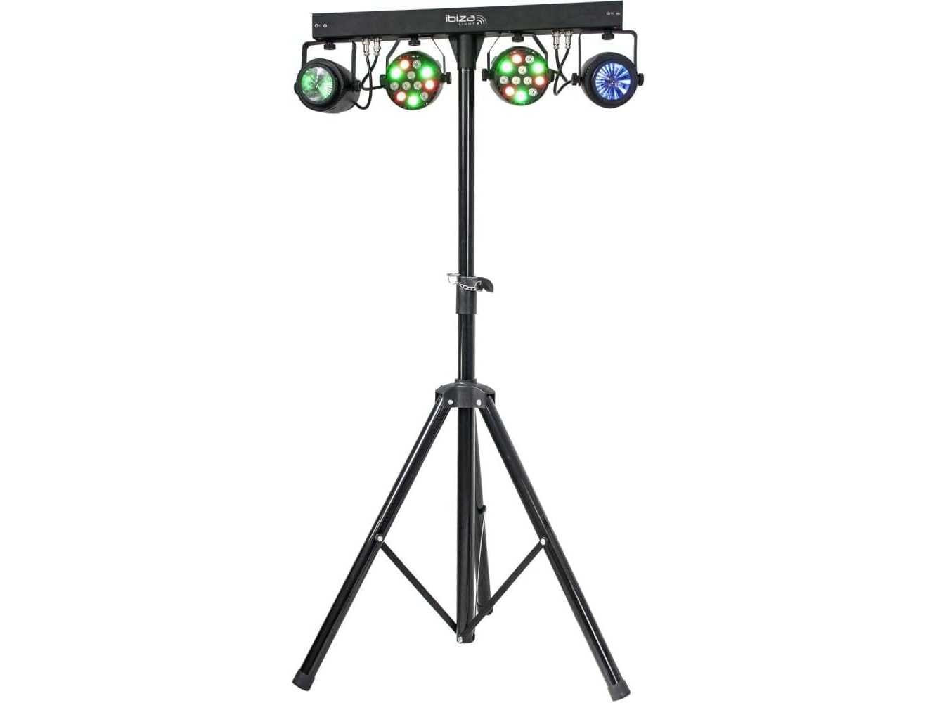 Ibiza - djlight60 - lichtstandaard met 2 rgbb par spotlights en 2 moon fower rvbba spotlights - 4-in-1 led-pakket