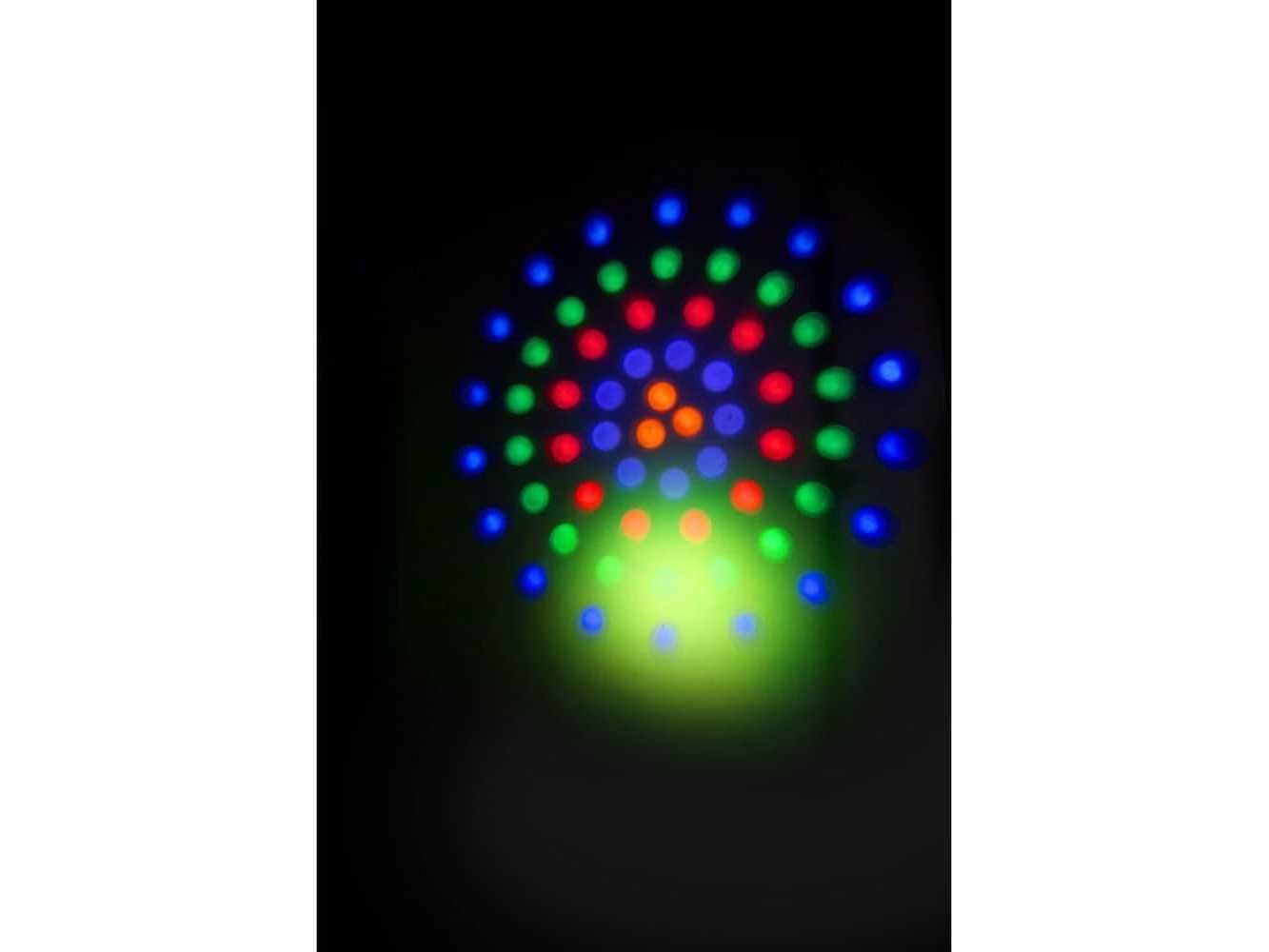 Het pakket bestaat uit de volgende elementen: 2 PAR-projectoren, elk met 12 1W RGBW LED's 2 Maanbloem RGBWA LED De kruisbalk die de apparaten van stroom voorziet Besturing: DMX (9/19 kanalen), master slave, automatische en afstandsbediening Afstandsbediening Zwarte standaard met antislipvoeten 4 meter aan stroomkabel DMX-signaalkabel vooraf geïnstalleerd op alle 4 de projectoren Non