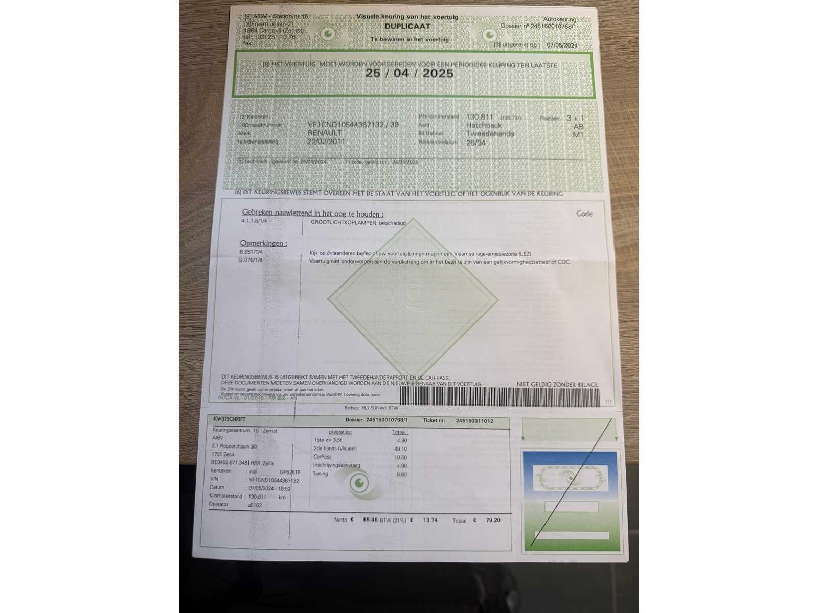 START EN RIJD GOED DEEL 2 INSCHRIJVINGSBEWIJS AANWEZIG Nee Merk: RENAULT Model: TWINGO Bouwjaar: 2011 Afgelezen kilometerstand: 152000km Cilinderinhoud: 1200cc Vermogen (kW): 55kW Brandstof: BENZINE Chassisnummer: VF1CND10544367132 Datum eerste toelating: 22-02-2011 Kleur: GRIJS Transmissie: MANUEEL Emissieklasse: 5 Aantal deuren: 3 Aantal sleutels: 1 Nationaliteit documenten: BELGIE Onderhoudshistorie: JA Carpass: true Start en rijdt: JA Andere boorddocumenten: COMPLEET startinformatie : JA Inschrijvingsbewijs - deel 1 : AANWEZIG Inschrijvingsbewijs - deel 2: ATTEST VERLIES