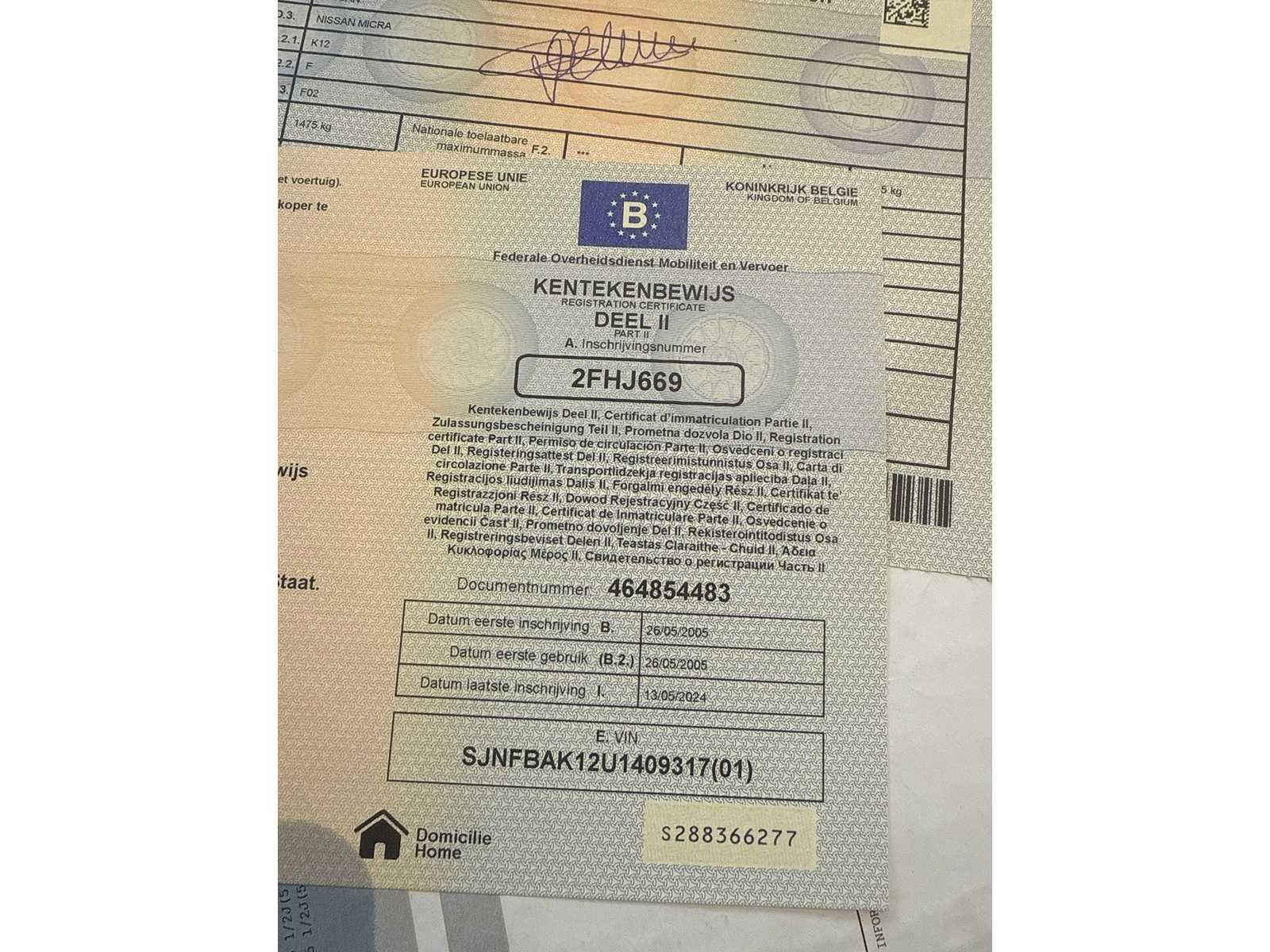 SERVO WERKT NIET START EN DRAAIT EN RIJD WEL Nee Merk: NISSAN Model: MICRA Bouwjaar: 2005 Afgelezen kilometerstand: 148000km Cilinderinhoud: 1300cc Vermogen (kW): 59kW Brandstof: BENZINE Chassisnummer: SJNFBAK12U1409317 Datum eerste toelating: 26-05-2005 Kleur: GRIJS Transmissie: MANUEEL Emissieklasse: 4 Aantal deuren: 5 Aantal sleutels: 1 Nationaliteit documenten: BELGIE Gelijkvormigheidsattest aanwezig: true Carpass: true Start en rijdt: JA Andere boorddocumenten: AANWEZIG startinformatie : JA Inschrijvingsbewijs - deel 1 : AANWEZIG Inschrijvingsbewijs - deel 2: AANWEZIG