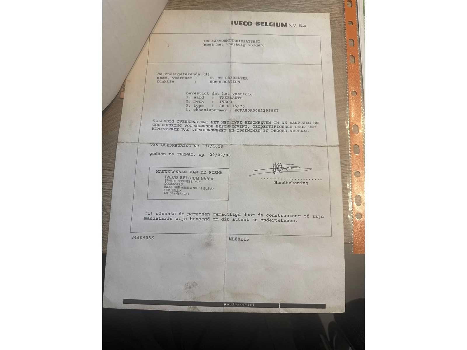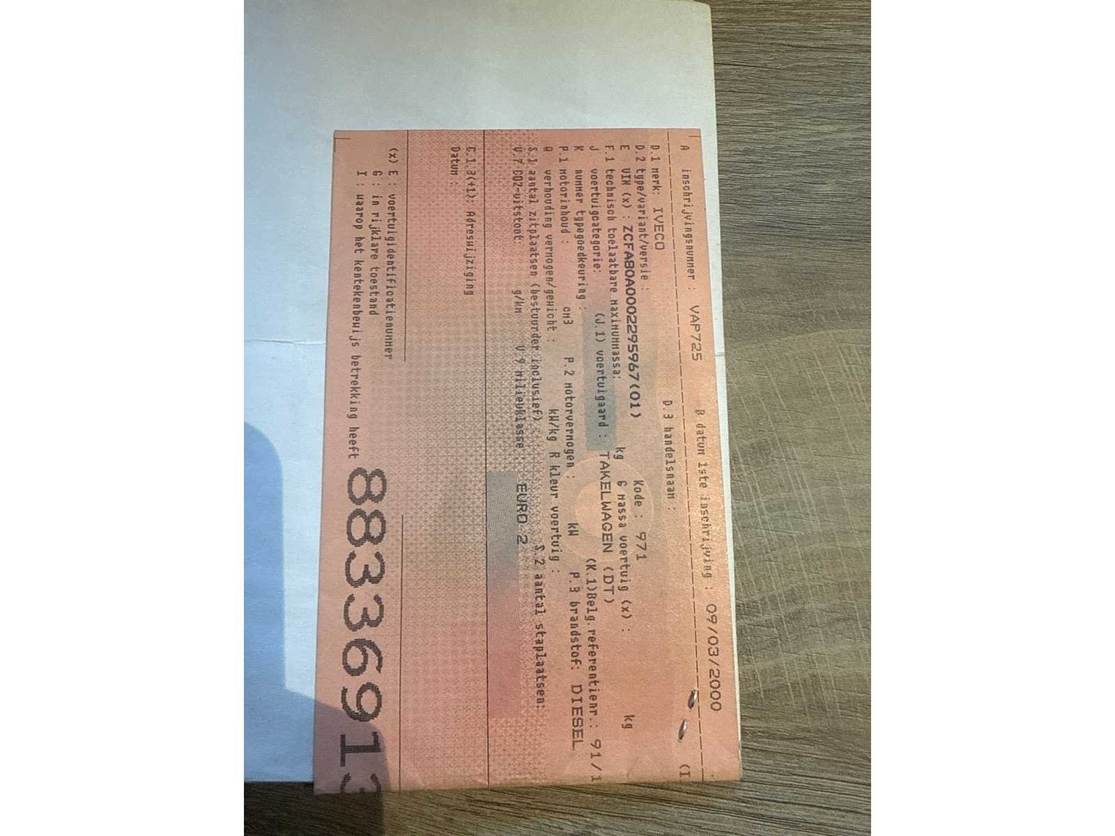 GOED WERKENDE TAKELWAGEN VAN 1 STE EIGENAAR ALLES WERKT GOED PAPIEREN AANWEZIG MET WINCH Nee Merk: IVECO Type: 80E 15/75 Bouwjaar: 2000 Chassisnummer VIN: ZCFA80A0002295967 Kilometerstand bij opname: 187000km Datum eerste toelating: 09-03-200 Type transmissie: Handmatig Fuel Type: Diesel Aantal sleutels: 1 Emissieklasse: 2 Hydraulische laadklep: true Startinformatie: JA Nationaliteit documenten: BELGIE Kentekenpapieren compleet?: true Aantal zitplaatsen: 3