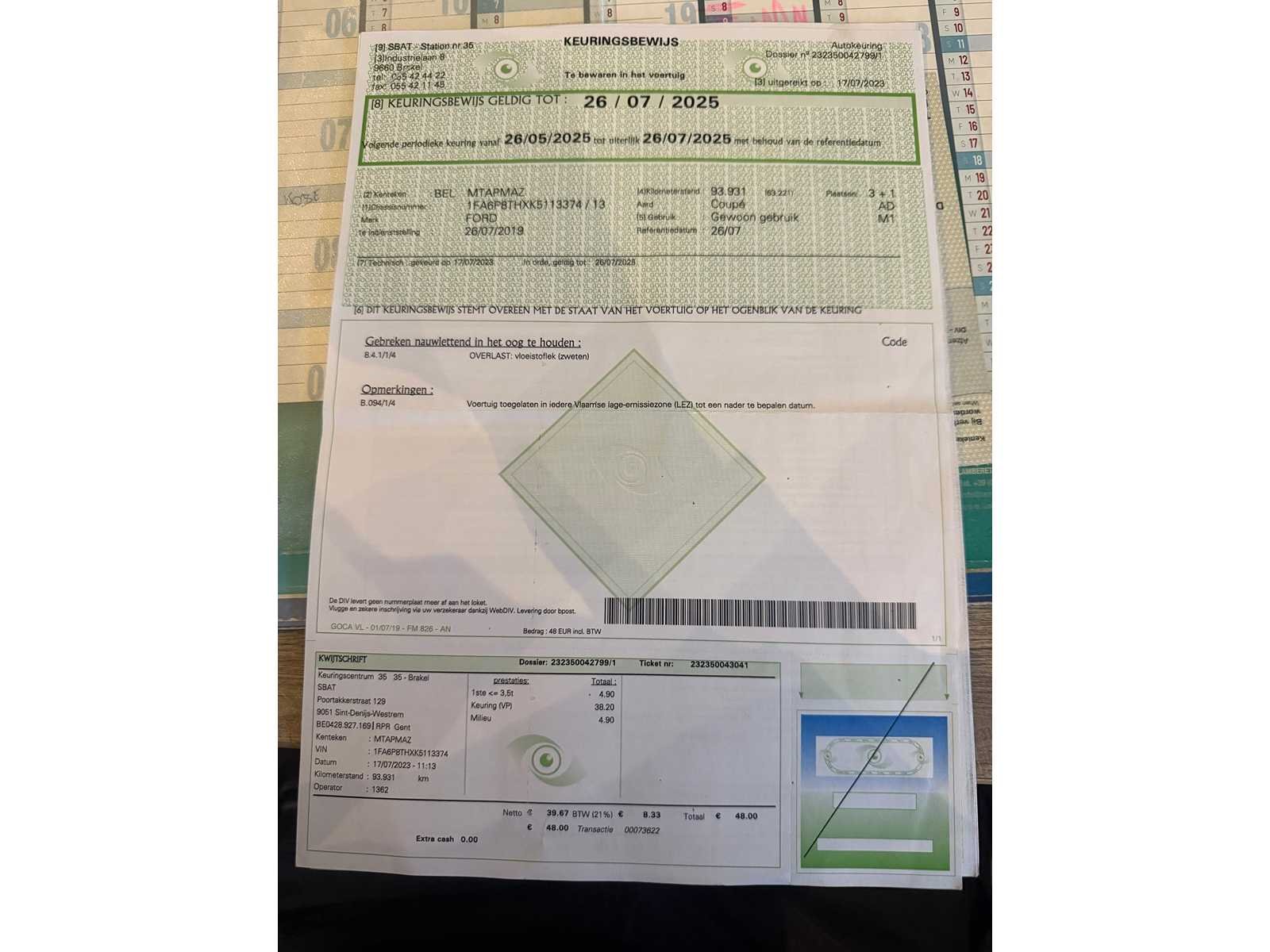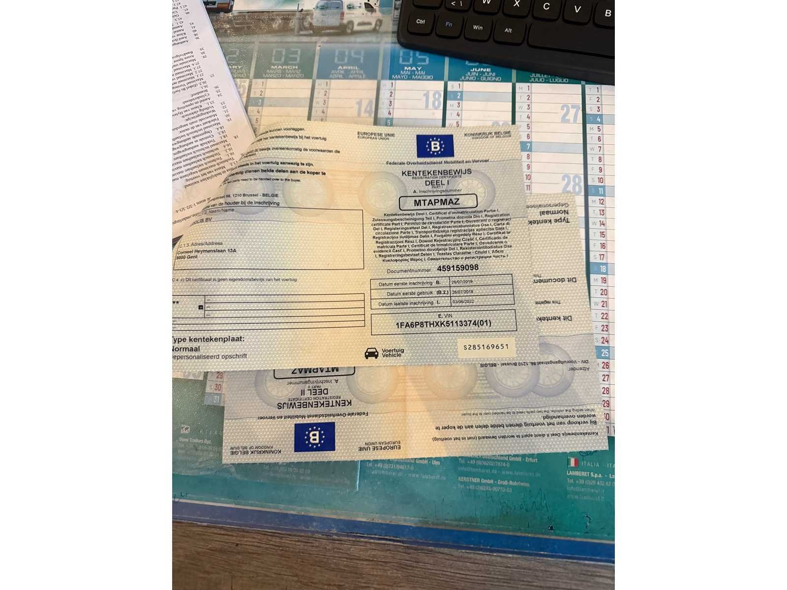 GOEDE STAAT START EN RIJD PERFECT BOORDDOCUMENTEN AANWEZIG COMPLEET SPORTUITLAAT MET ATTEST VOOR KEURING MAAKT HEEL MOOI LAWAAI Nee Merk: FORD Model: MUSTANG Bouwjaar: 2019 Afgelezen kilometerstand: 115000km Cilinderinhoud: 2300cc Vermogen (kW): 213kW Brandstof: BENZINE Chassisnummer: 1FA6P8THXK5113374 Datum eerste toelating: 26-07-2019 Aantal zitplaatsen: 4 Kleur: ZWART Transmissie: AUTOMAAT Accessoires - checkbox: SPORTUITLAAT Emissieklasse: 6 Aantal deuren: 3 Aantal sleutels: 1 Nationaliteit documenten: BELGIE Gelijkvormigheidsattest aanwezig: true Carpass: true Keuringsrapport geldig tot: 26-07-2015 Andere boorddocumenten: COMPLEET startinformatie : JA Zichtbare schade: ZIE FOTO Navigatie: true Xenon verlichting: true Leder bekleed: true Inschrijvingsbewijs - deel 1 : AANWEZIG Inschrijvingsbewijs - deel 2: AANWEZIG