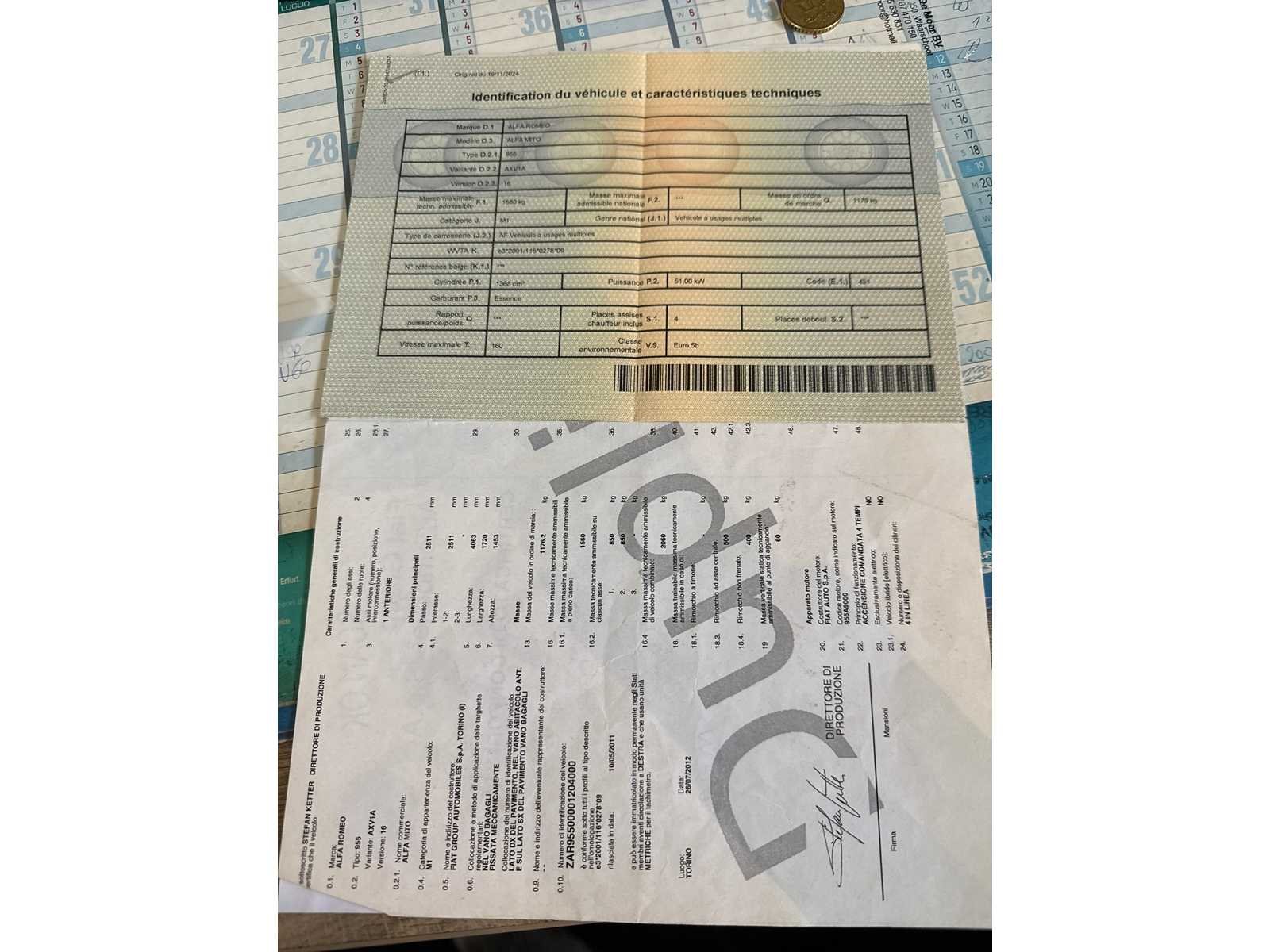 DEEL 1 ATTEST VERLIES AANWEZIG START EN RIJD GOED Nee Merk: ALFA ROMEO Model: MITO Bouwjaar: 2012 Afgelezen kilometerstand: 197000km Cilinderinhoud: 1368cc Vermogen (kW): 51kW Brandstof: BENZINE Chassisnummer: ZAR95500001204000 Datum eerste toelating: 30-11-2012 Kleur: ZWART Transmissie: MANUEEL Emissieklasse: 5 Aantal deuren: 3 Aantal sleutels: 1 Nationaliteit documenten: BELGIE Gelijkvormigheidsattest aanwezig: true Carpass: true Start en rijdt: JA Inschrijvingsbewijs - deel 1 : ATTEST VERLIES Inschrijvingsbewijs - deel 2: AANWEZIG