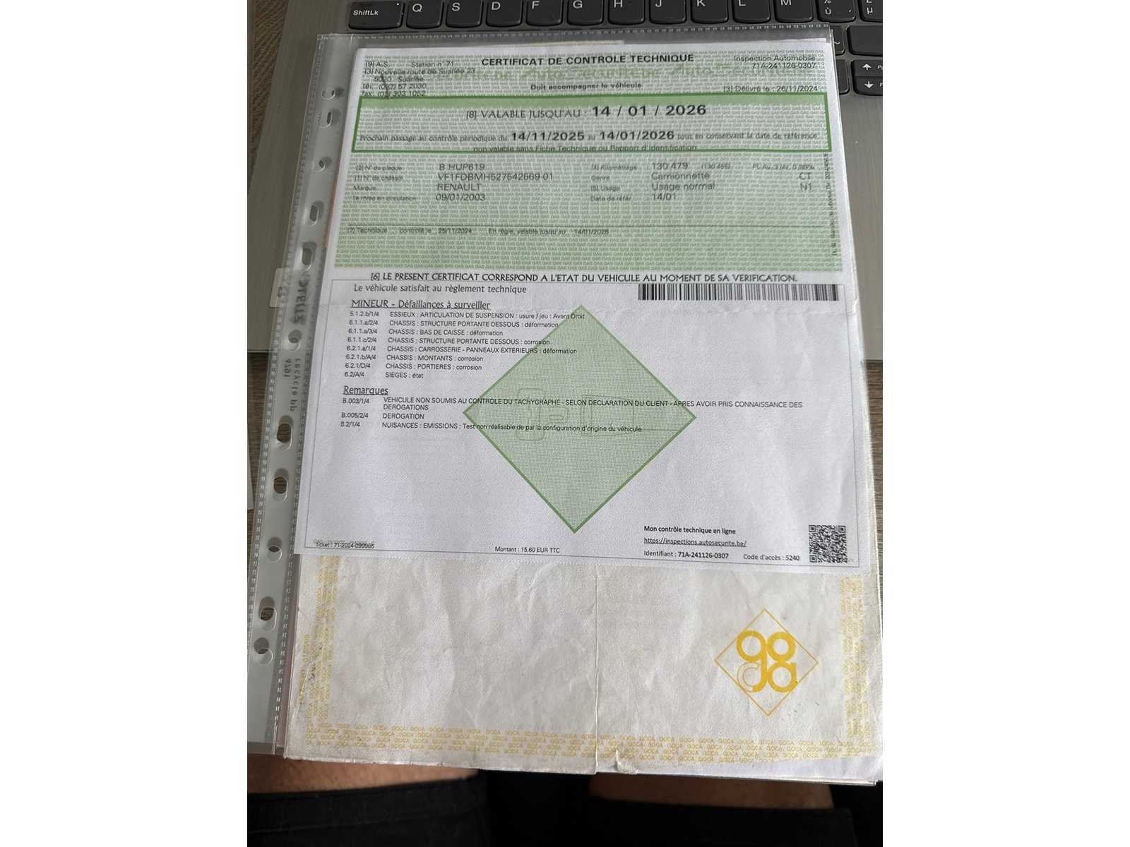 GOEDE STAAT PAPIEREN AANWEZIG Nee Merk: RENAULT Model: MASTER Bouwjaar: 2003 Afgelezen kilometerstand: 133000km Cilinderinhoud: 2500cc Brandstof: DIESEL Chassisnummer: VF1FDBMH527542569 Datum eerste toelating: 09-01-2003 Kleur: WIT Transmissie: MANUEEL Emissieklasse: 3 Aantal sleutels: 2 Nationaliteit documenten: JA Gelijkvormigheidsattest aanwezig: true Carpass: true Start en rijdt: JA Andere boorddocumenten: AANWEZIG startinformatie : JA Inschrijvingsbewijs - deel 1 : AANWEZIG Inschrijvingsbewijs - deel 2: AANWEZIG