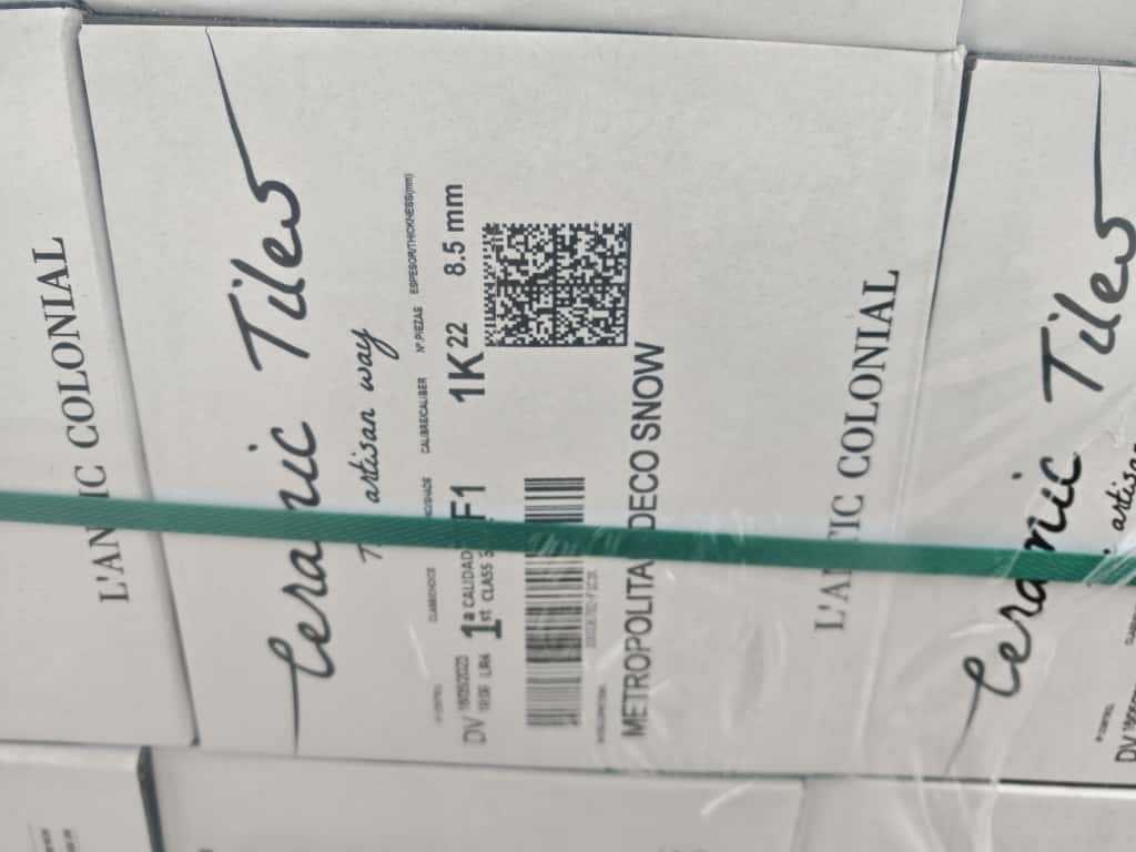 Nee Merk: L'antic Colonial Kleur: Snow Afwerking: Glans Lengte: 20cm Breedte: 20cm Materiaal: Keramiek Dikte: 8.5mm Type: Wandtegel Model: Metropolitan Deco Snow 100336792 Gewicht: 880kg Aantal m² per verpakking: 0.88m² Aantal pakken: 49