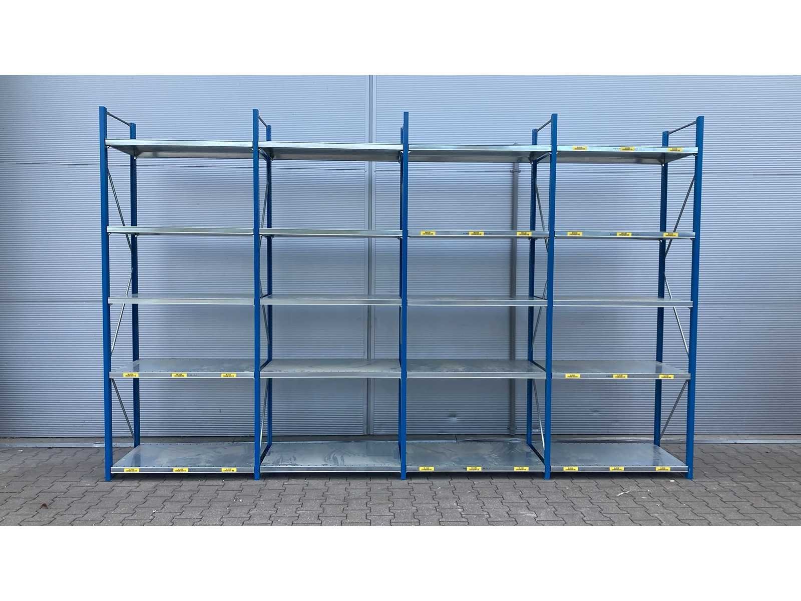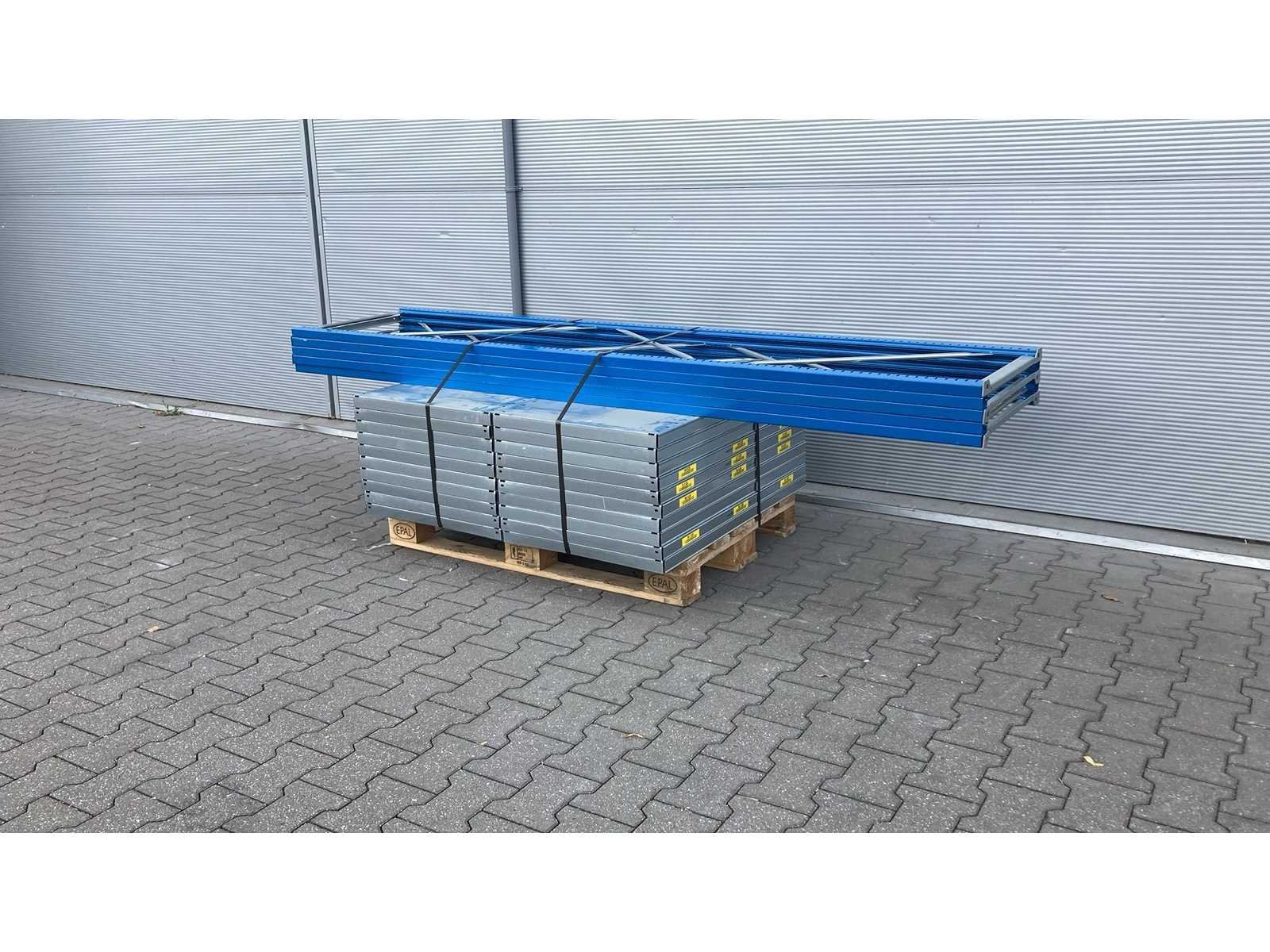 10x staander 2500x600mm; 40x legbord 1200x600mm; gebundeld; gebruikt; No Merk: Nedcon Aantal secties: 9 Sectie afm. b: 1200mm Sectie diepte: 600mm Sectie afm. h: 2500mm Aantal staanders: 10 Aantal legborden: 40 Demontabel: true