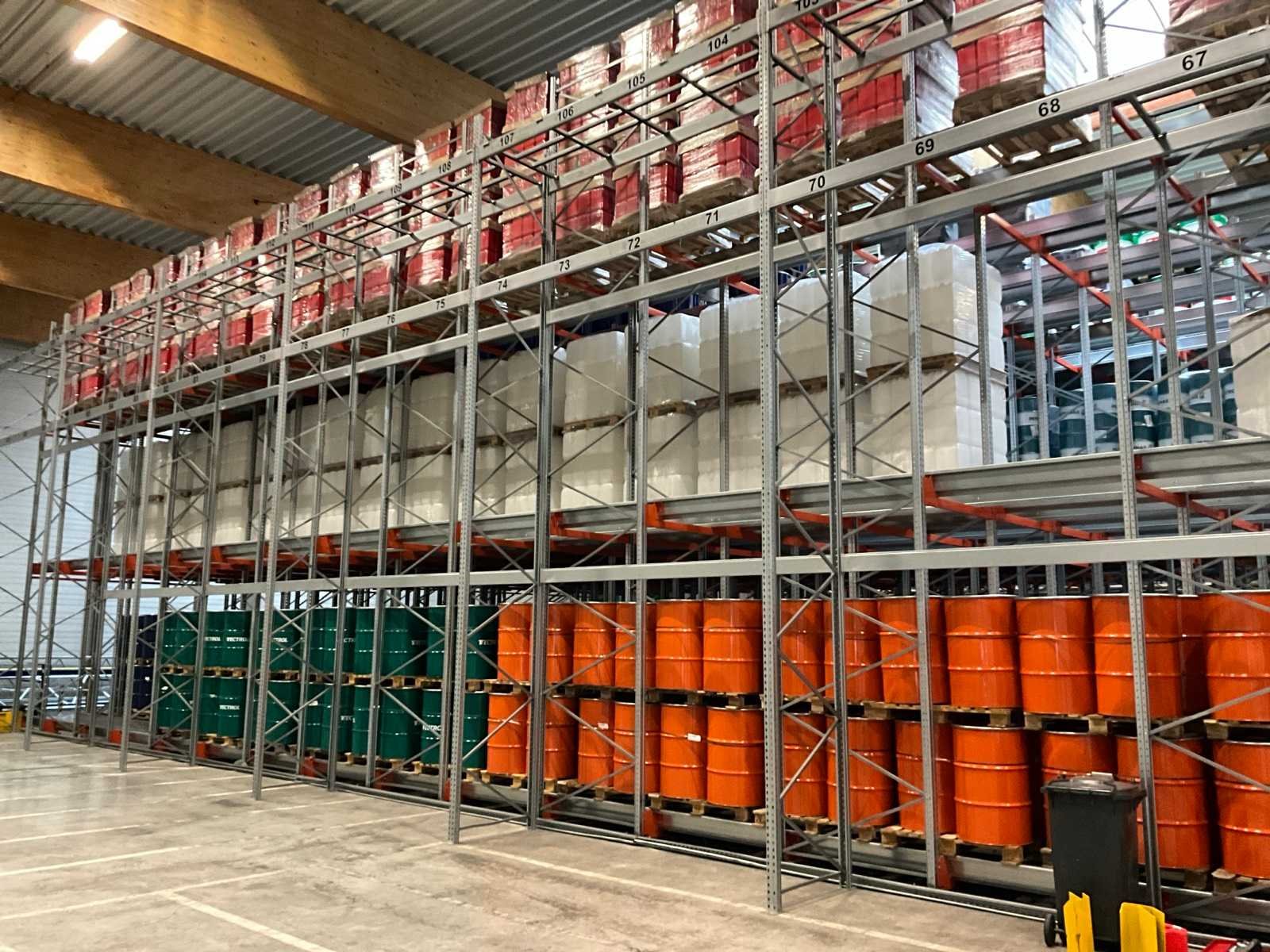 Bestaande uit 12 gangen, 3 verdiepingen. Dwarsstaande buitenste staanders niet inbegrepen. Door klant te demonteren. Zonder enige inhoud. Buitenste staanders hoogte 7500cm. Demontage op afspraak van 05/1- 10/1 Nee Merk: Dexion Type: P90 Bouwjaar: 2016 Aantal staanders: 104 Geconstrueerd: true Lengte: 23000cm Breedte: 17000cm Hoogte: 6500cm