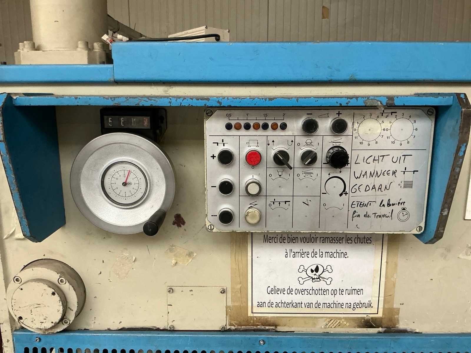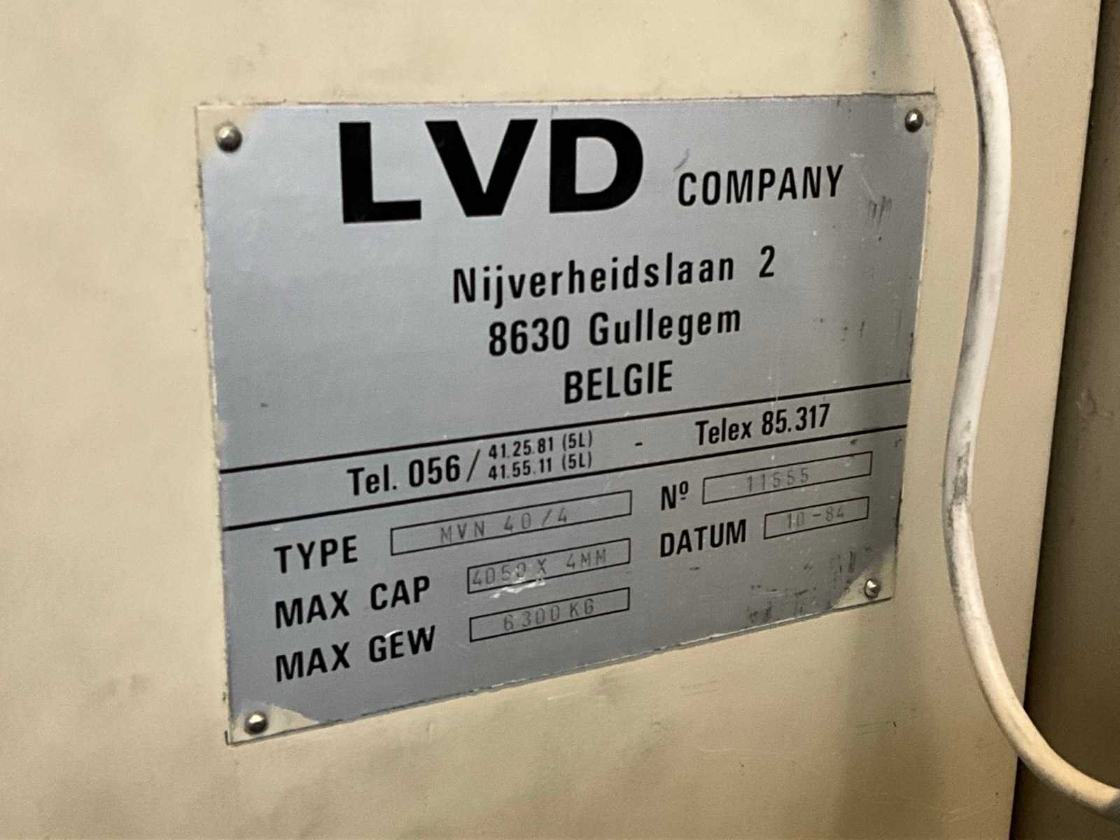 Voorzien van voetbediening Nee Merk: LVD Type: Mvn 40/4 Bouwjaar: 1984 Serienummer: 11555 Snijlengte: 4050mm Max. plaatdikte: 4mm Achteraanslag handbediend: true Max. slagen p/min.: 30 Aansluiting: 400V Machinegewicht: 6300kg Afmeting l: 4750mm Afmeting b: 1950mm Afmeting h: 1950mm