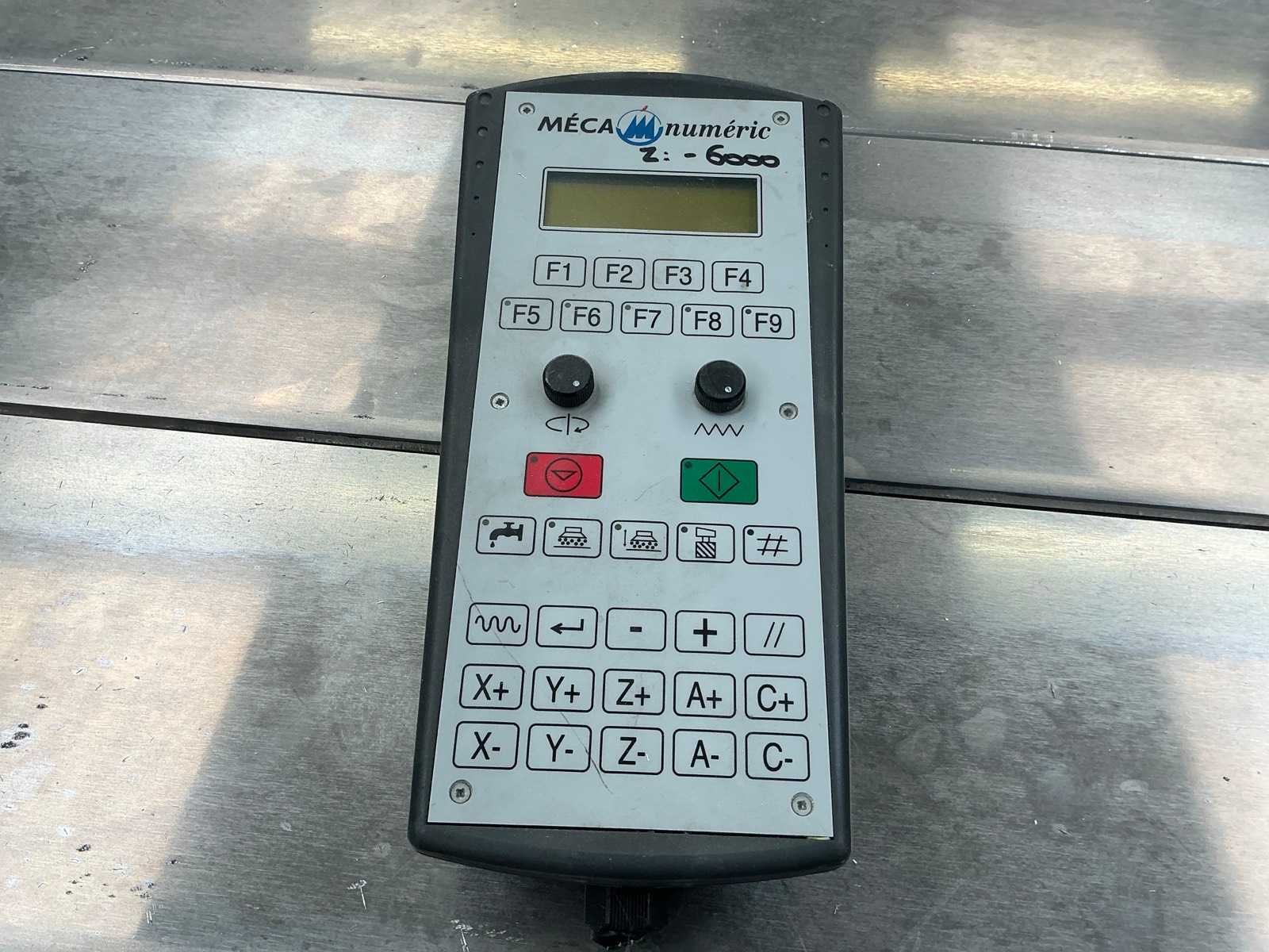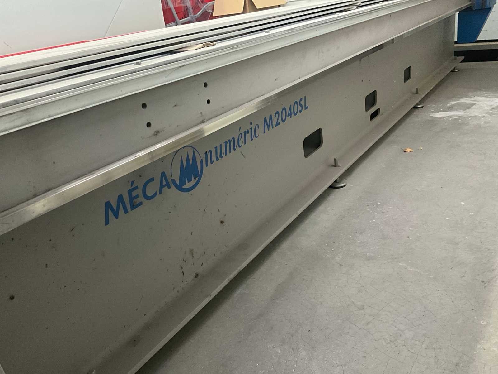 Voorzien van bediening Mécanumeric, afzuiging CFM, vacuumtafel 6 tot 8 zones, Werkbreedte: 2000x4000mm Nee Merk: Mecanuméric Type: M2040SL Bouwjaar: 2001 Serienummer: 1004 Verplaatsing x-as: 2000mm Verplaatsing y-as: 4000mm Snelheid tot n =: 24000rpm Motorvermogen (kW): 22kW Afmeting l: 5200mm Afmeting b: 2300mm