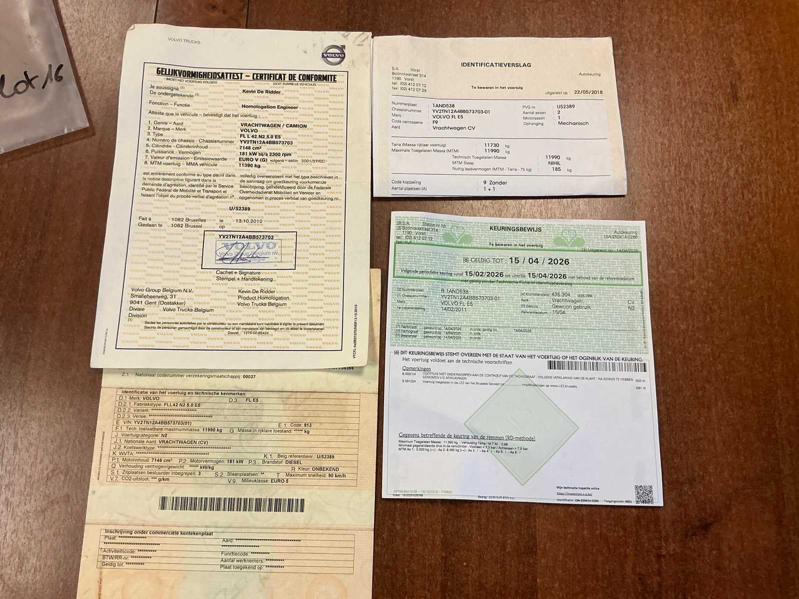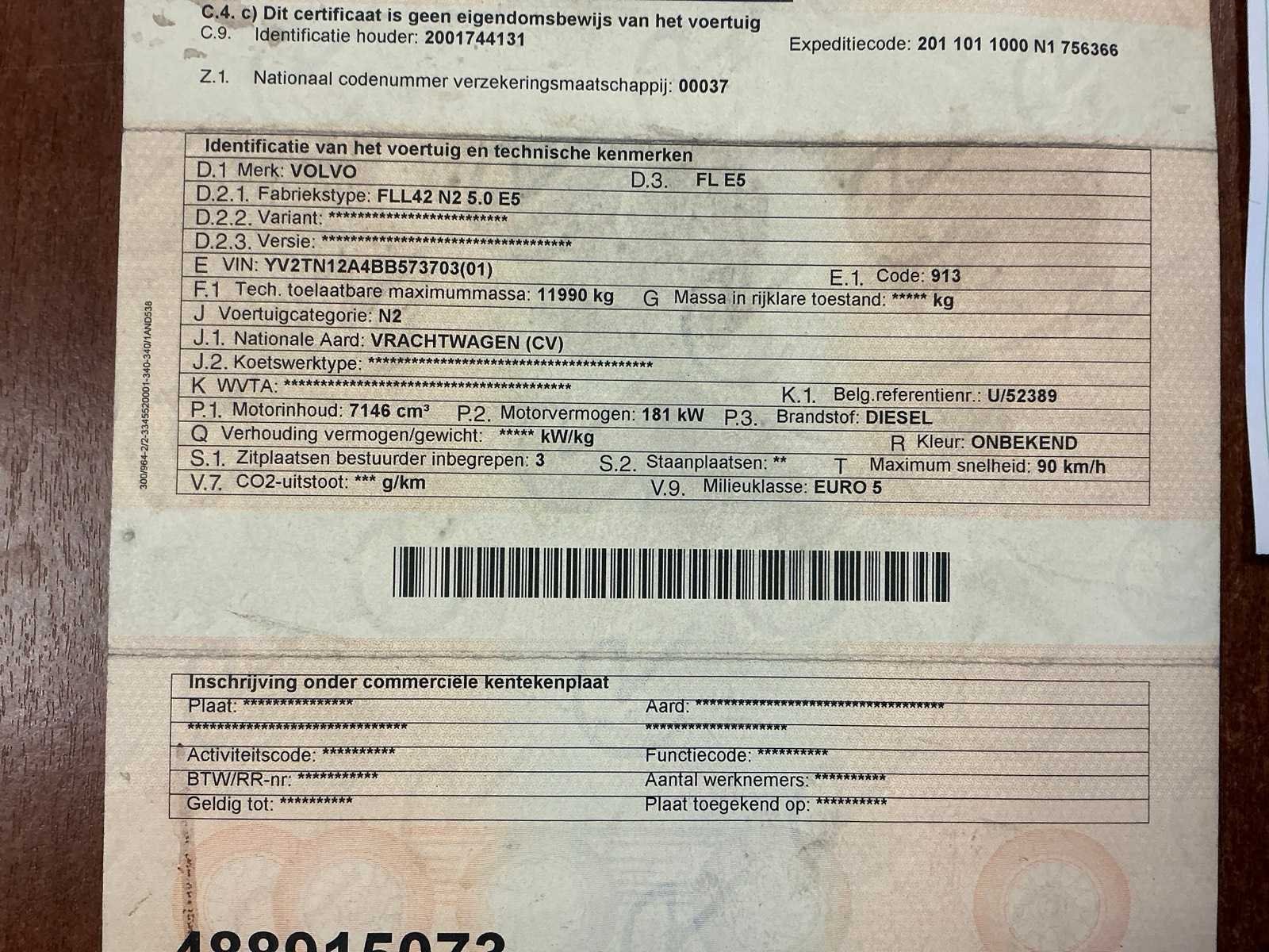 Voorzien van telescopische hoogwerker GSR E180TJ. Cap. Platform 200kg., Bj. 2011, draaiuren: 5945h Aanwezige documenten: kentekenbewijs deel 1 en deel 2, gelijkvormigheidsattest, identificatieverslag en keuringsbewijs. Nee Merk: Volvo Type: FL E5 Bouwjaar: 2011 Chassisnummer VIN: YV2TN12A4BB573703 Cilinderinhoud: 7146cc Kilometerstand bij opname: 448485km Datum eerste toelating: 14/02/2011 Type transmissie: Automatisch Fuel Type: Diesel Emissieklasse: Euro 5 Laadkraan: true