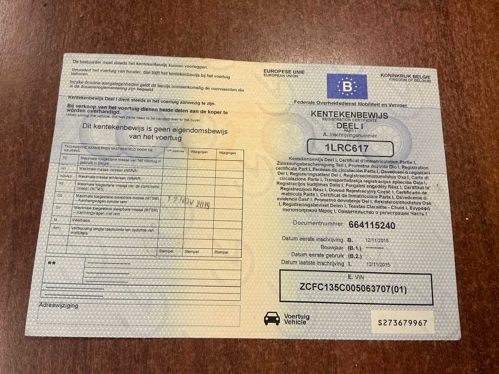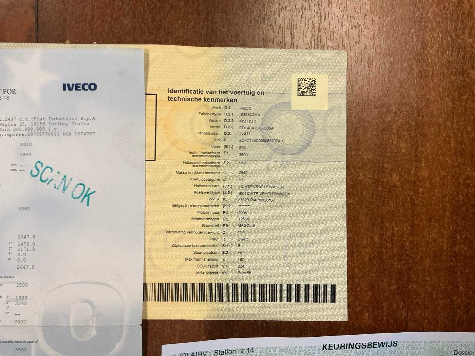 Nee Model: 35S17 Bouwjaar: 2015 Afgelezen kilometerstand: 273431km Cilinderinhoud: 2998cc Vermogen (kW): 125kW Brandstof: diesel Chassisnummer: ZCFC135C005063707 Datum eerste toelating: 12/11/2015 Transmissie: Automaat Emissieklasse: Euro 5b Aantal sleutels: 1 Nationaliteit documenten: BELGIË Start en rijdt: Ja Keuringsrapport geldig tot: 17/11/2025 Technische fiche: true Andere boorddocumenten: ID verslag Vavato voert geen technische keuring uit.: true Inschrijvingsbewijs - deel 1 : Aanwezig Inschrijvingsbewijs - deel 2: Niet aanwezig