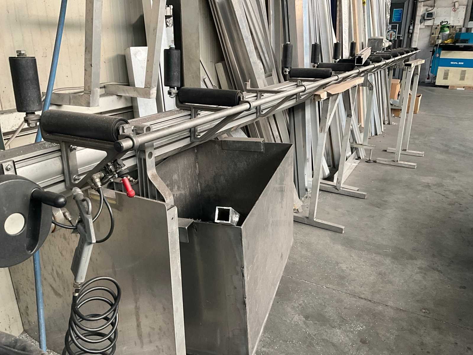Compleet met circa 10,6 meter metalen aan- & afvoer roltafel Fomgroup Nee Merk: Fom Industrie Type: Sika plus Bouwjaar: 2015 Serienummer: D1101106 Snelheid tot n =: 2800rpm Motorvermogen (kW): 2.2kW Aansluiting: 400V Machinegewicht: 170kg
