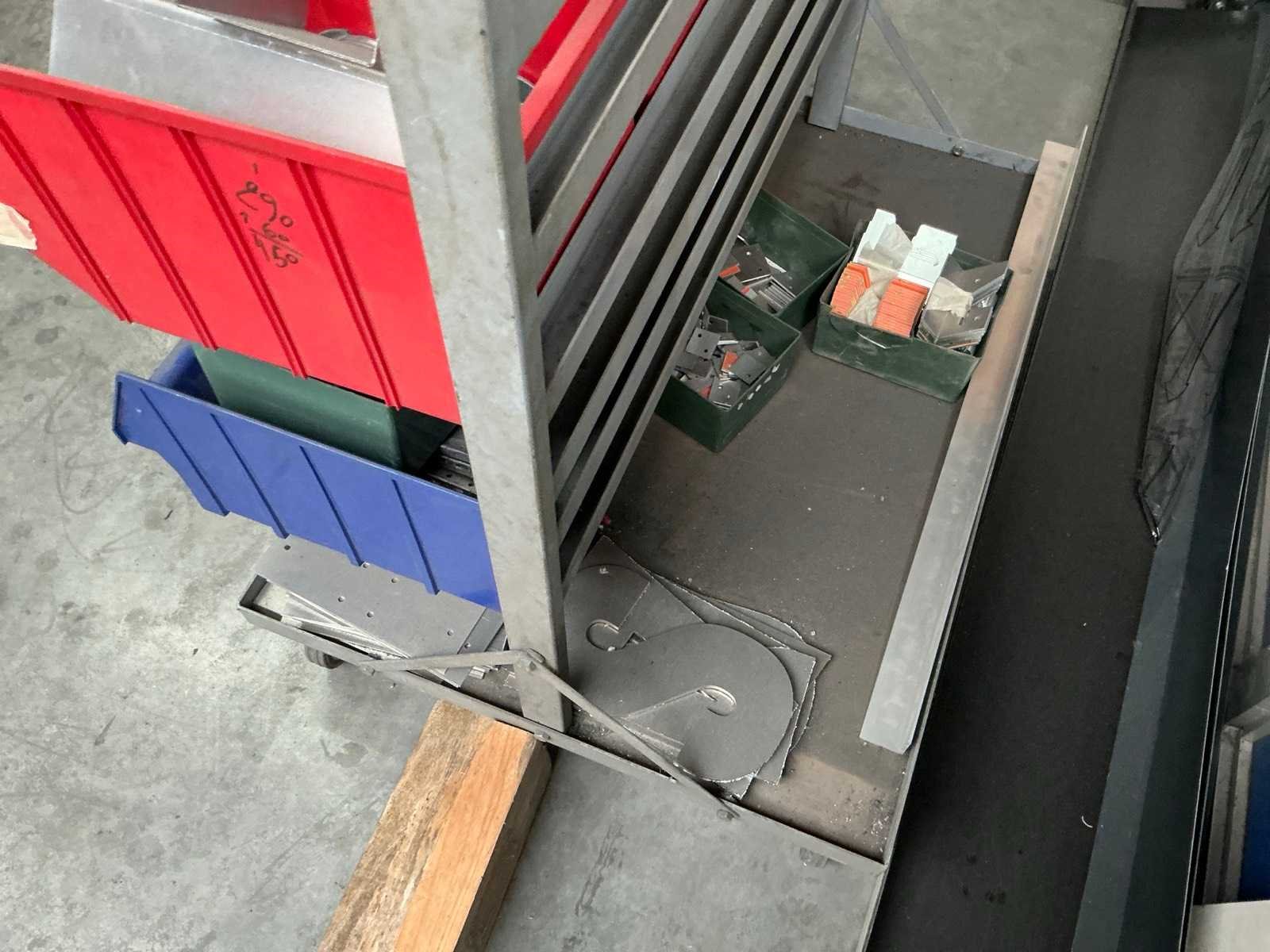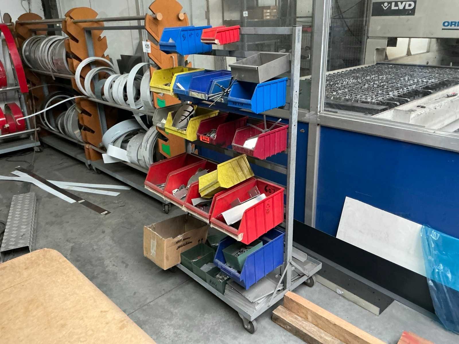 Inhoudende diverse bevestigingsmaterialen waaronder enige bouten, klinknagels en voornamelijk diverse plakketten Nee Type: Verrijdbaar Totale afmeting L: 63cm Totale afmeting Breedte: 90cm Totale afmeting Hoogte: 155cm