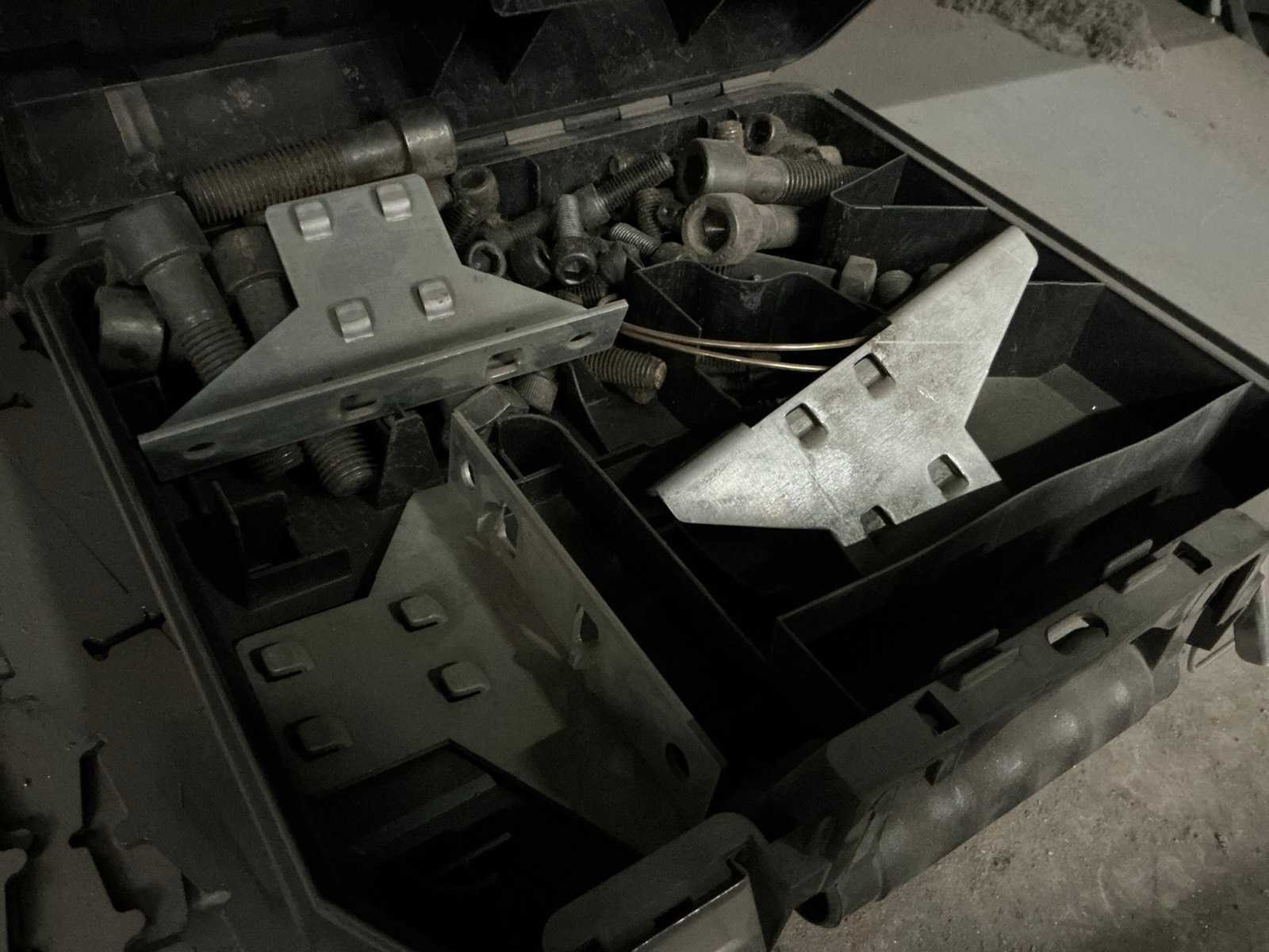 Voorzien van 6 leggers, met inhoud zijnde enige schuurbanden, rivetten, elektriciteitskabel, roller kit RM13 en enige bouten Nee Merk: Overtoom Diepte: 60cm Lengte: 92cm Breedte: 196