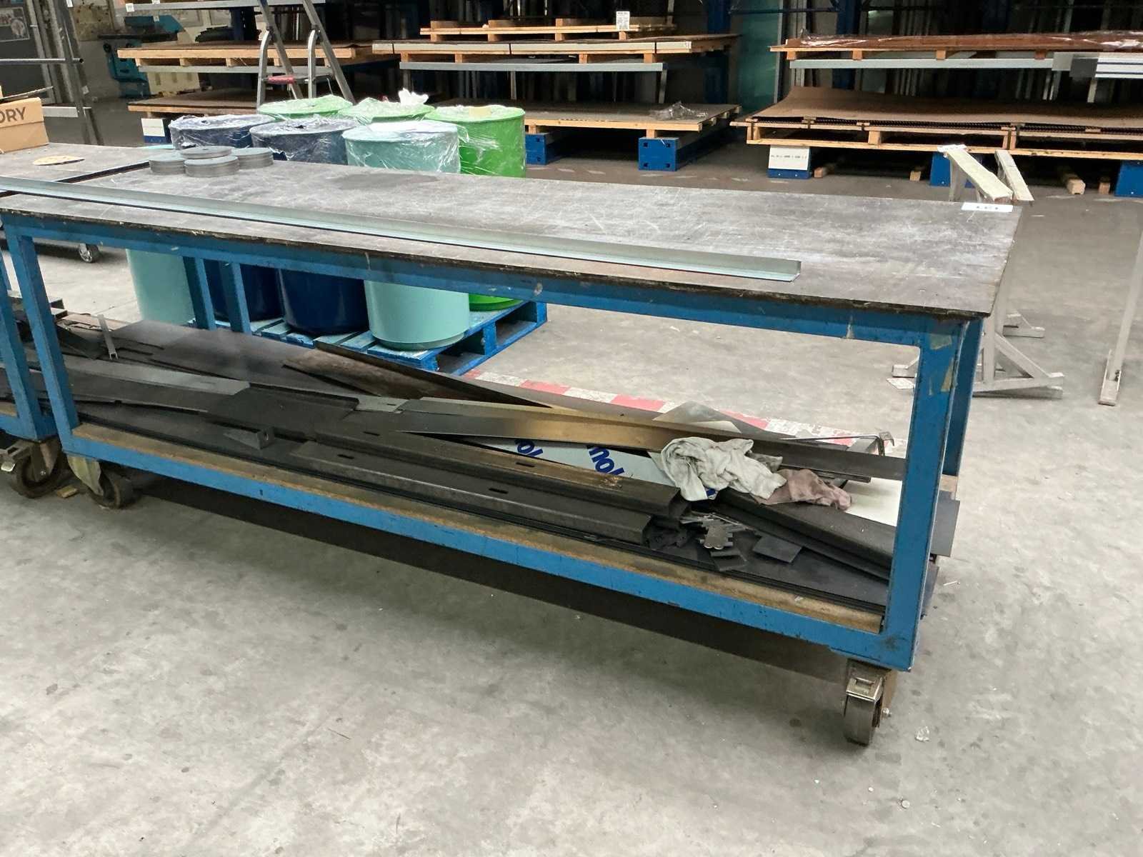 Waaronder afmeting: 250x85x92cm en 126x85x92cm, inhoudende diverse reeds aangesneden metalen profielen Nee