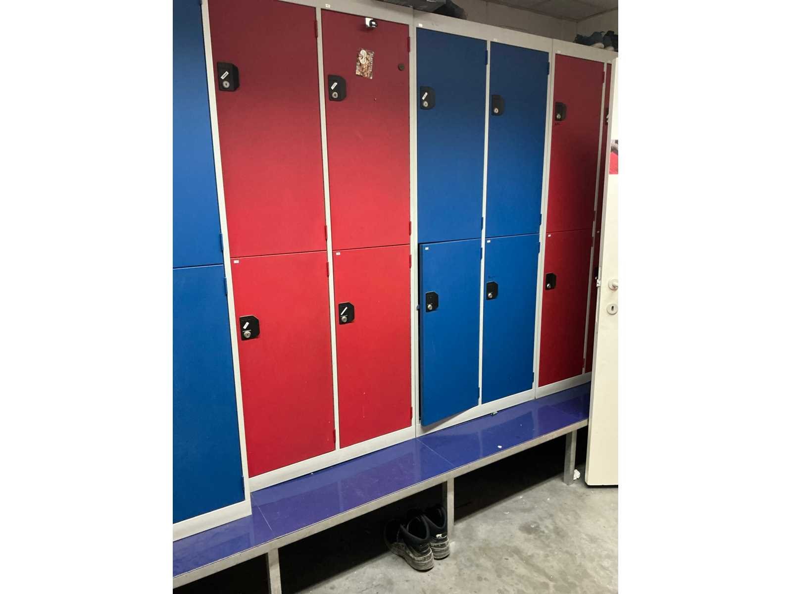 Voorzien van 2 aluminium kleedkamerbanken, sommigen slotvast Nee Type: 4-deurs Lengte: 50cm Breedte: 78cm Hoogte: 180cm