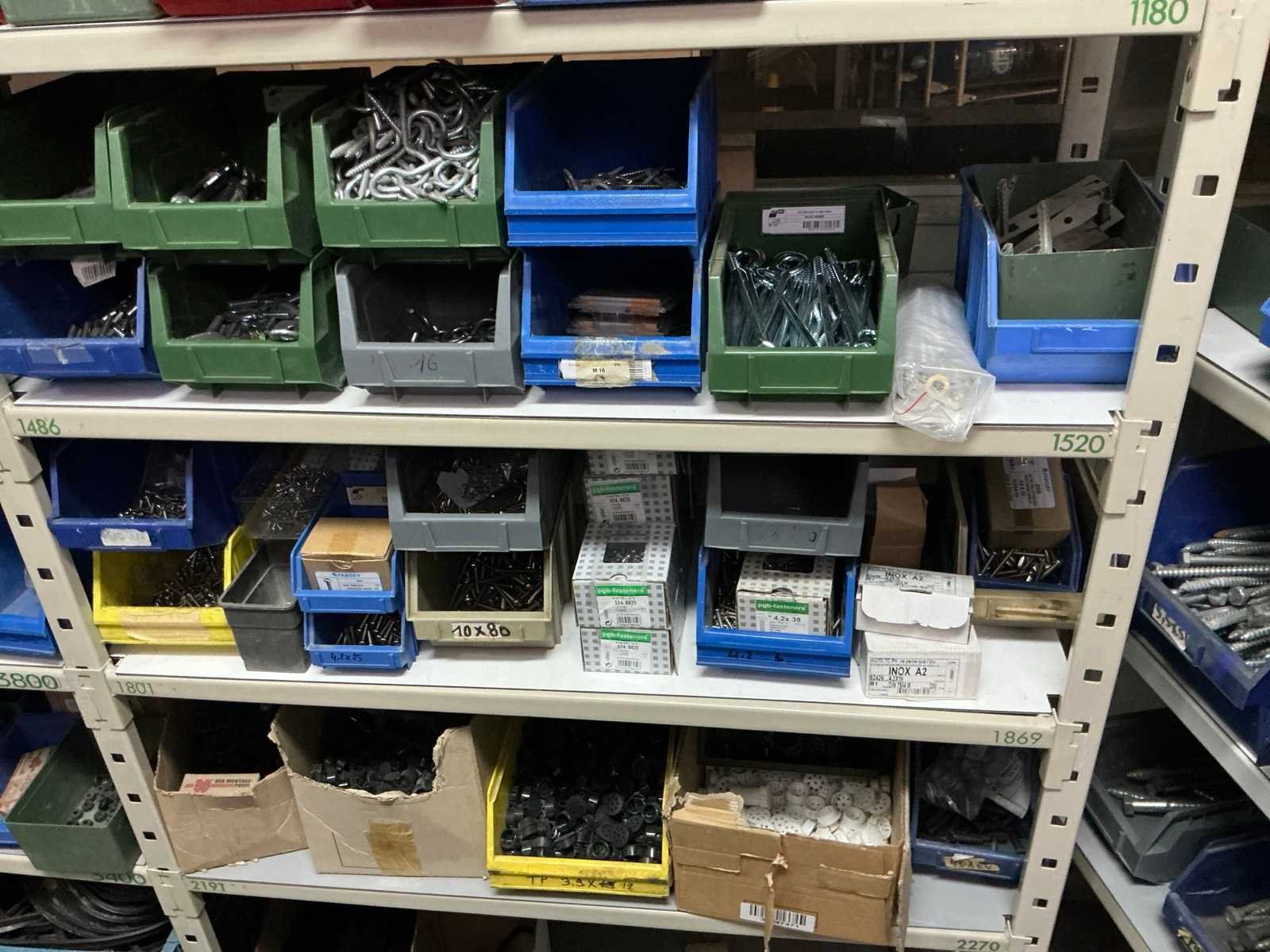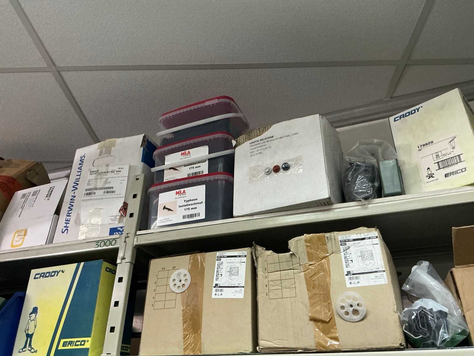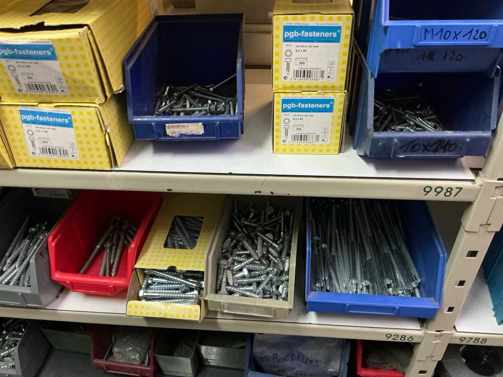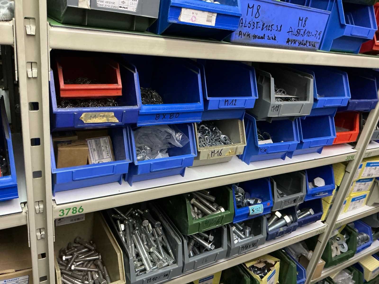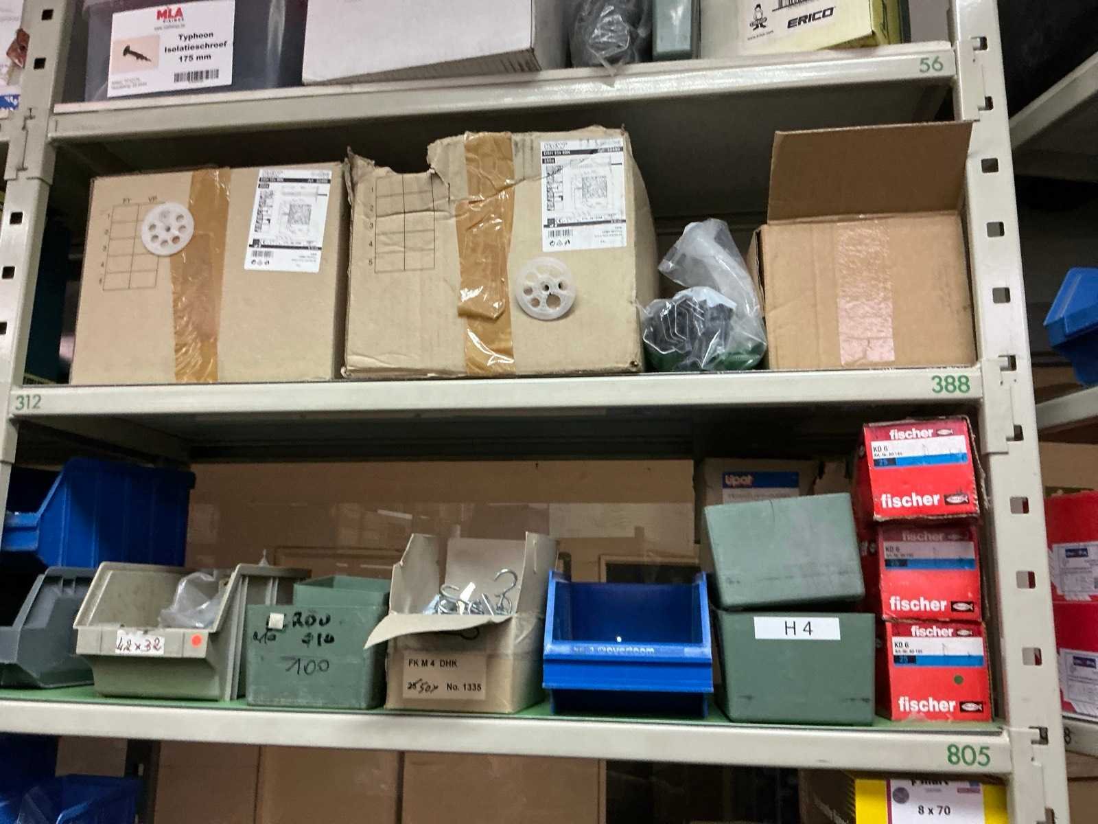 SPAX, INTERIXINGS, PGB, SOUDAL, GUNNEBO, SMART, FISCHER, SPIT, HILTI, MAXXFAST, FABORY bouten, moeren, rondellen, klemmen, oogschroeven en bouten, schroeven, hersluitingen, houtschroeven, isolatieschroeven, zelftapschroeven, pluggen, betonankers, staaldraad, afstandhouders, blindklinknagels, diverse siliconen en sealers, en kunststof afdekkapjes, in metalen magazijnstelling, betonboren, slijpschrijven,.., zonder stelling, compleet met dossierkast Nee Type: Grote