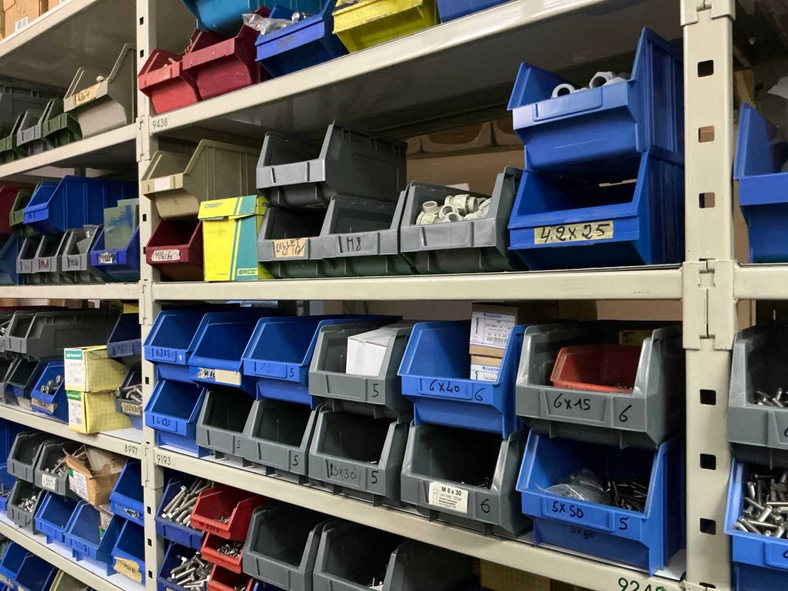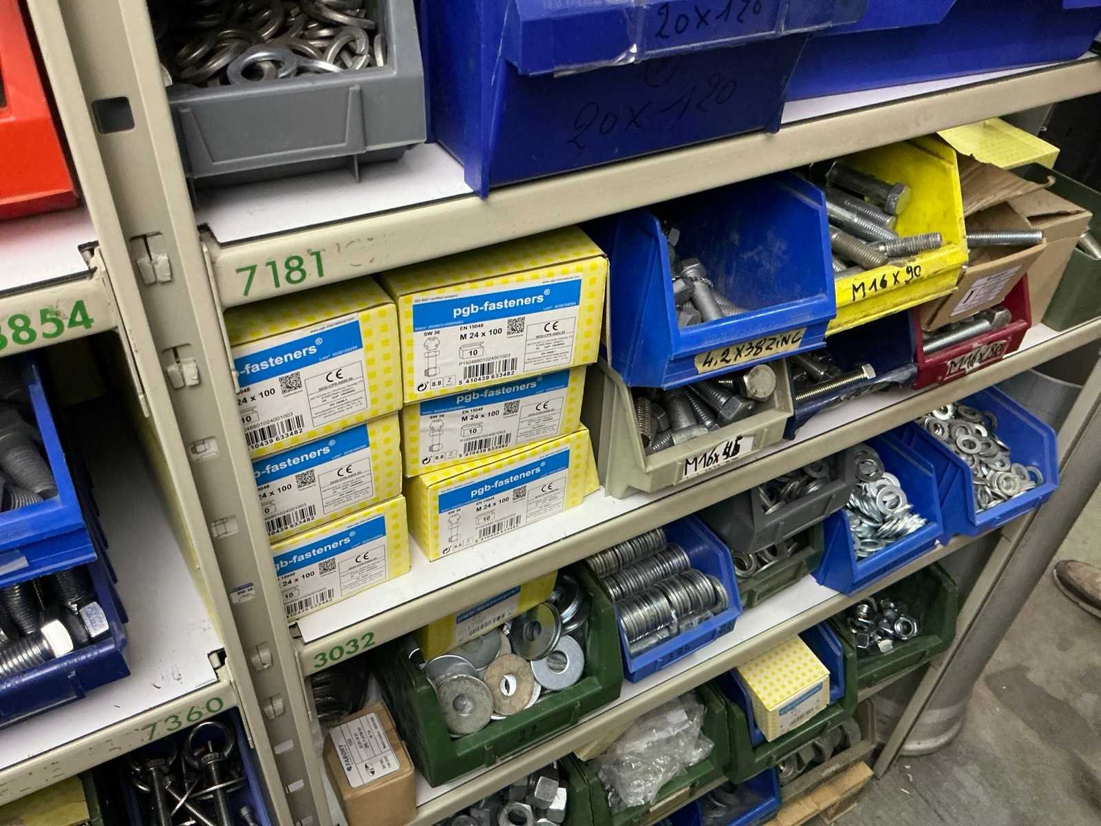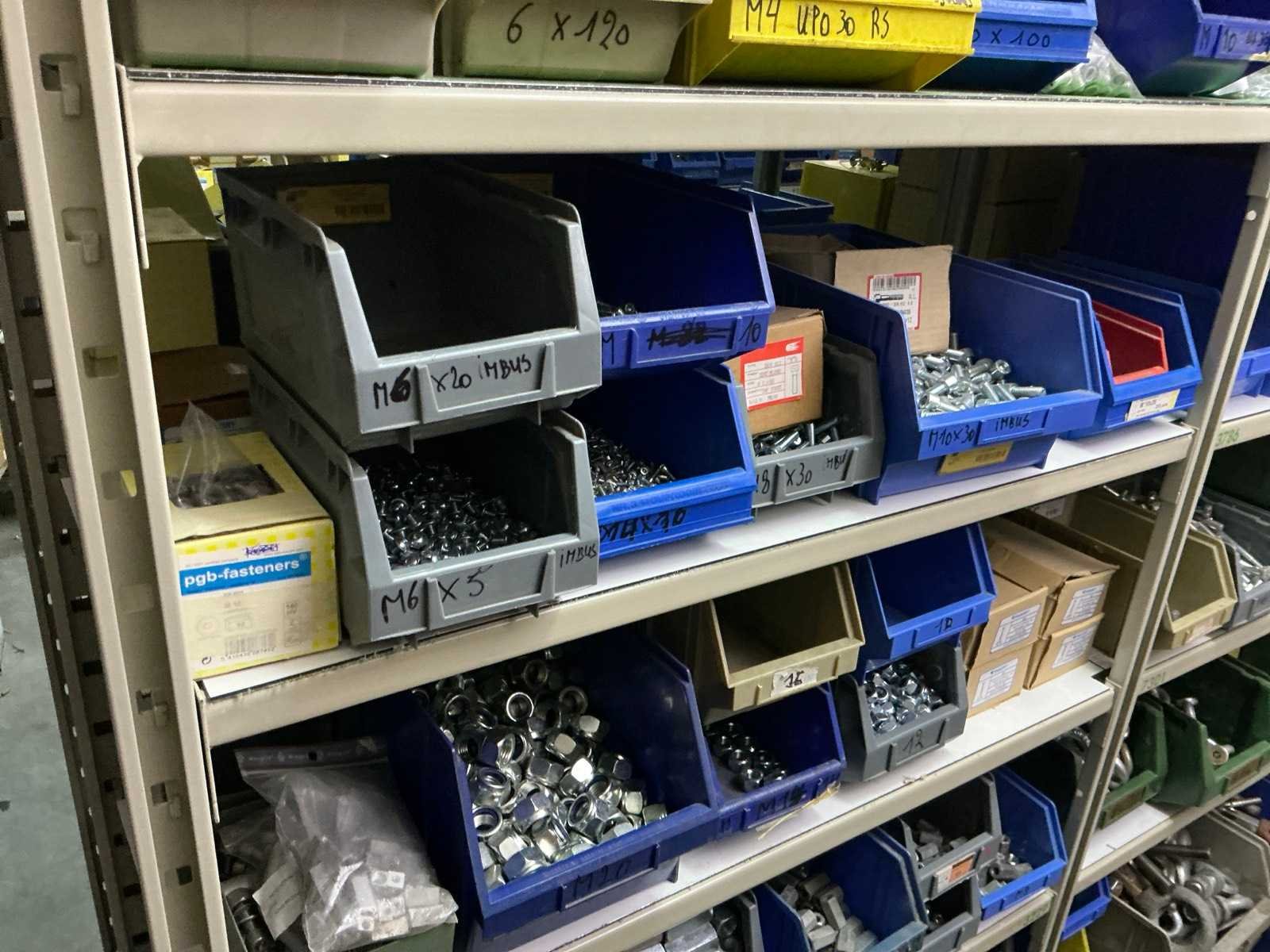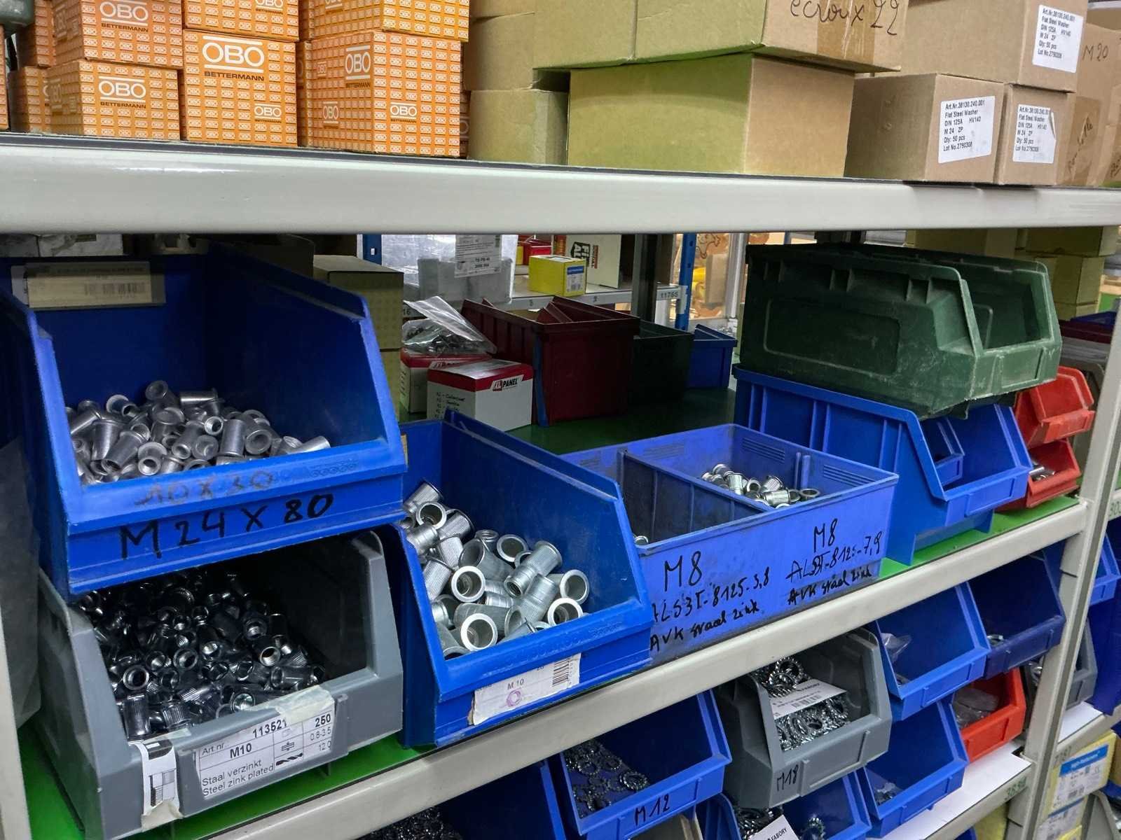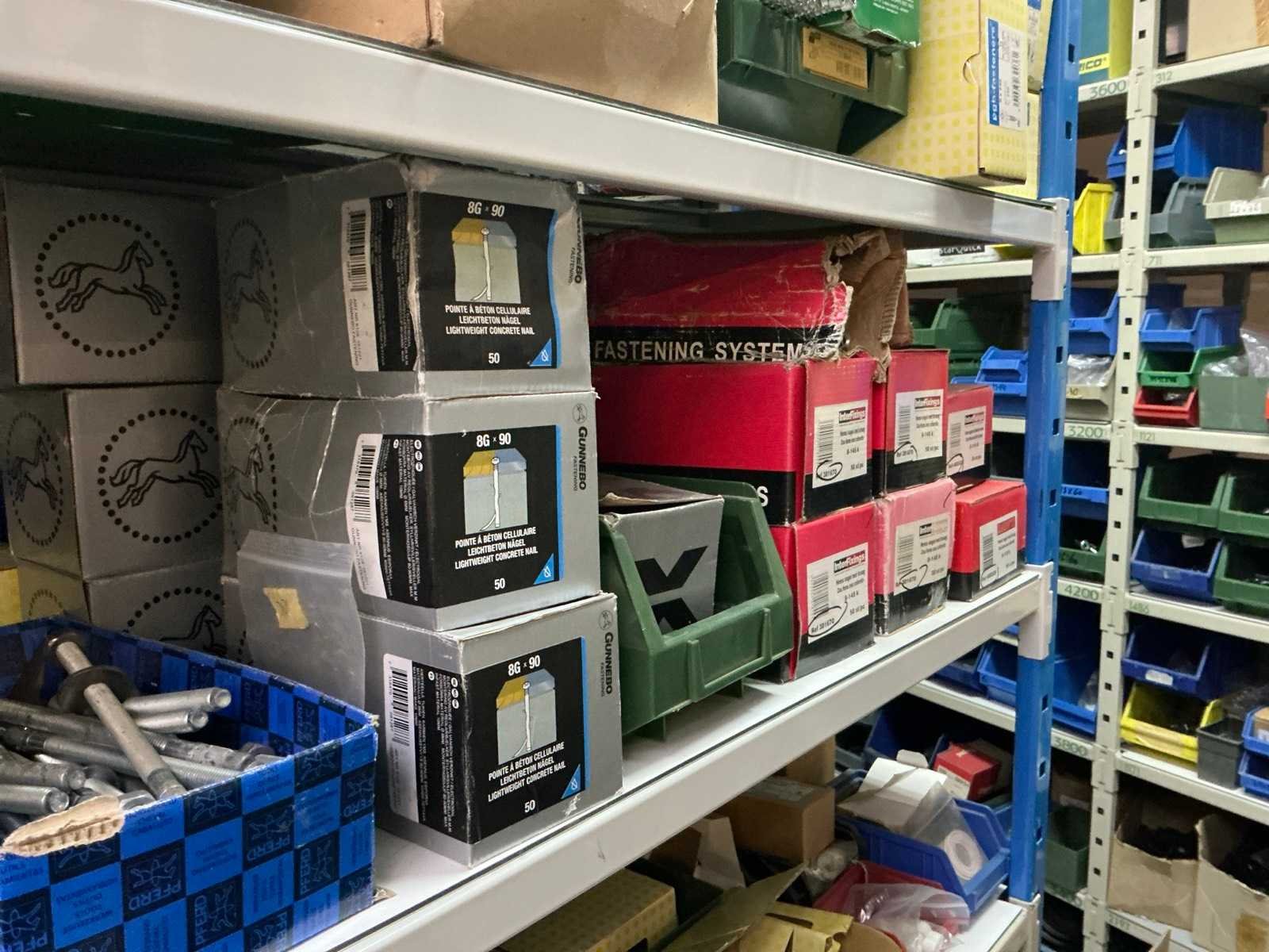 SPAX, INTERIXINGS, PGB, SOUDAL, GUNNEBO, SMART, FISCHER, SPIT, HILTI, MAXXFAST, FABORY bouten, moeren, rondellen, klemmen, oogschroeven en bouten, schroeven, hersluitingen, houtschroeven, isolatieschroeven, zelftapschroeven, pluggen, betonankers, staaldraad, afstandhouders, blindklinknagels, diverse siliconen en sealers, en kunststof afdekkapjes, in metalen magazijnstelling, betonboren, slijpschrijven,.., zonder stelling, compleet met dossierkast Nee Type: Grote