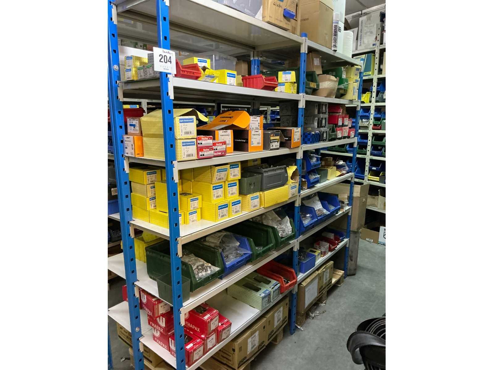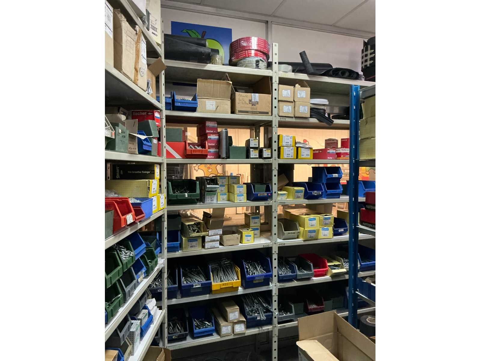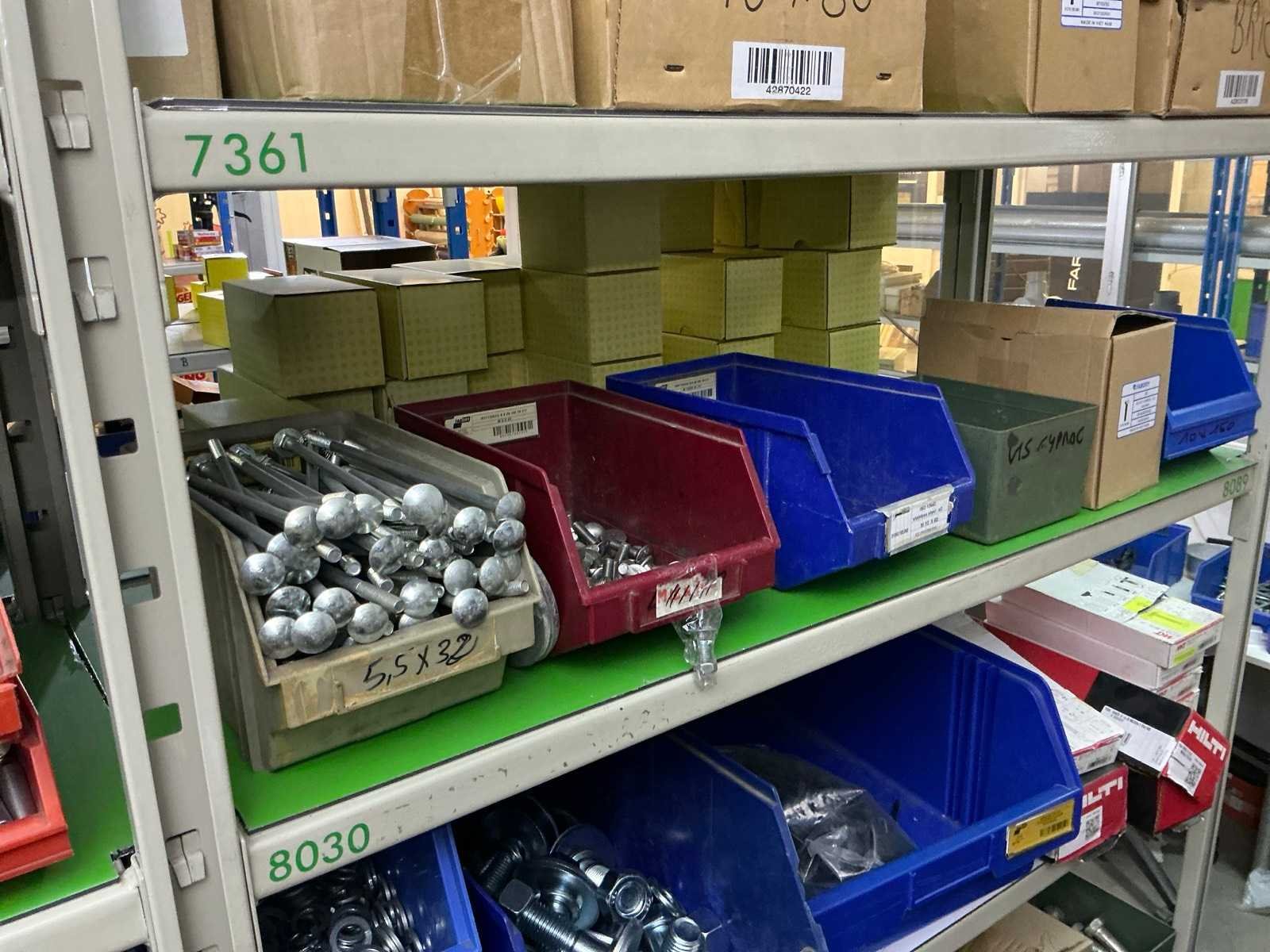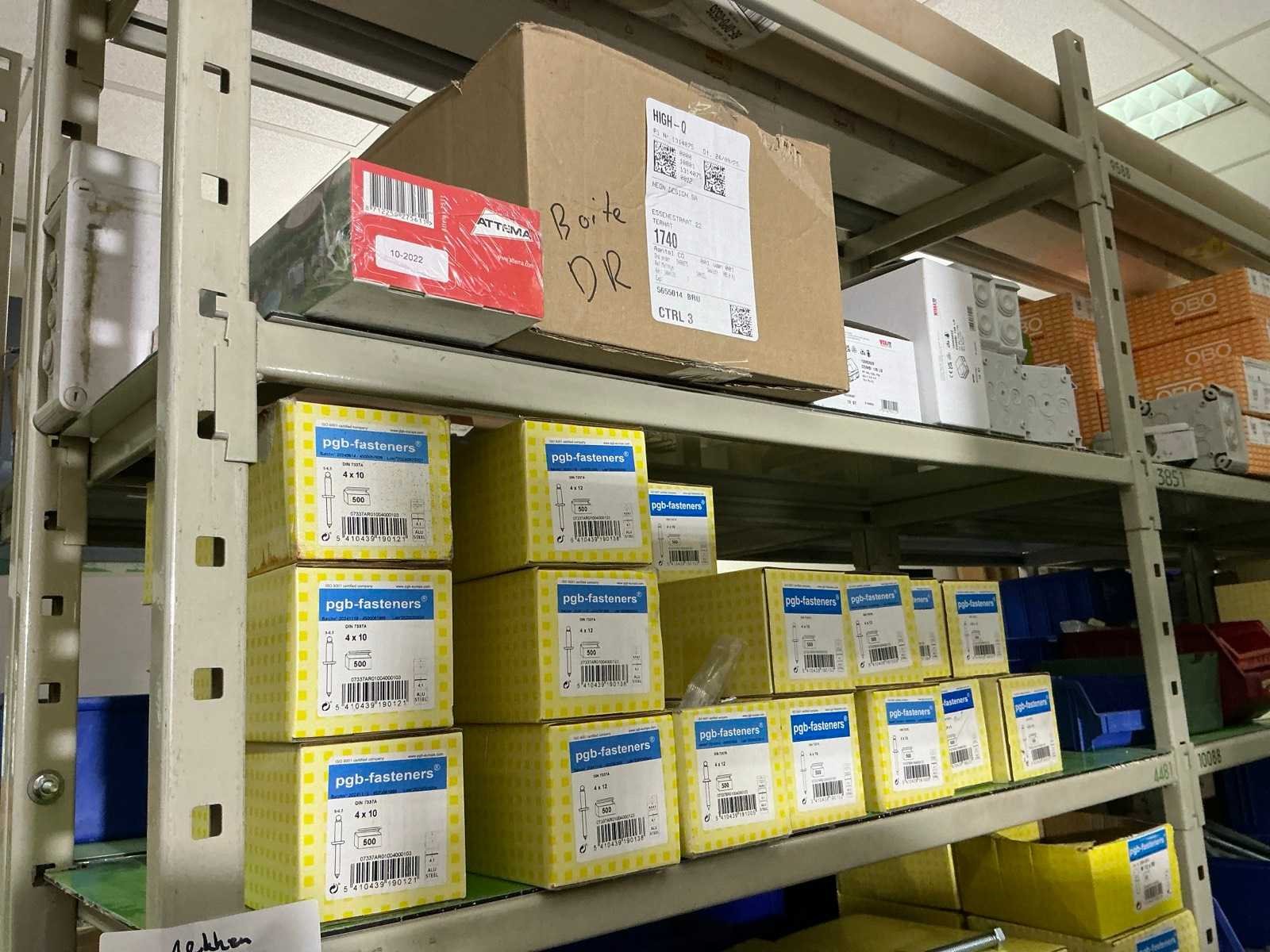 SPAX, INTERIXINGS, PGB, SOUDAL, GUNNEBO, SMART, FISCHER, SPIT, HILTI, MAXXFAST, FABORY bouten, moeren, rondellen, klemmen, oogschroeven en bouten, schroeven, hersluitingen, houtschroeven, isolatieschroeven, zelftapschroeven, pluggen, betonankers, staaldraad, afstandhouders, blindklinknagels, diverse siliconen en sealers, en kunststof afdekkapjes, in metalen magazijnstelling, betonboren, slijpschrijven,.., zonder stelling, compleet met dossierkast Nee Type: Grote