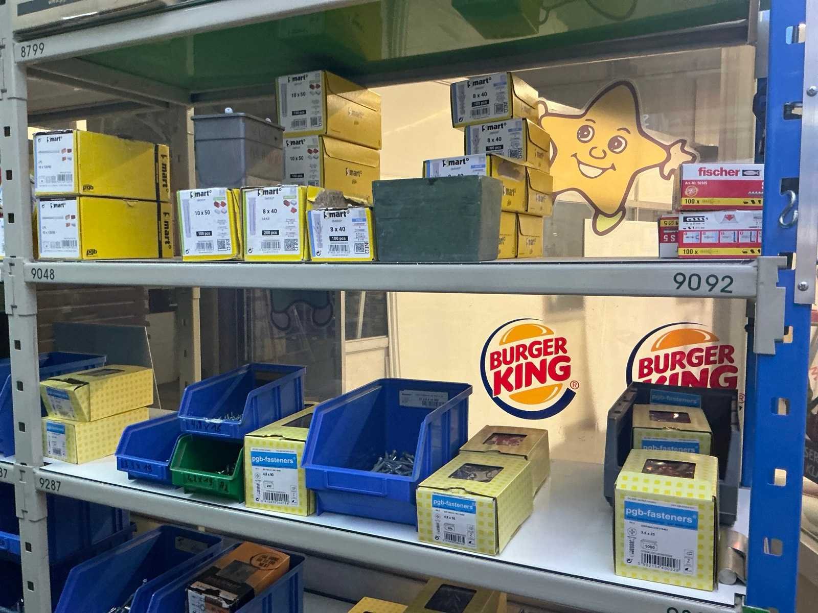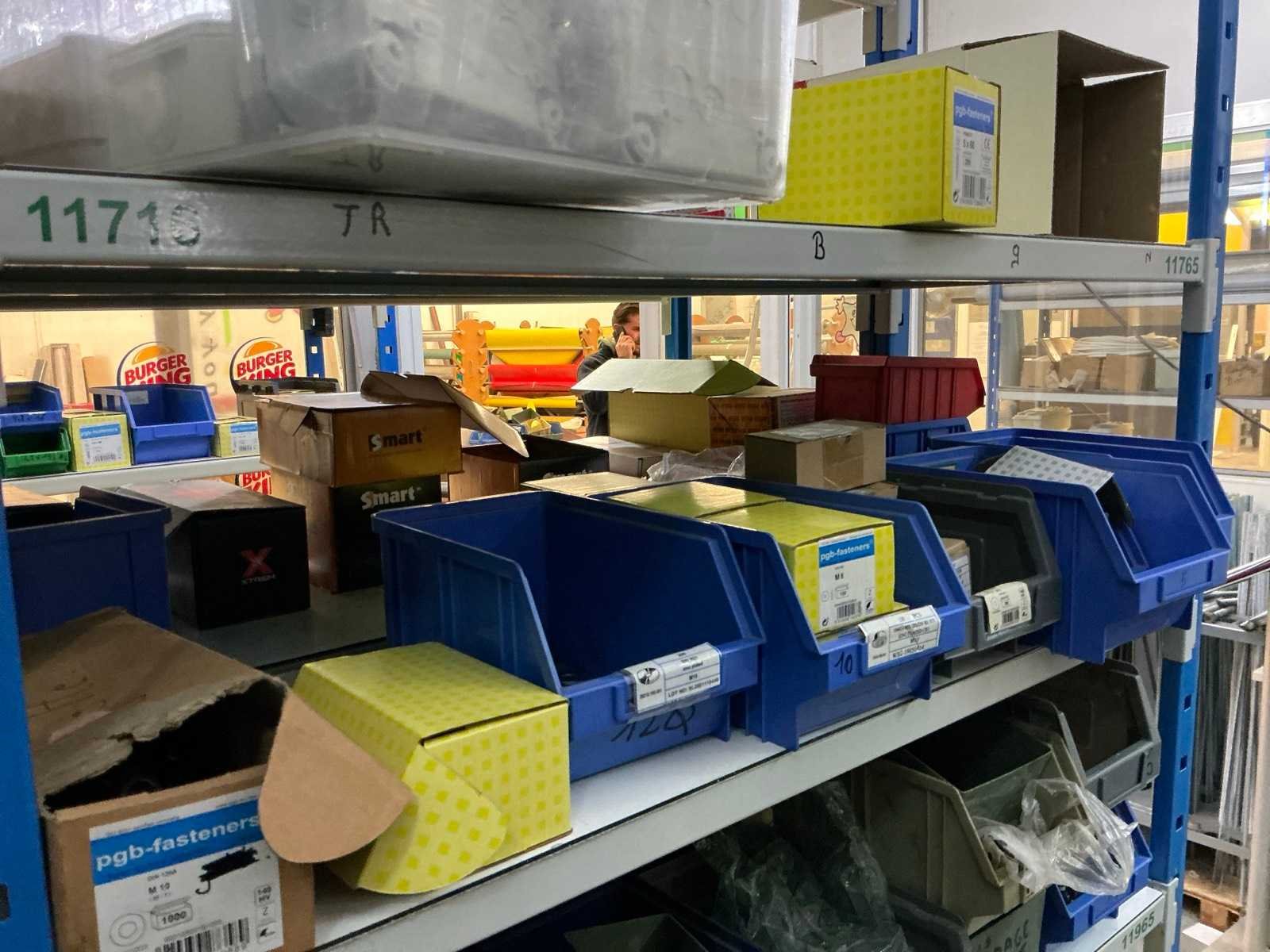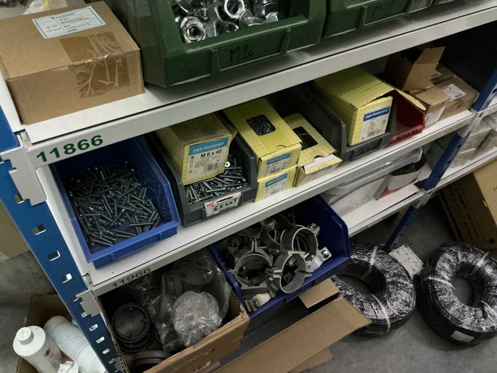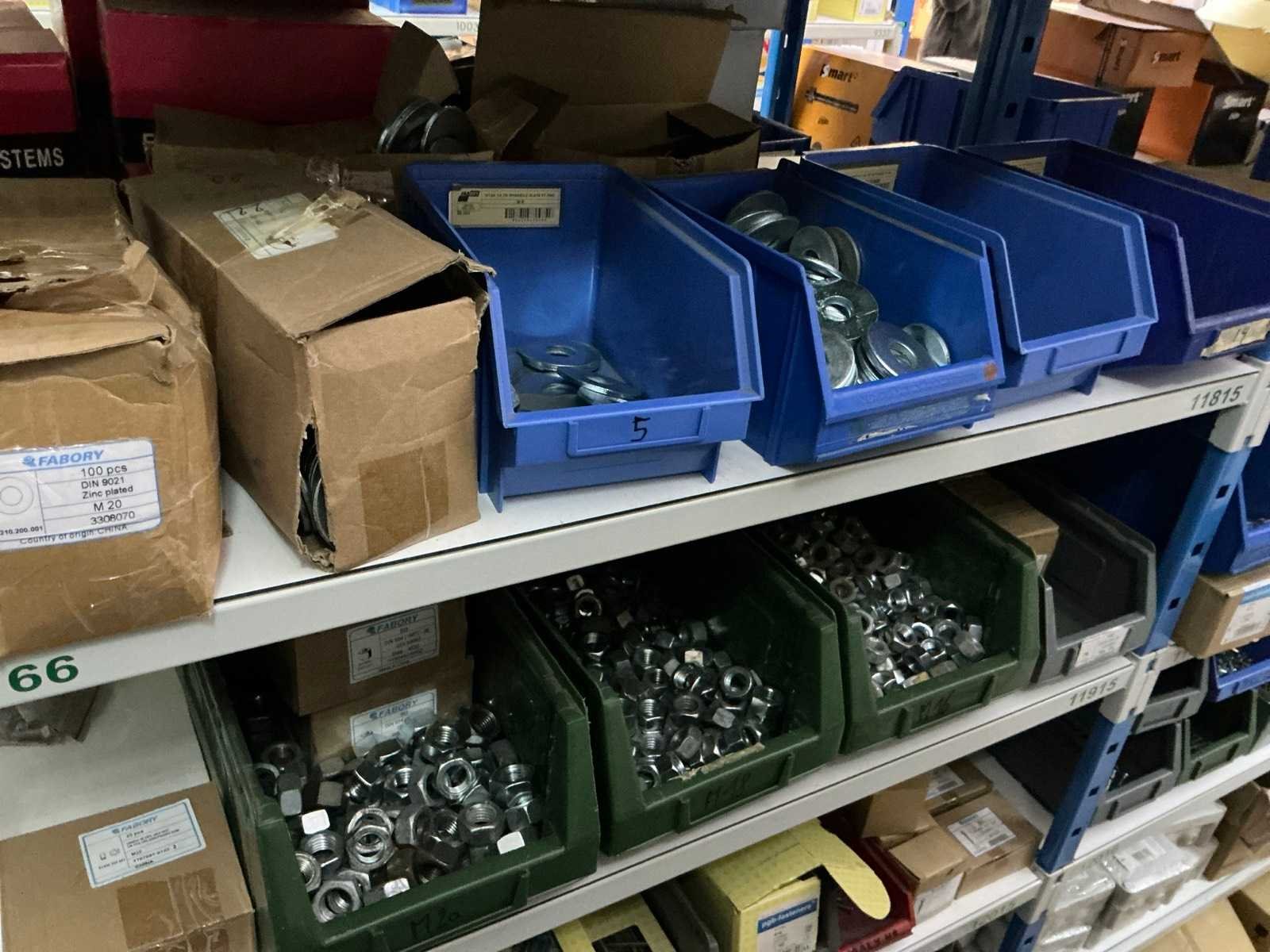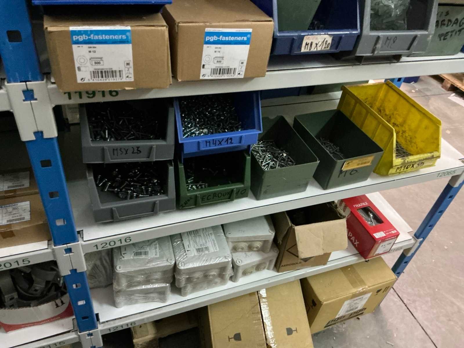 SPAX, INTERIXINGS, PGB, SOUDAL, GUNNEBO, SMART, FISCHER, SPIT, HILTI, MAXXFAST, FABORY bouten, moeren, rondellen, klemmen, oogschroeven en bouten, schroeven, hersluitingen, houtschroeven, isolatieschroeven, zelftapschroeven, pluggen, betonankers, staaldraad, afstandhouders, blindklinknagels, diverse siliconen en sealers, en kunststof afdekkapjes, in metalen magazijnstelling, betonboren, slijpschrijven,.., zonder stelling, compleet met dossierkast Nee Type: Grote