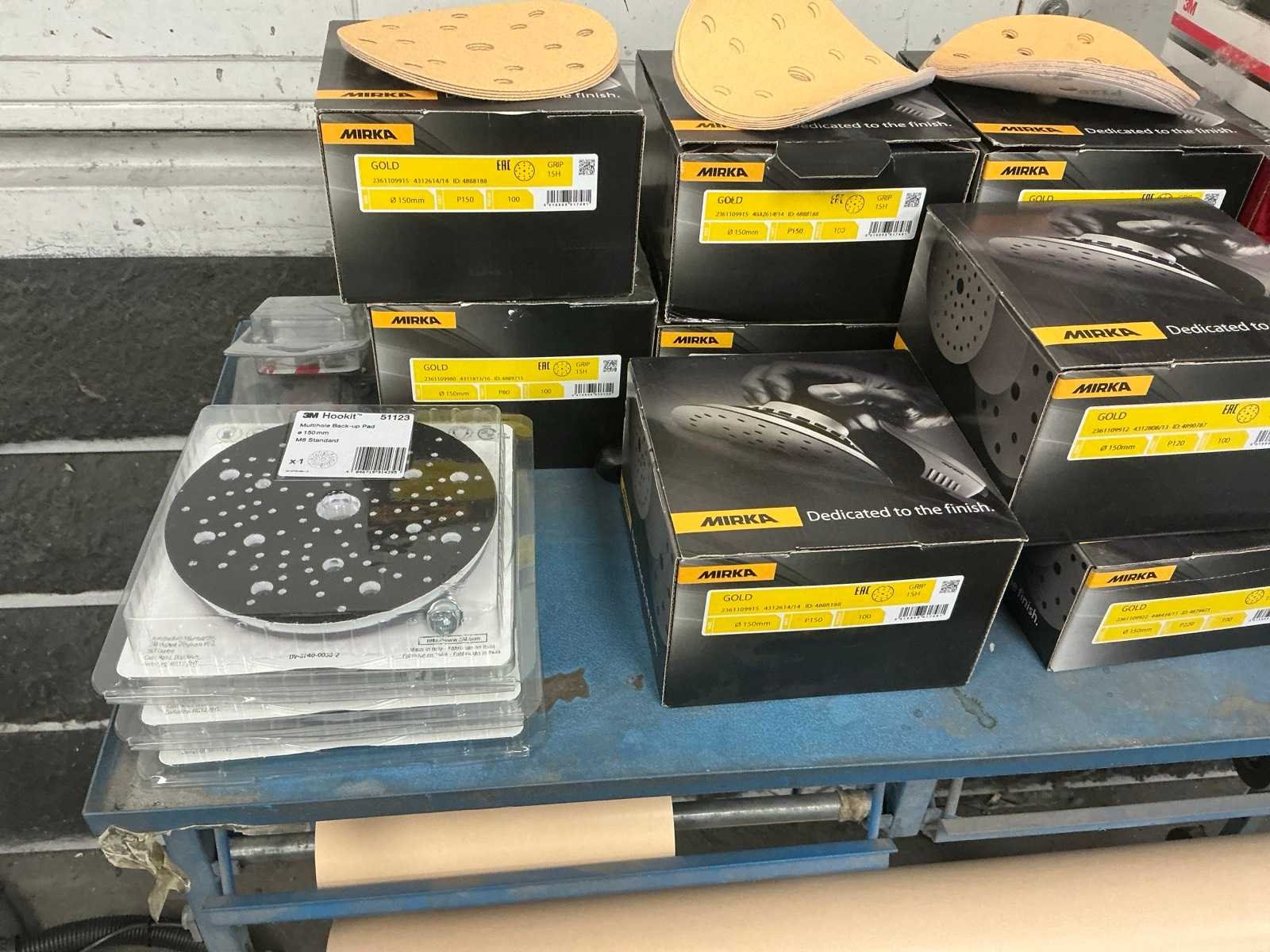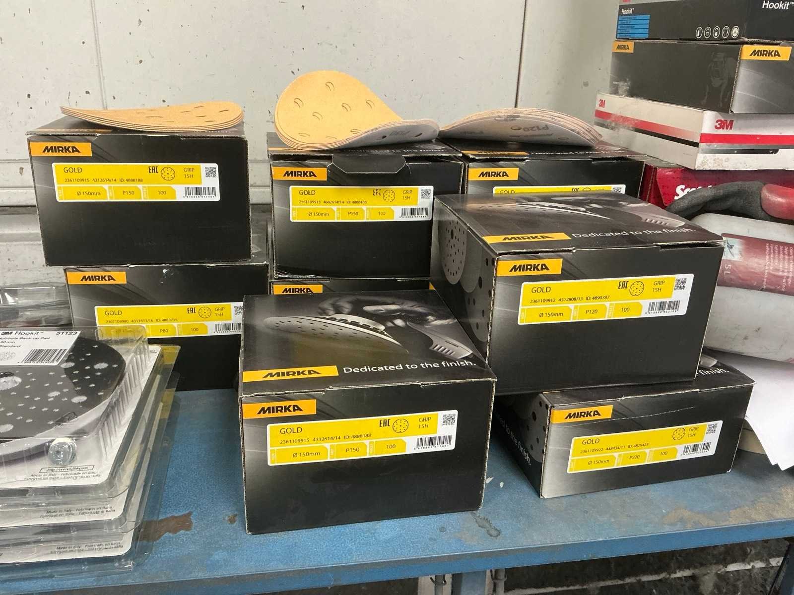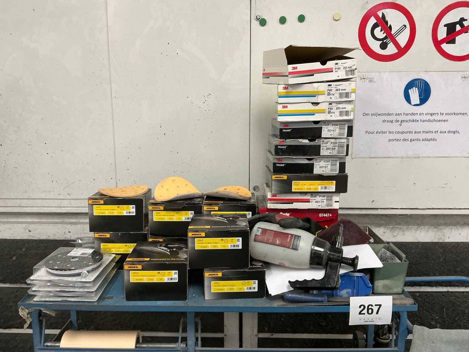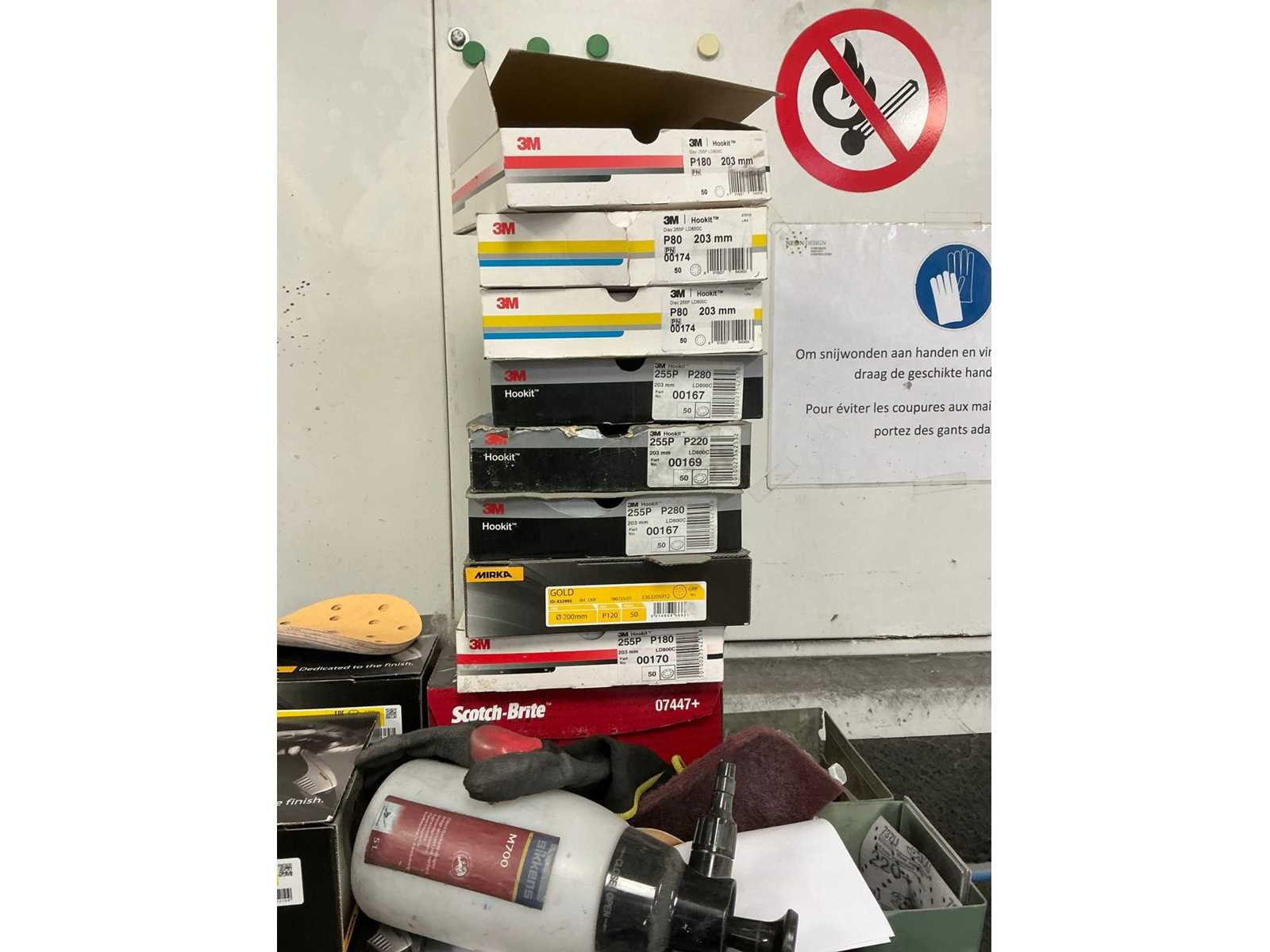 Compleet met partij diverse schuurpapieren waaronder MIRKA, 3M waaronder GOLD, HOOKIT Nee