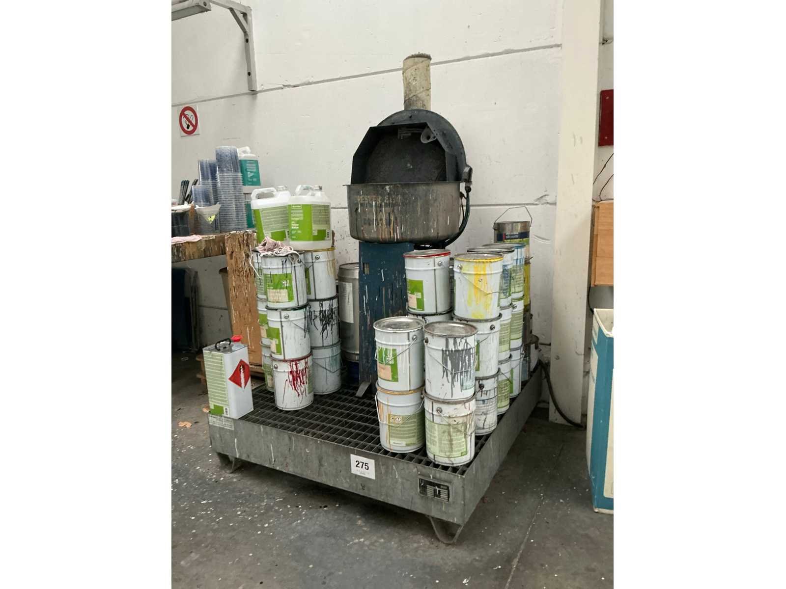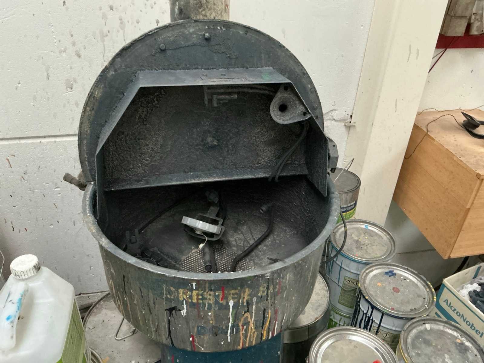 Voorzien van voetbediening en lekbak BAUER 3033 compleet met partij diverse aangesproken verfpotten waaronder AKZONOBEL in diverse kleuren met een totaalopstelling van circa. 120 x 120 x 190 cm Nee Merk: DRESTER Type: DRESTER 8000
