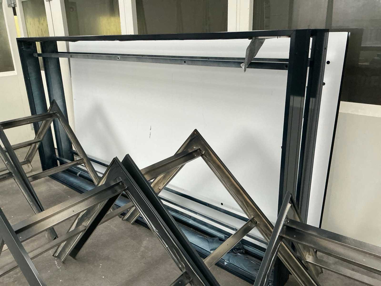 Waaronder 2x afmeting circa. 290x15x150cm en 6x met afmeting: 180x55x95cm, compleet met 2x op maat gesneden plexiplaten Nee