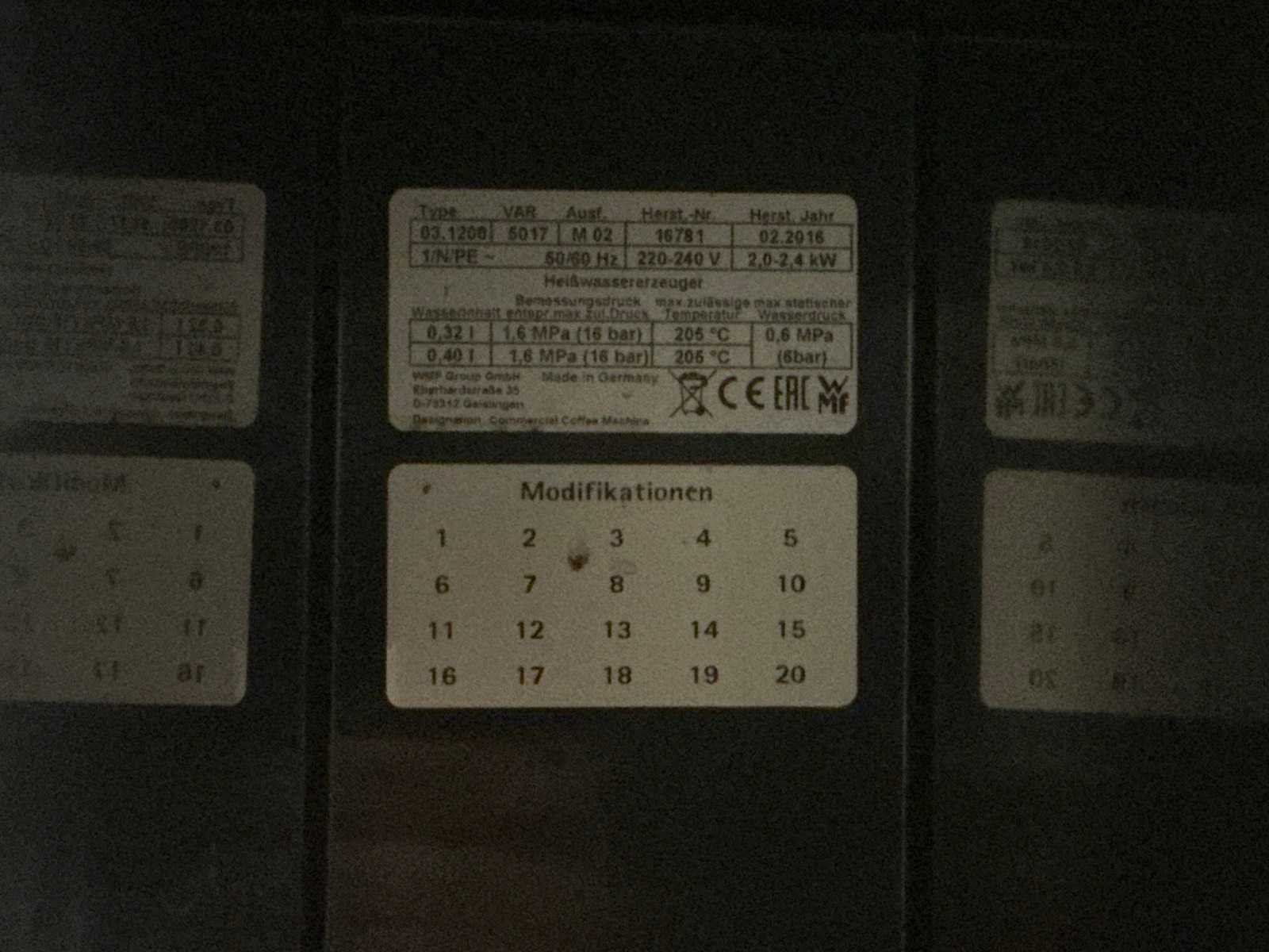 Vakkundig af te koppelen door koper Nee Merk: WMF Type: 1200S Aansluiting: 230V