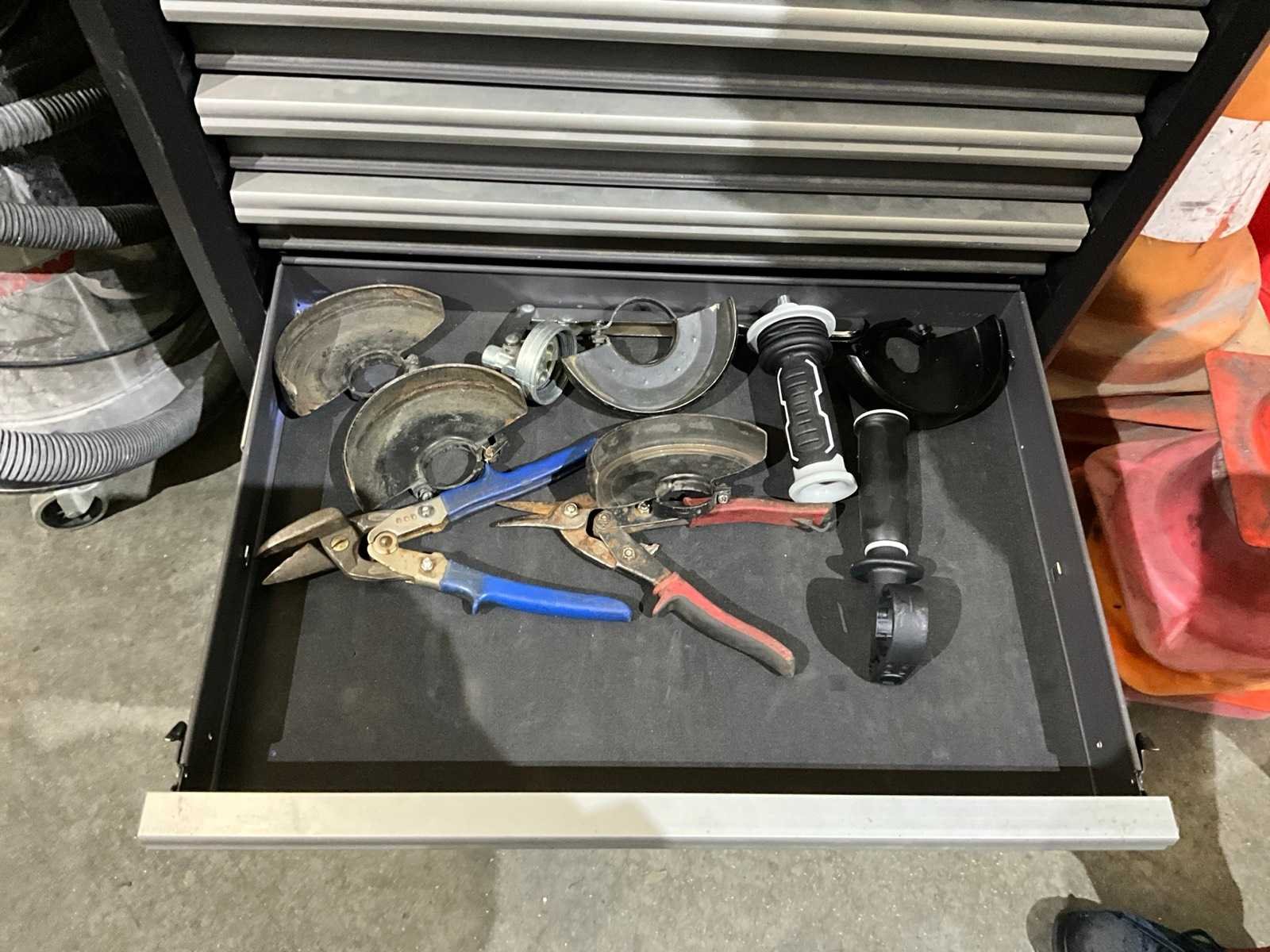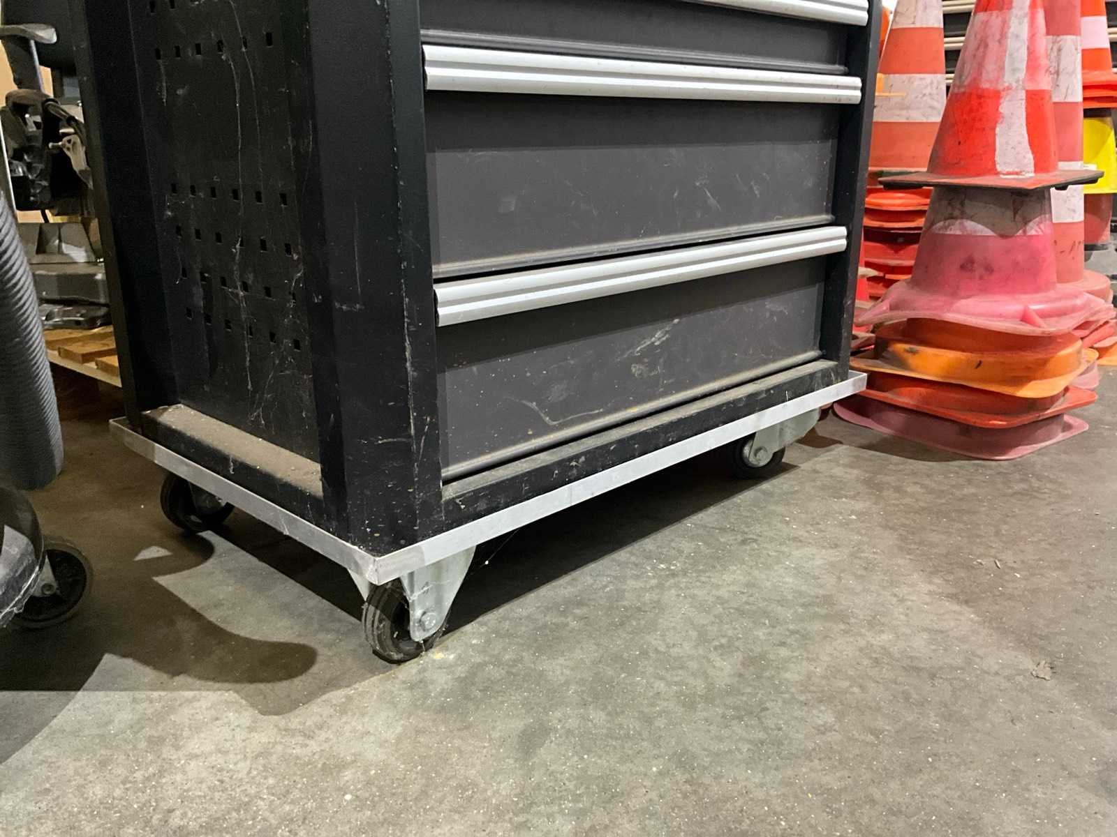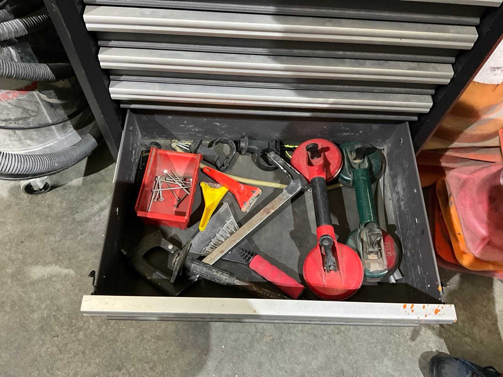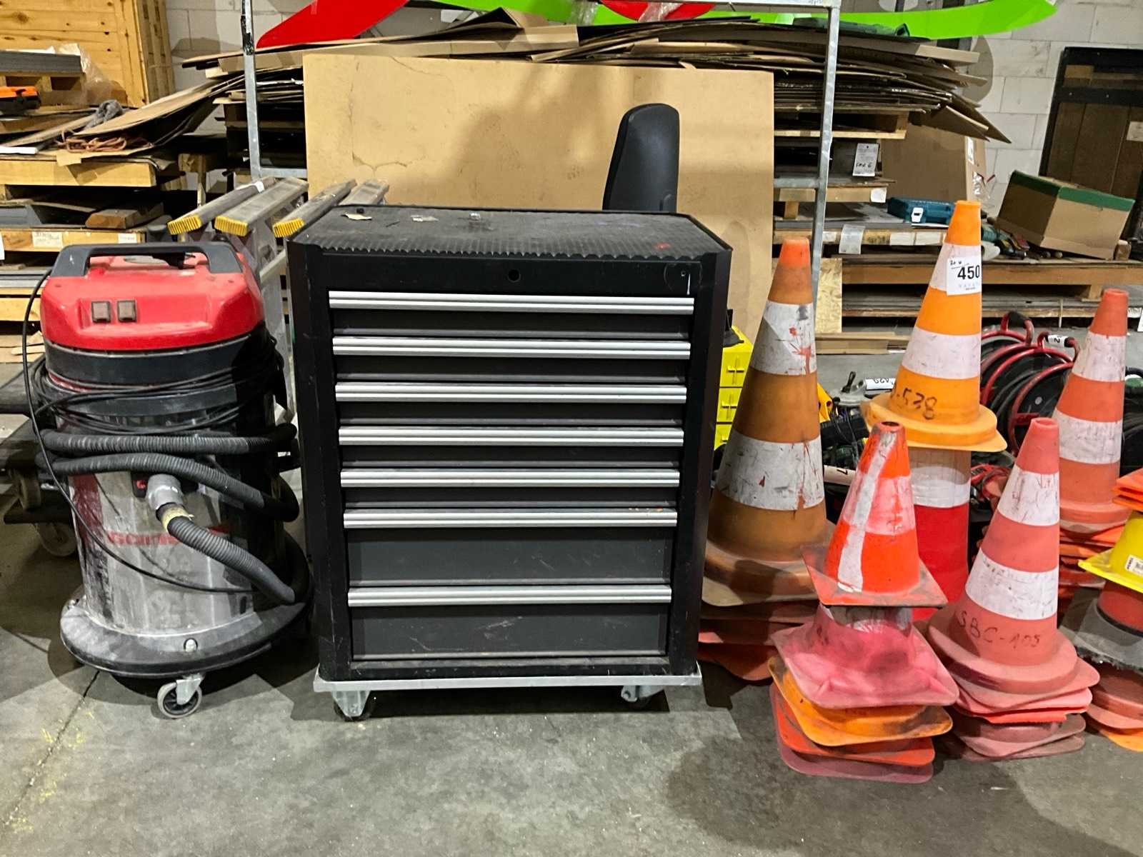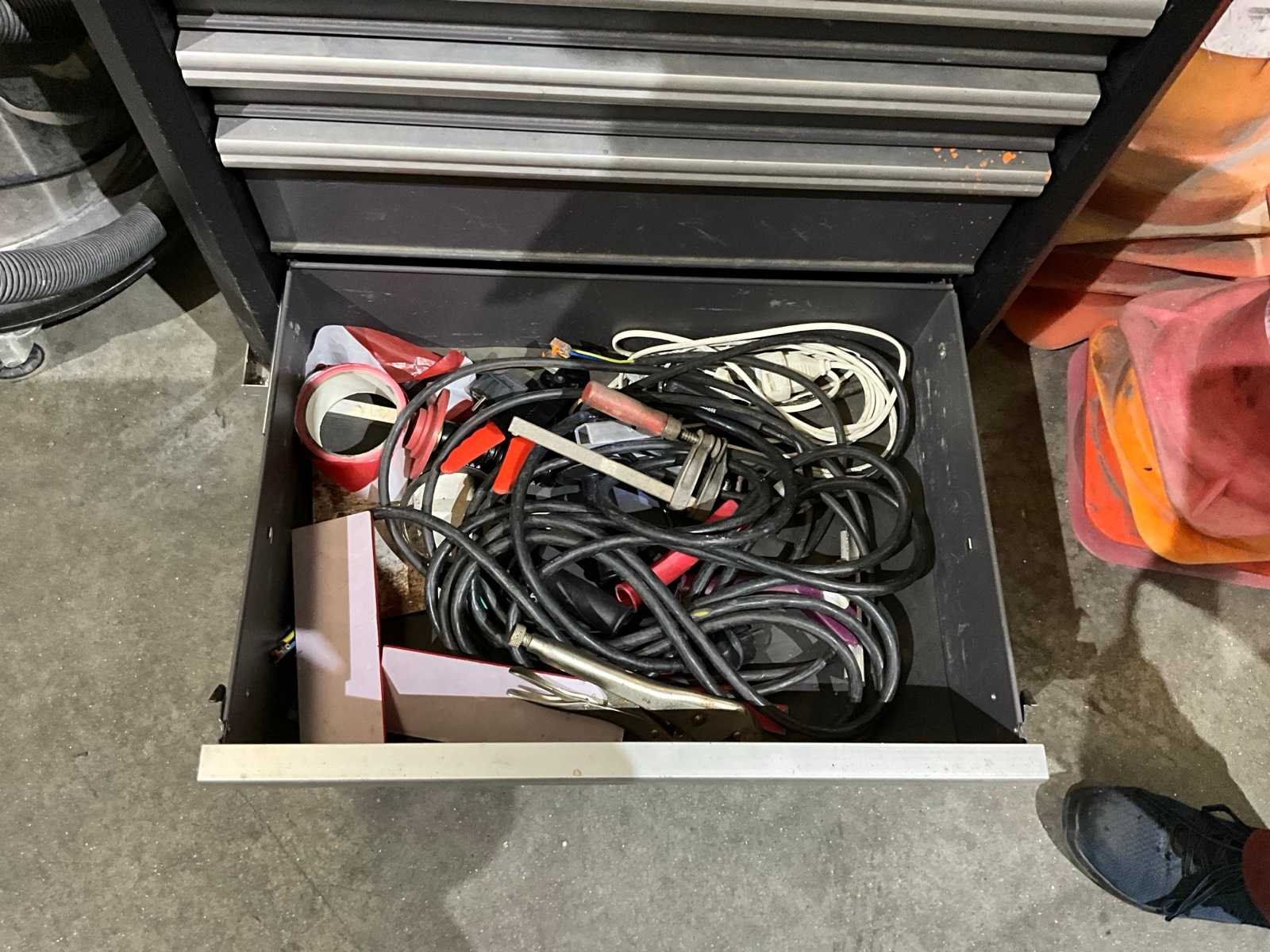 Inhoudende divers handgereedschap waaronder schroevendraaiers, tangen, rolmeter van 30 m, 2 glasdragers en startkabels Nee Merk: Westward Model: 7-laden Lengte: 72cm Breedte: 46cm Hoogte: 93cm Materiaal: Metaal