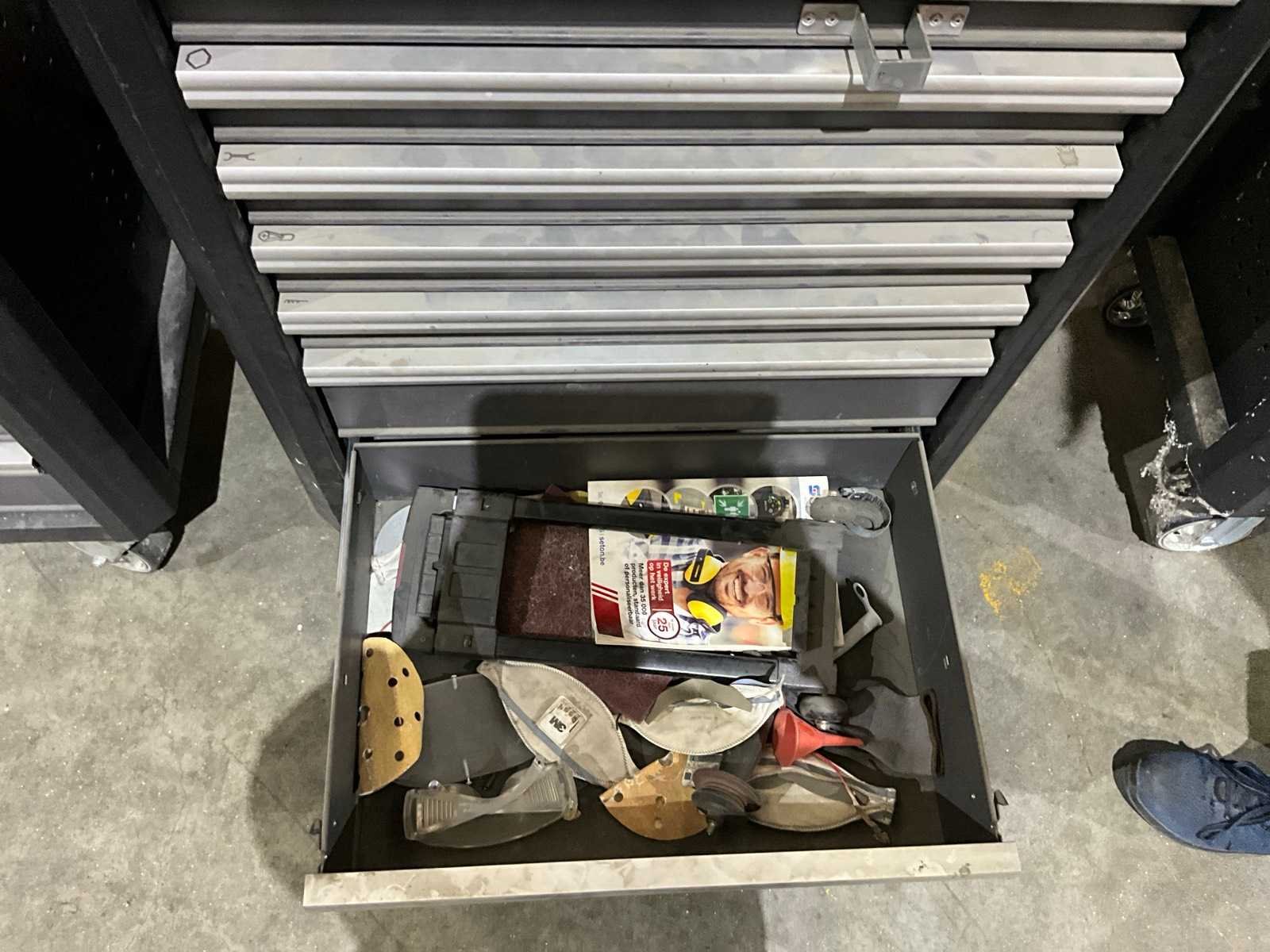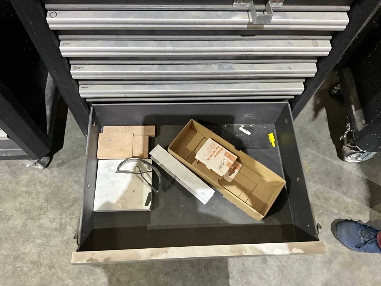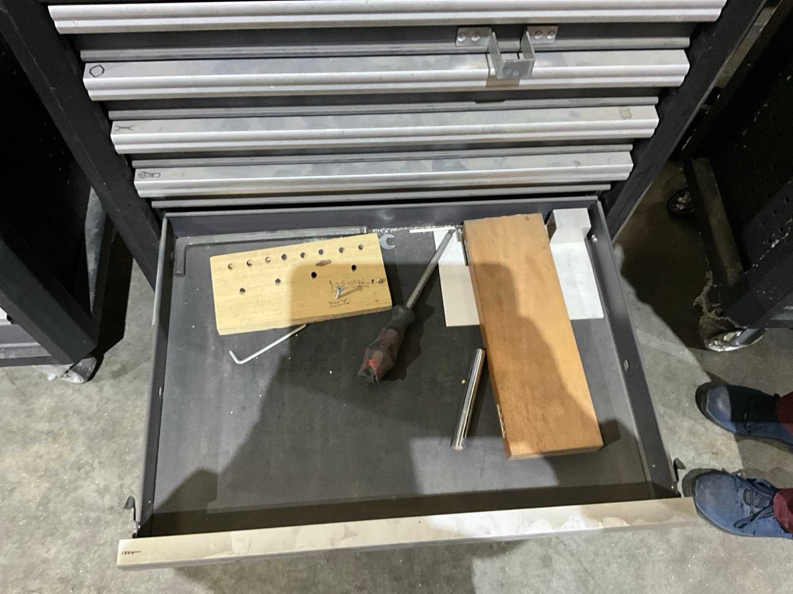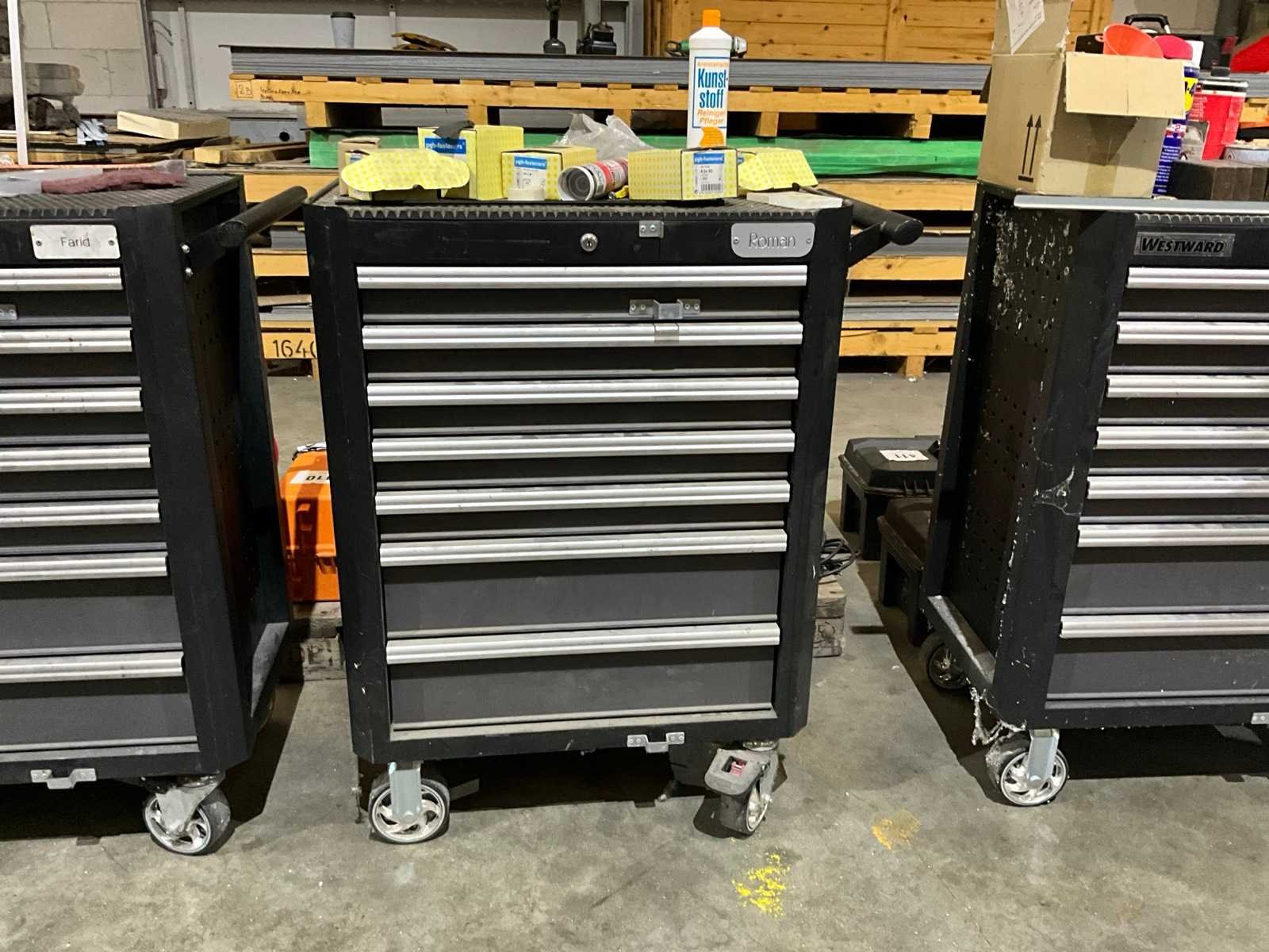 Inhoudende partij divers handgereedschap waaronder: Dopsleutelsets, ring-/steeksleutels, schroevendraaiers Nee Merk: Westward Model: 7-laden Lengte: 72cm Breedte: 46cm Hoogte: 100cm Materiaal: Metaal