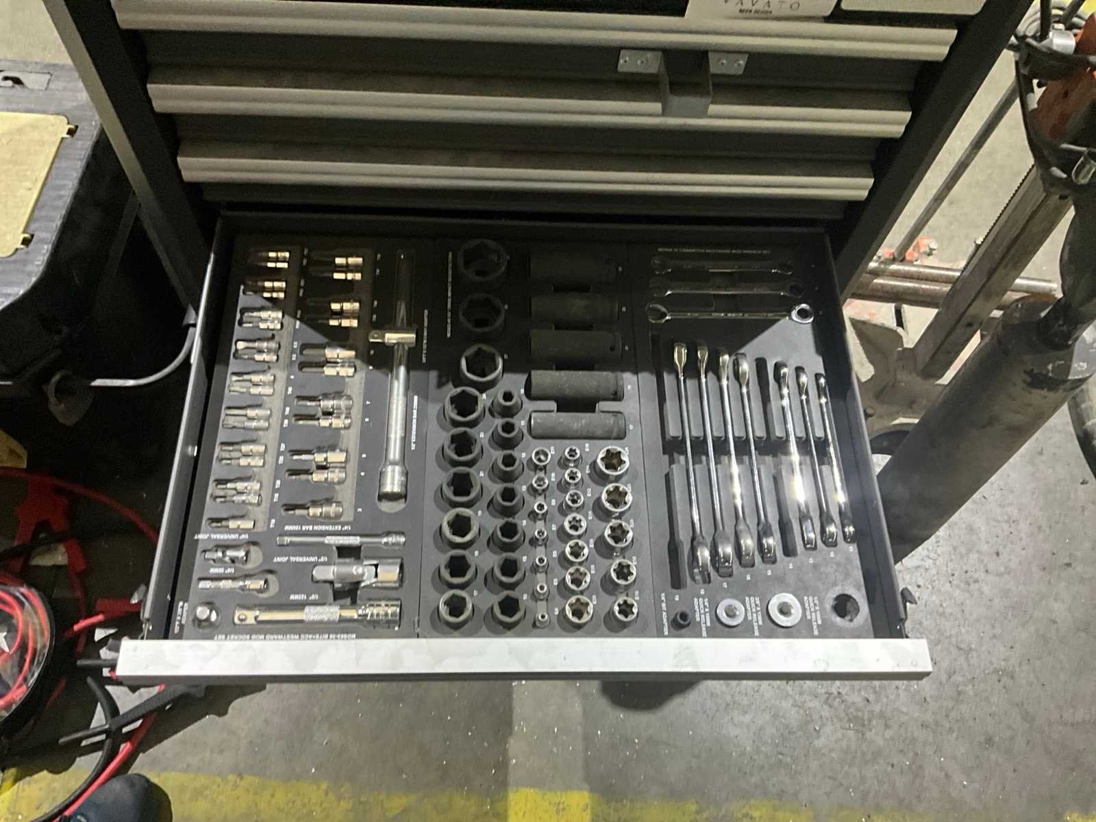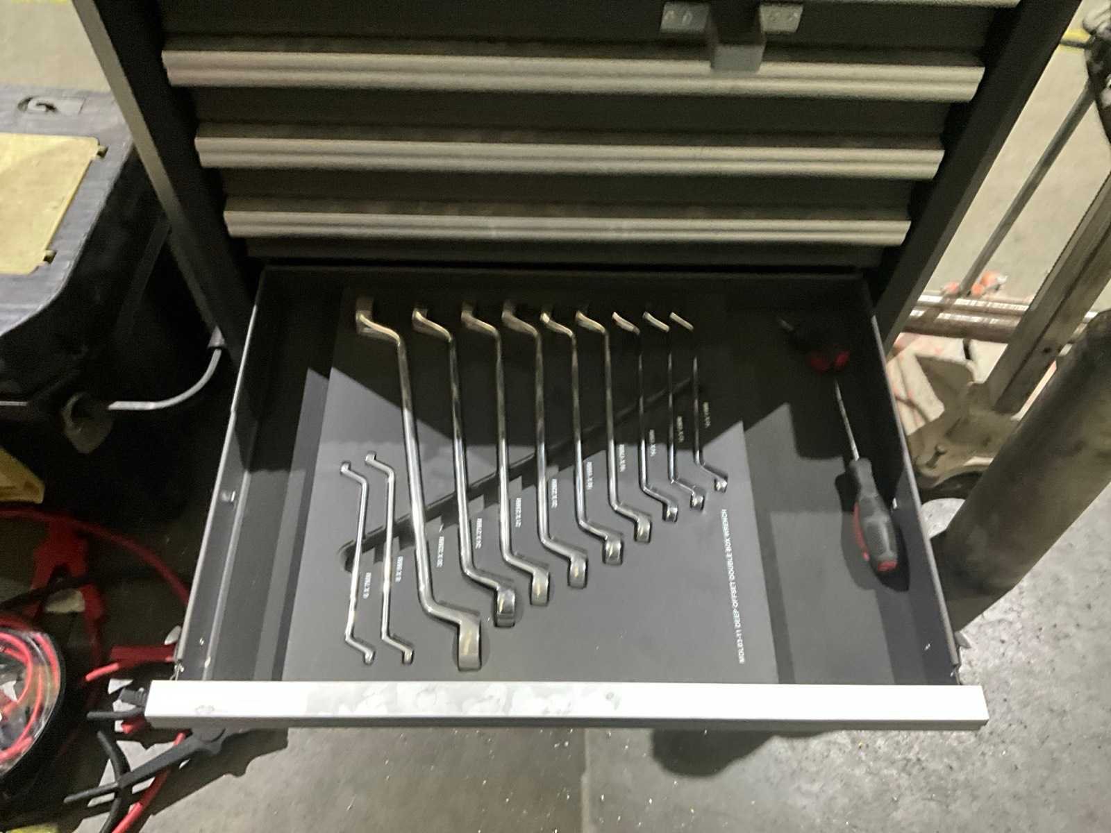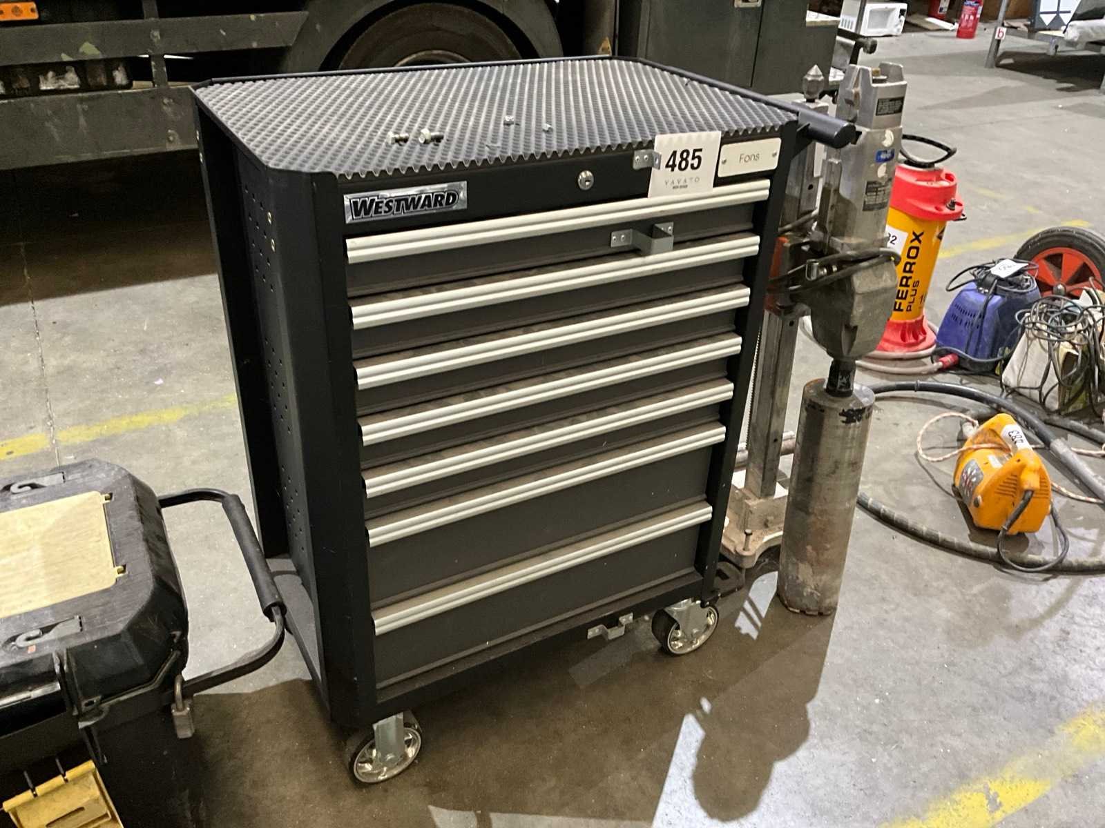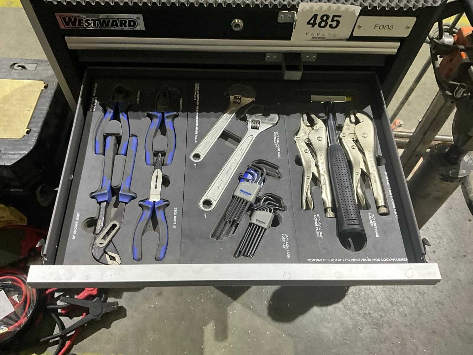 Compleet met inhoud waaronder steek-/ringsleutel, dopsleutels, tangen,enzovoort Nee Merk: WESTWARD Model: 7-laden Lengte: 73cm Breedte: 47cm Hoogte: 100cm Materiaal: Metaal